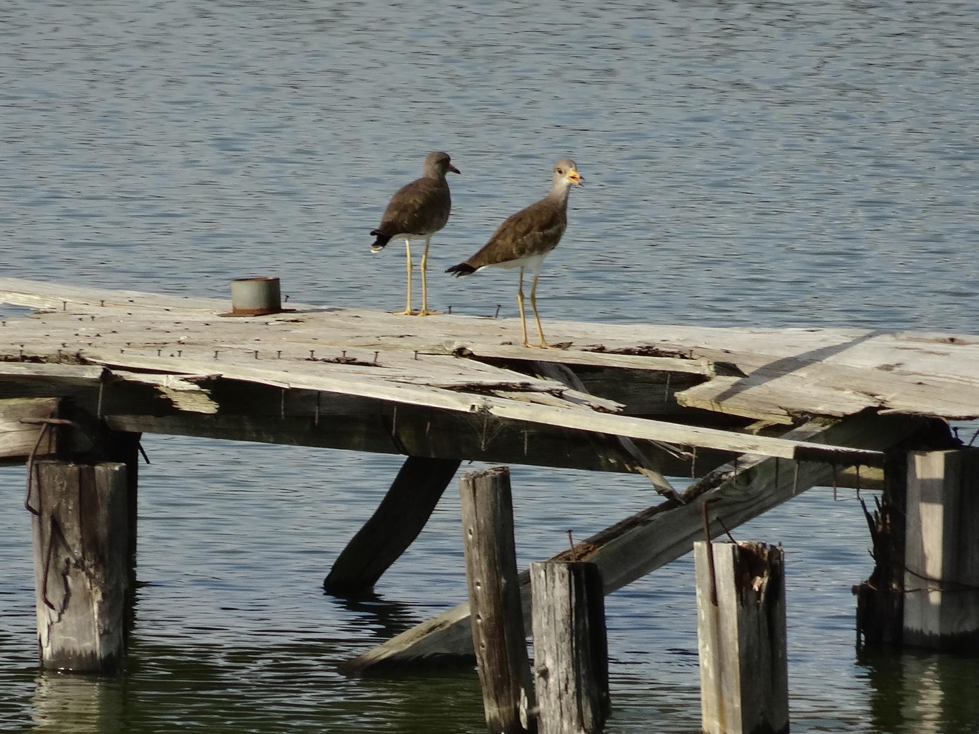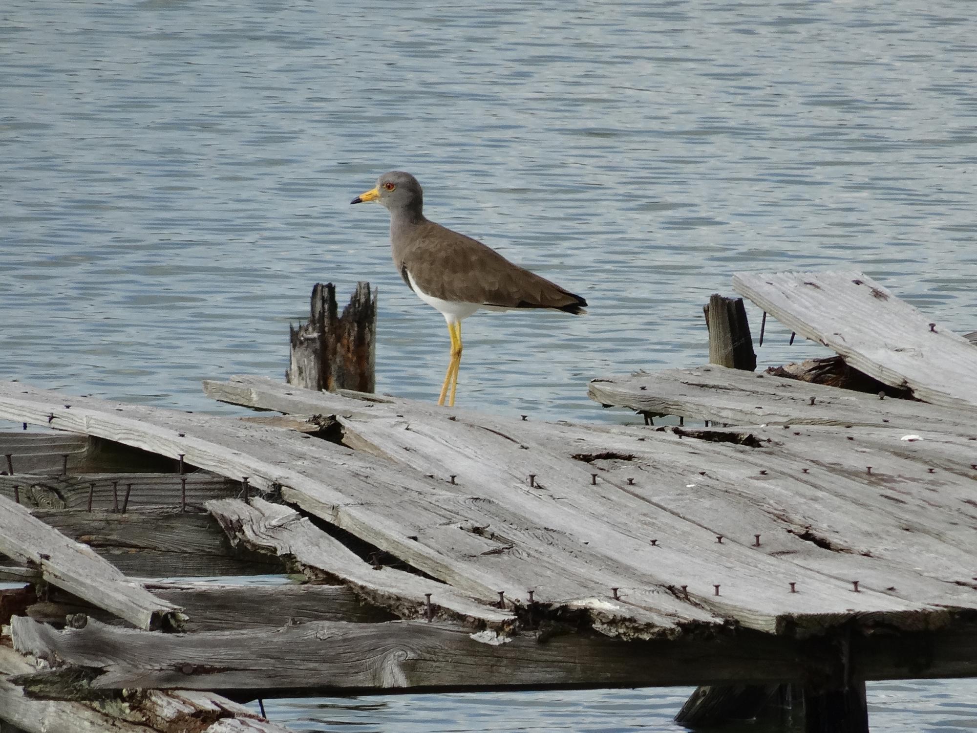 いましたいましたケリです。自分は初めて見るすごく脚の長い鳥さんです。木の桟橋は営業をやめてしまった釣り堀のものと思われ、このおかげでケリさんたちをよく観察できるようになっていました。