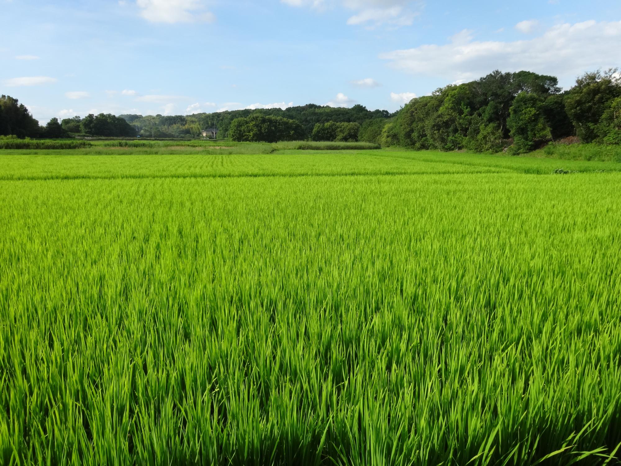 古墳の西側には見事な田んぼが広がっていました。