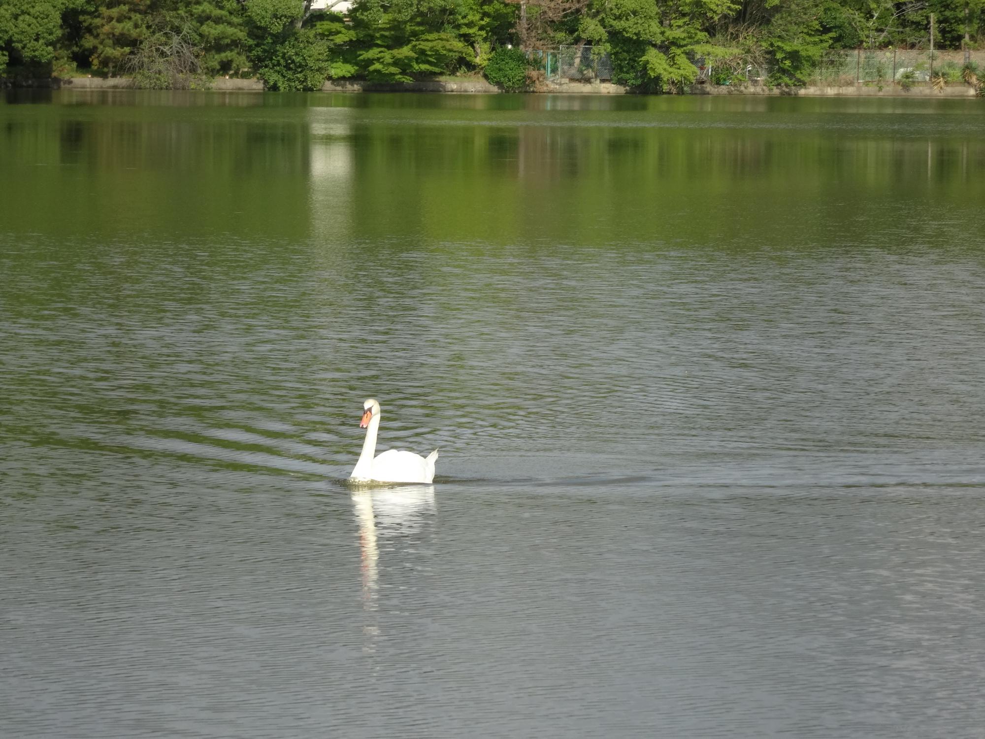 水上池の方に戻ると、な、な、なんと、コブハクチョウがいました。おじさんがエサをやっていて、結構人懐っこそうです。
