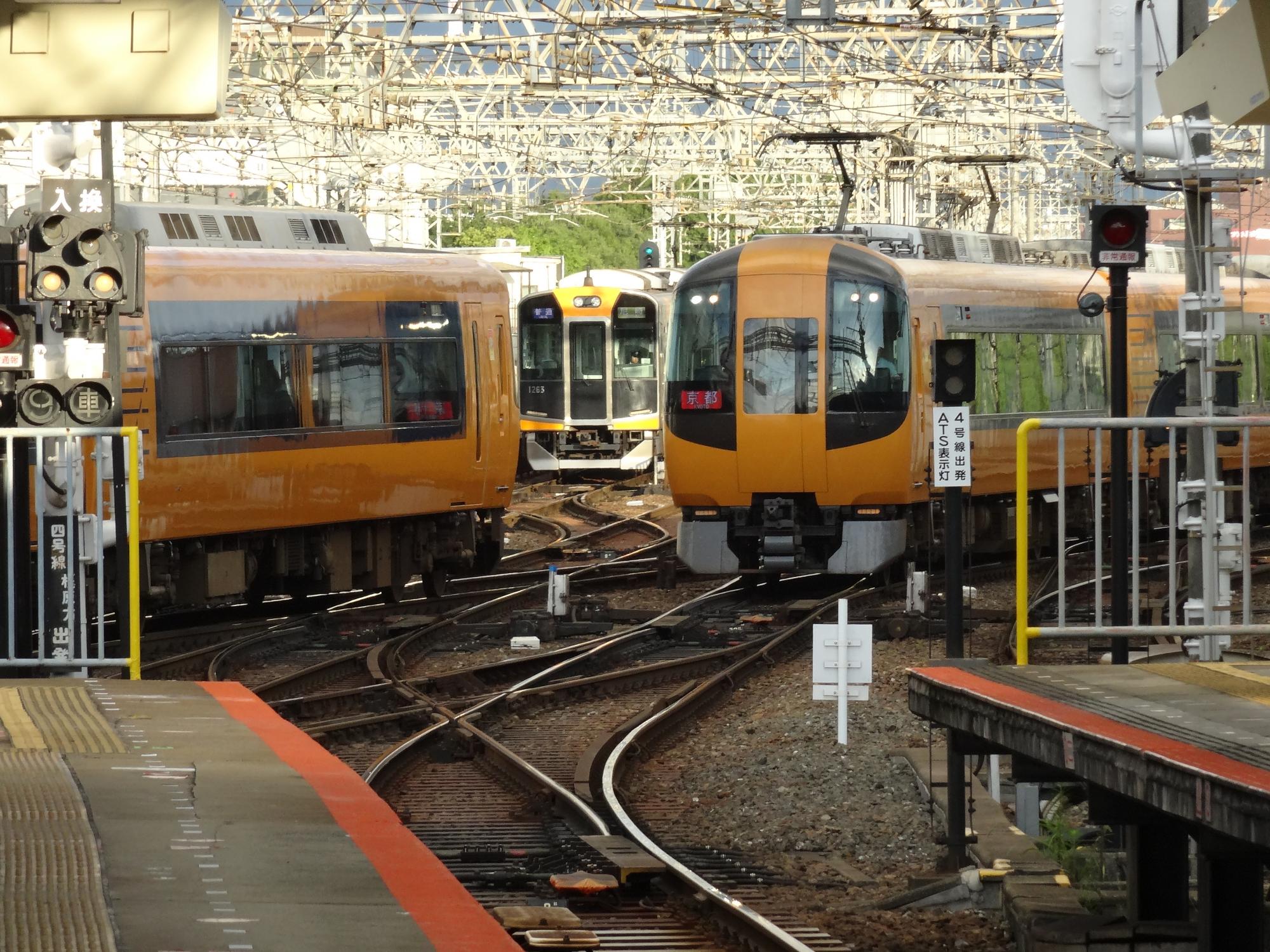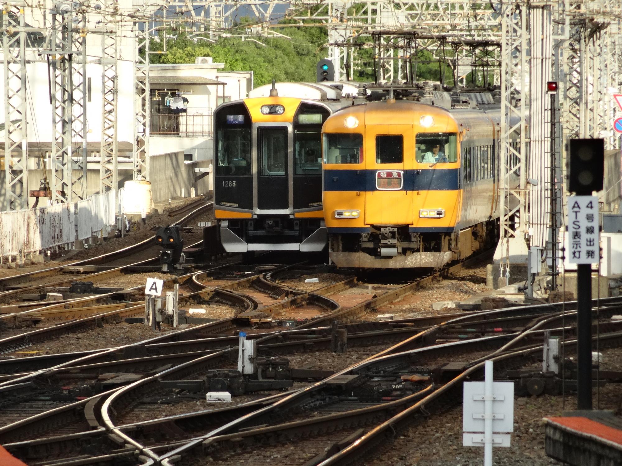 西大寺駅から帰ります。特急に挟まれた阪神1000系の写真、これ以上ないタイミングの写真でしょ?
