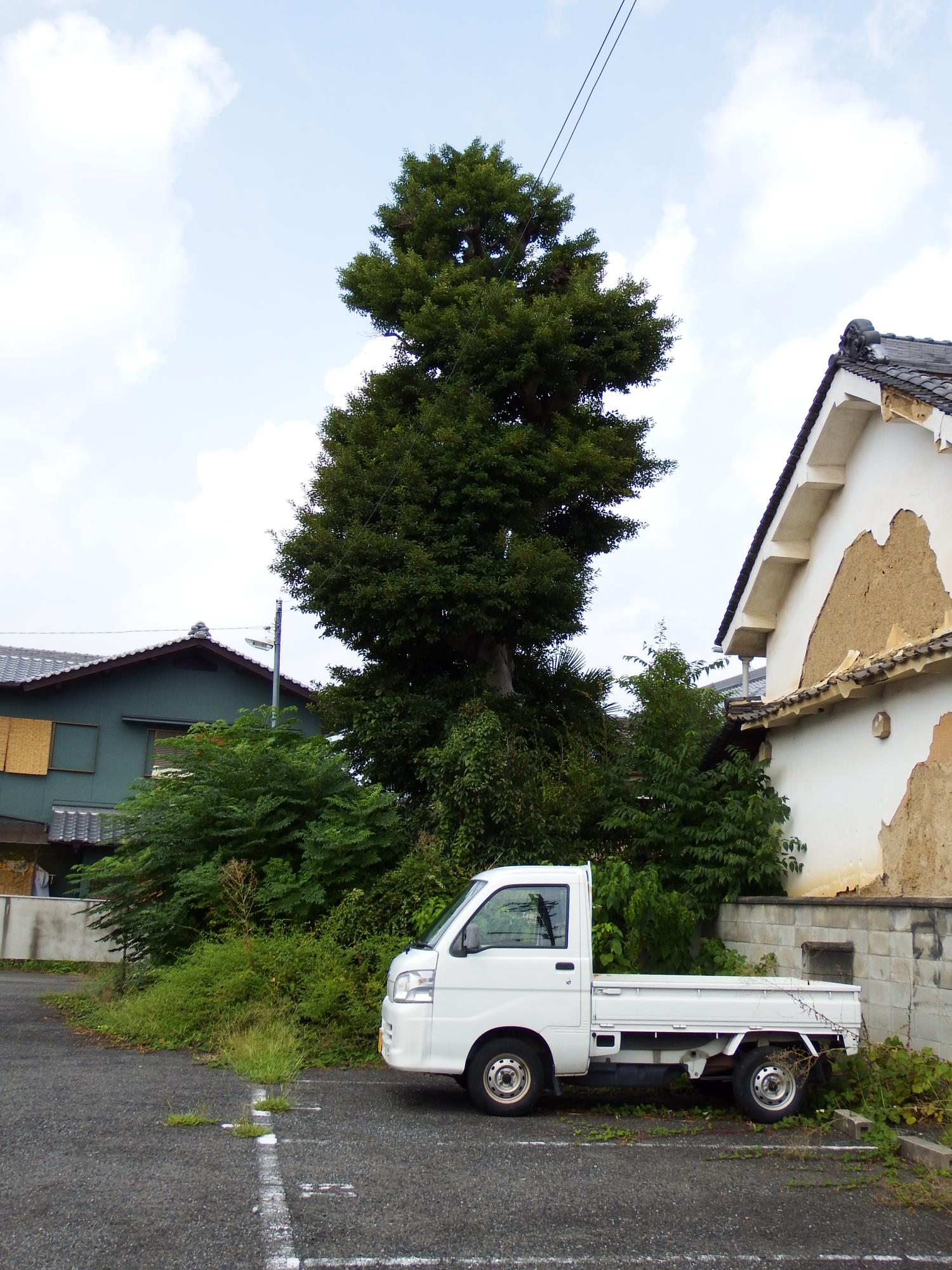 御神木だけが大切に残されていました。茅葺きの母屋があったところです。駐車場の中を歩かせてもらい、ここには離れ、ここには亀の池、ここには蔵、ここにはトイレがあったとか、感慨にふけってしまいました。
