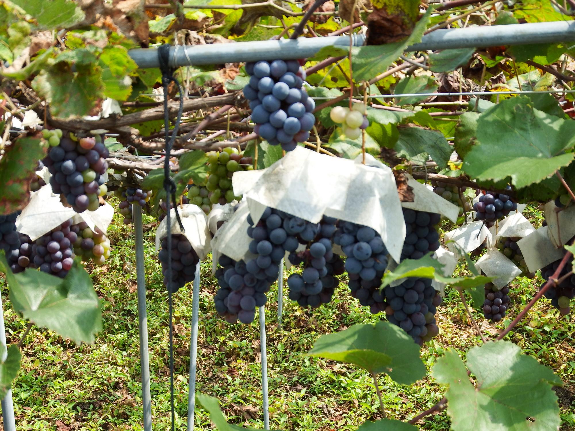 ちょうど収穫の季節、たぶん巨峰かと思われます。