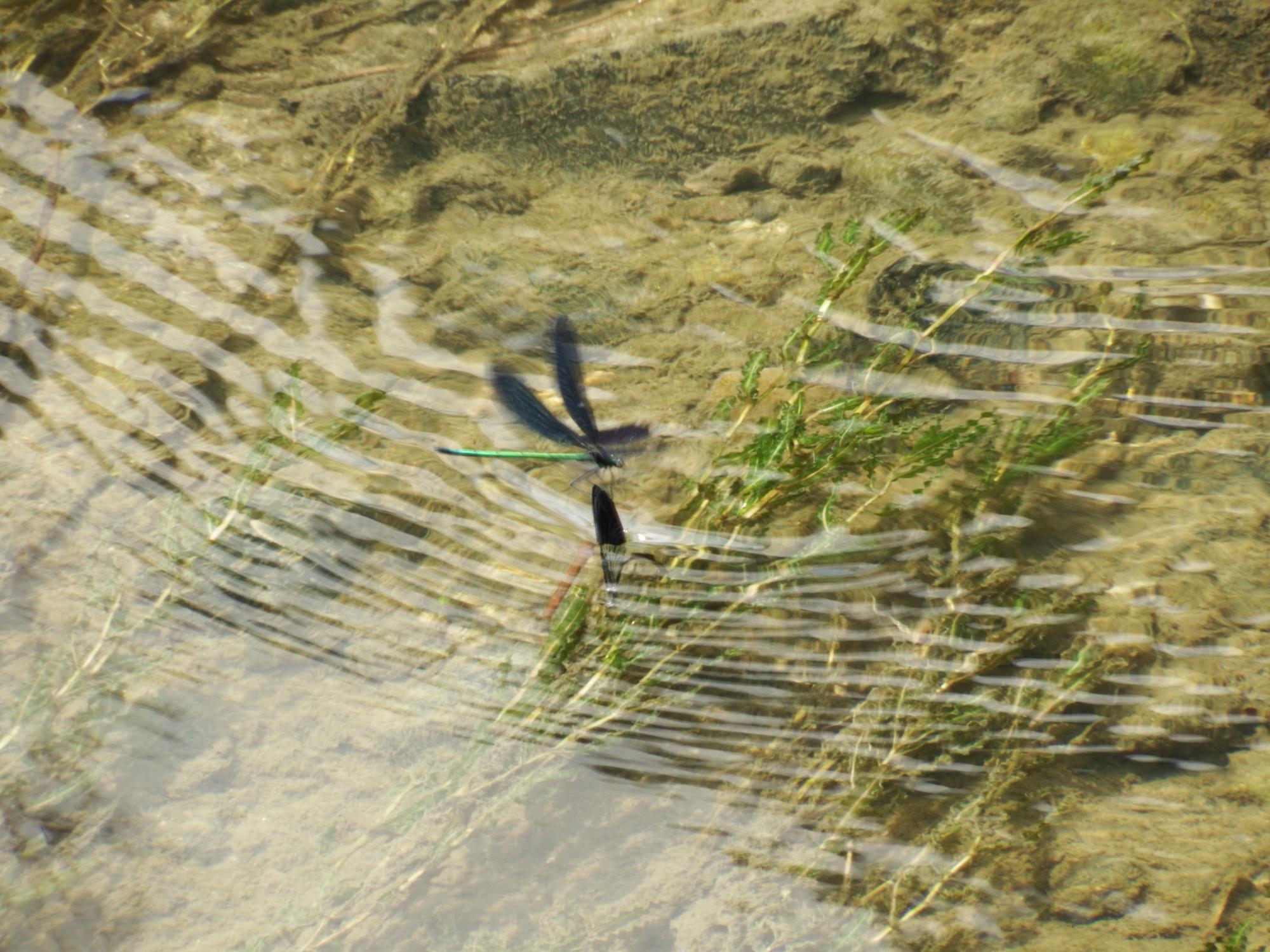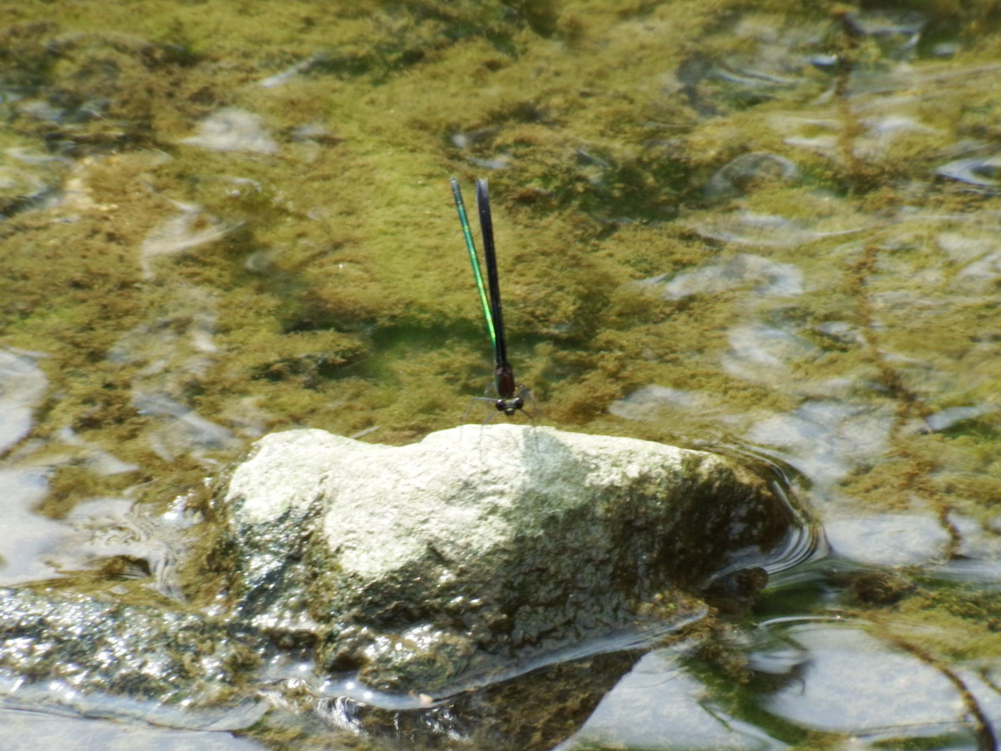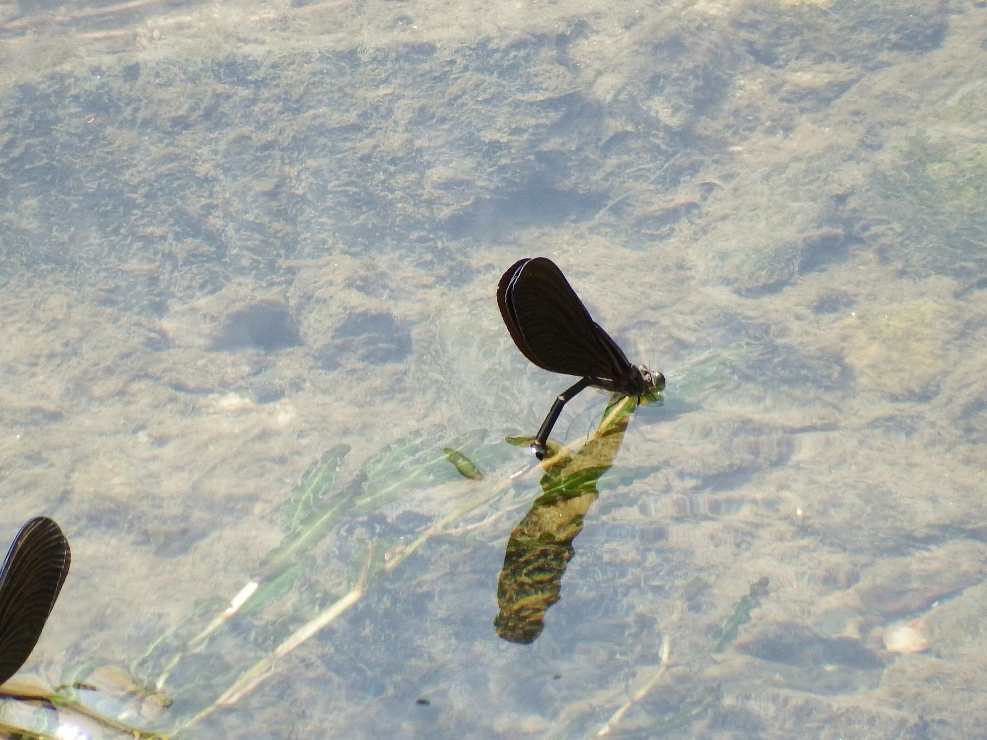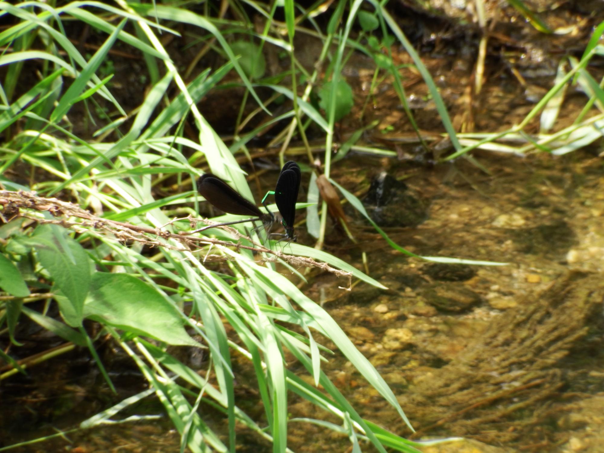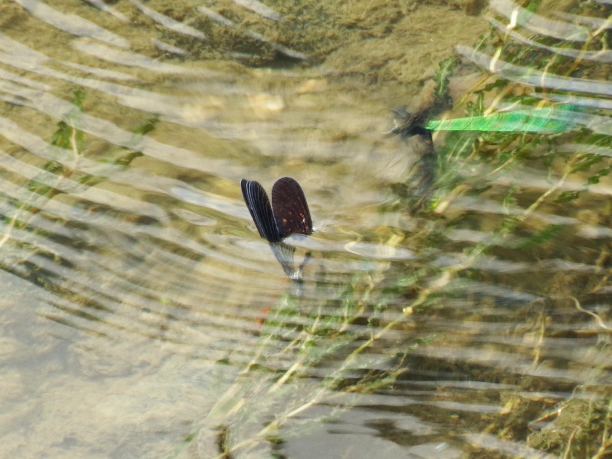 近くでは♂が産卵を見守っているようです。気づいたらハグロトンボだけで100回もシャッターを押してました。