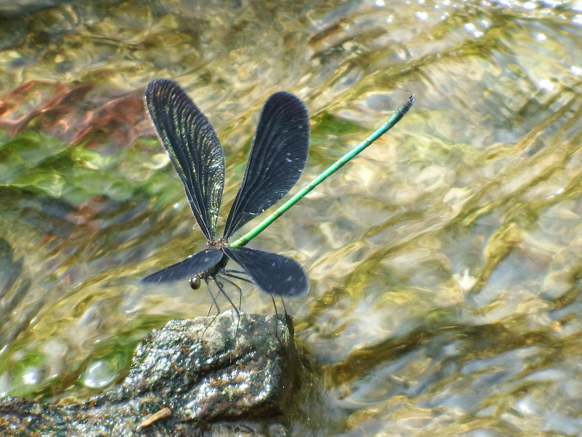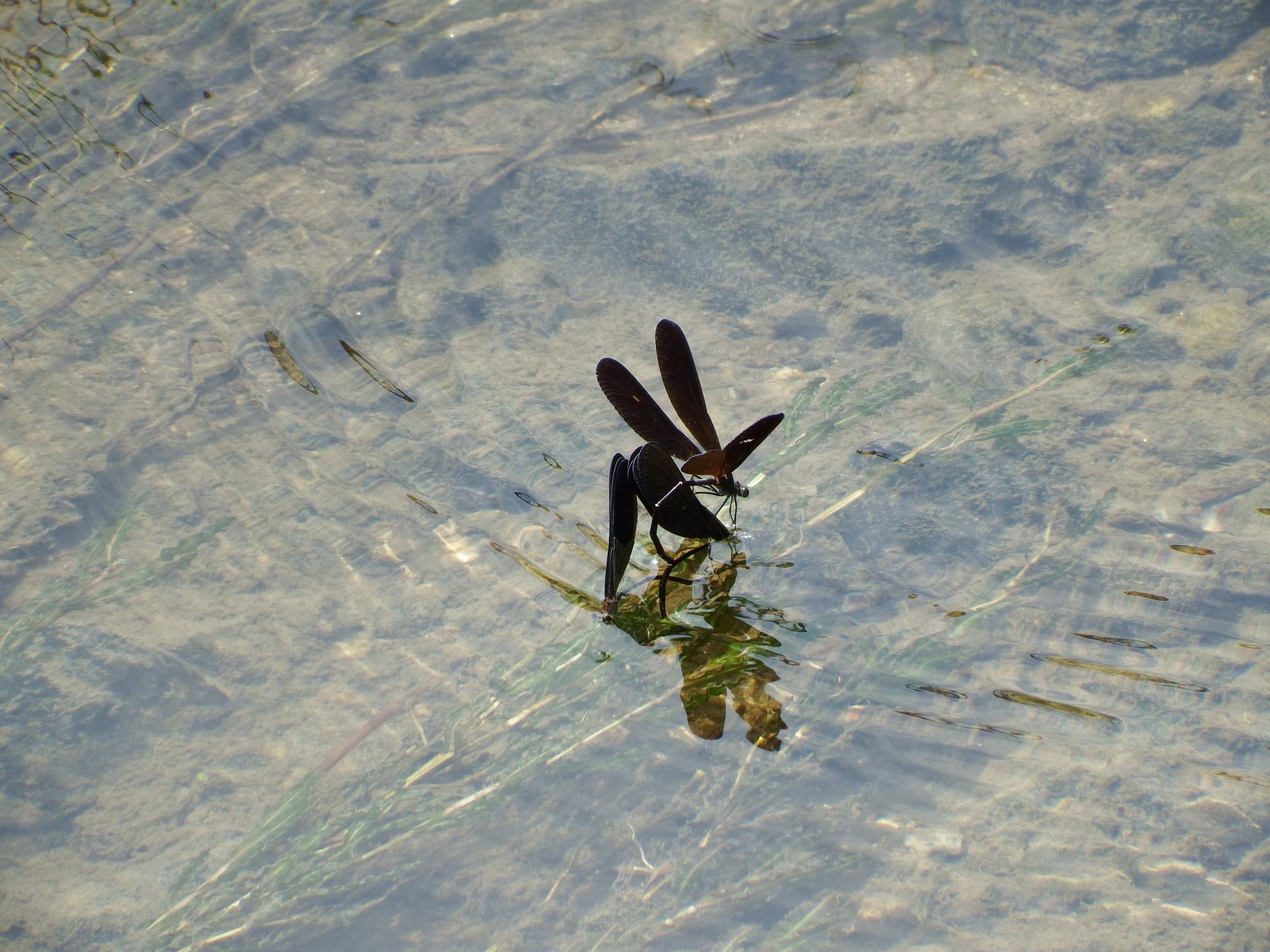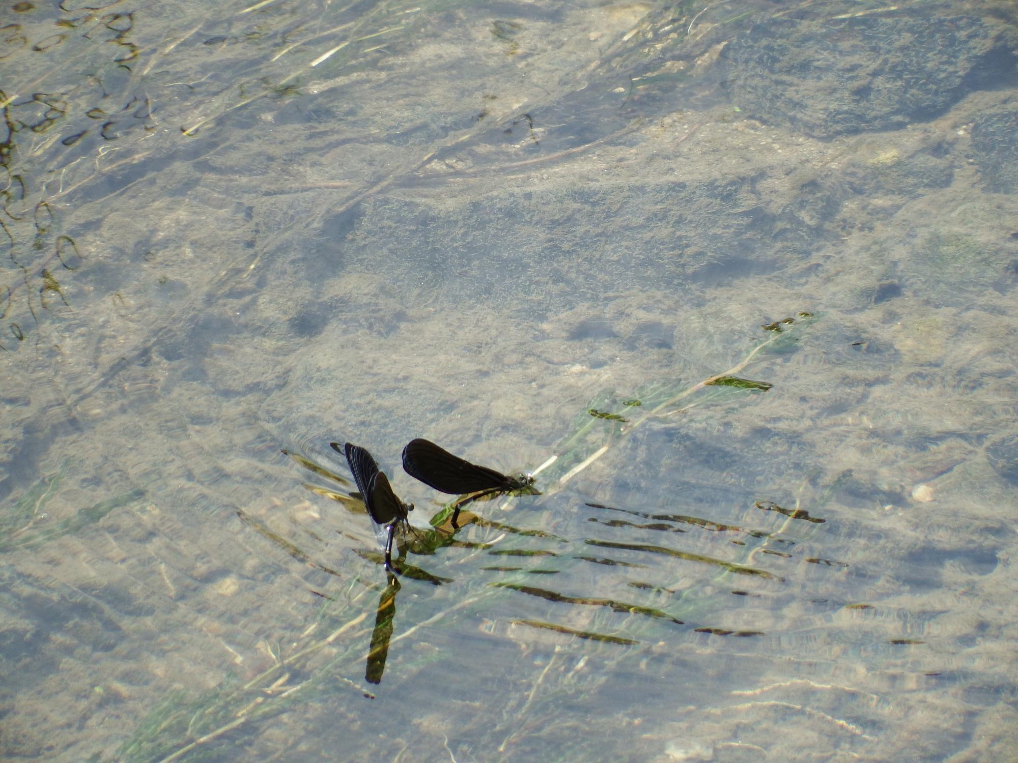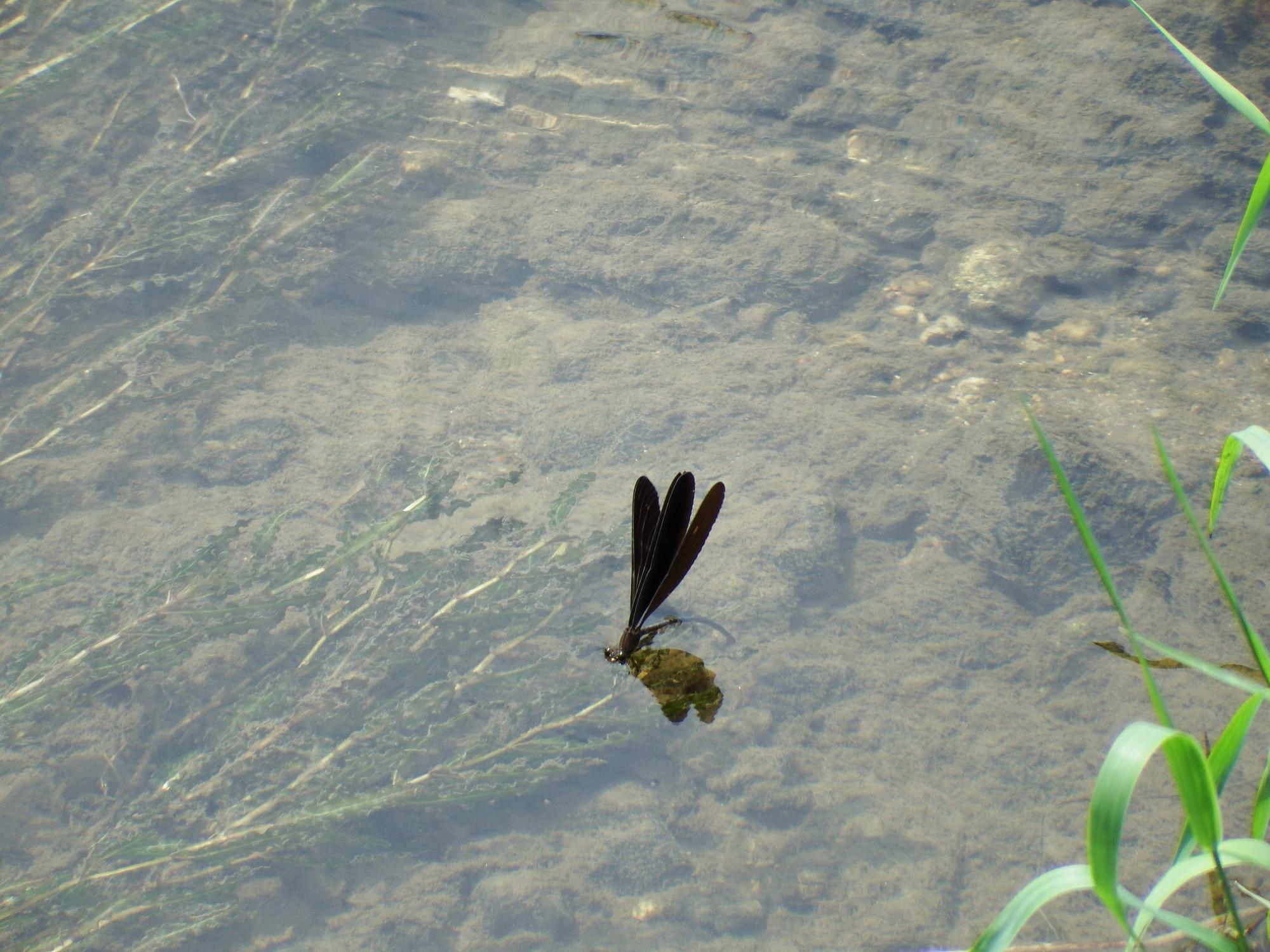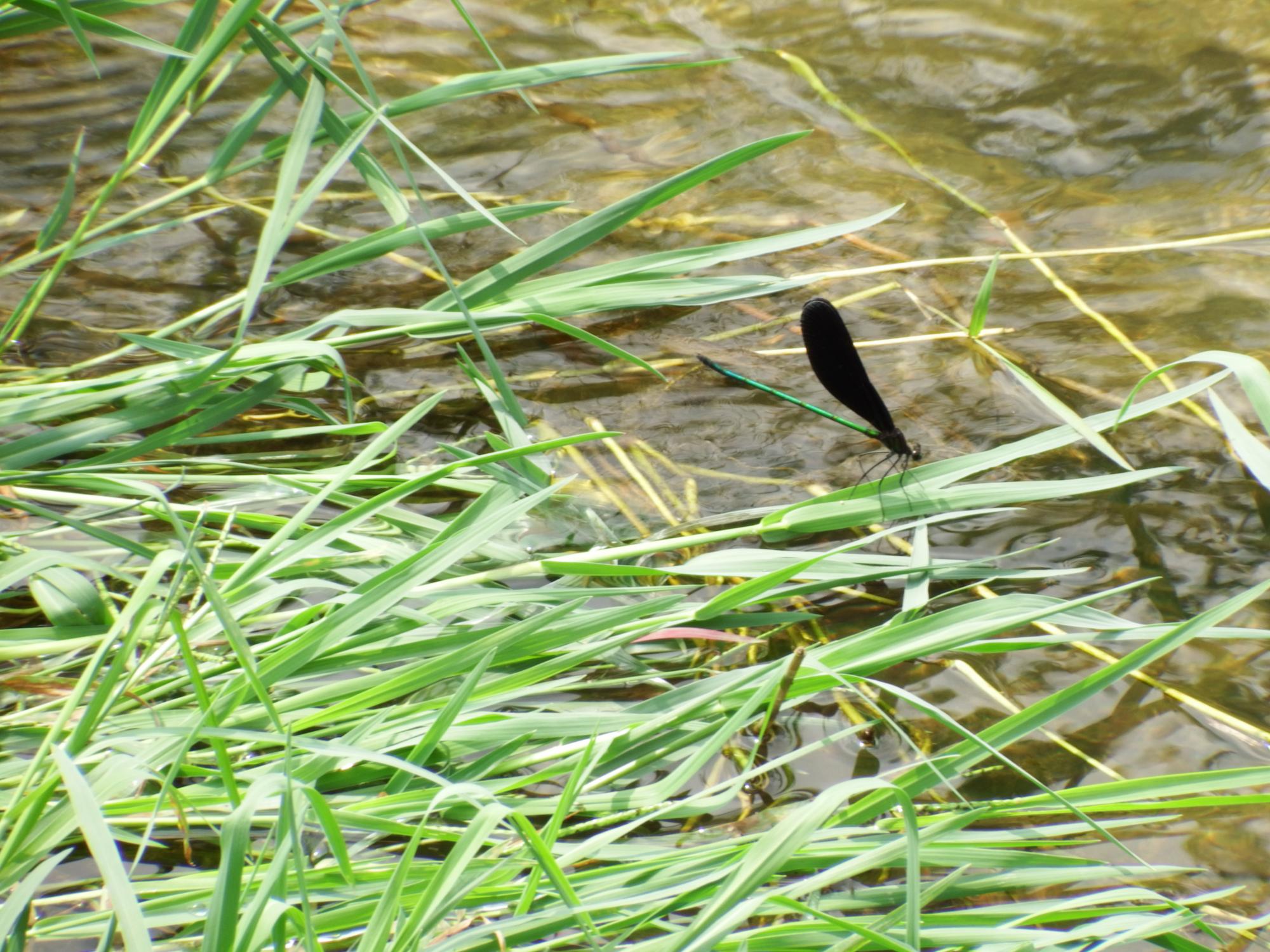 近くでは♂が産卵を見守っているようです。気づいたらハグロトンボだけで100回もシャッターを押してました。