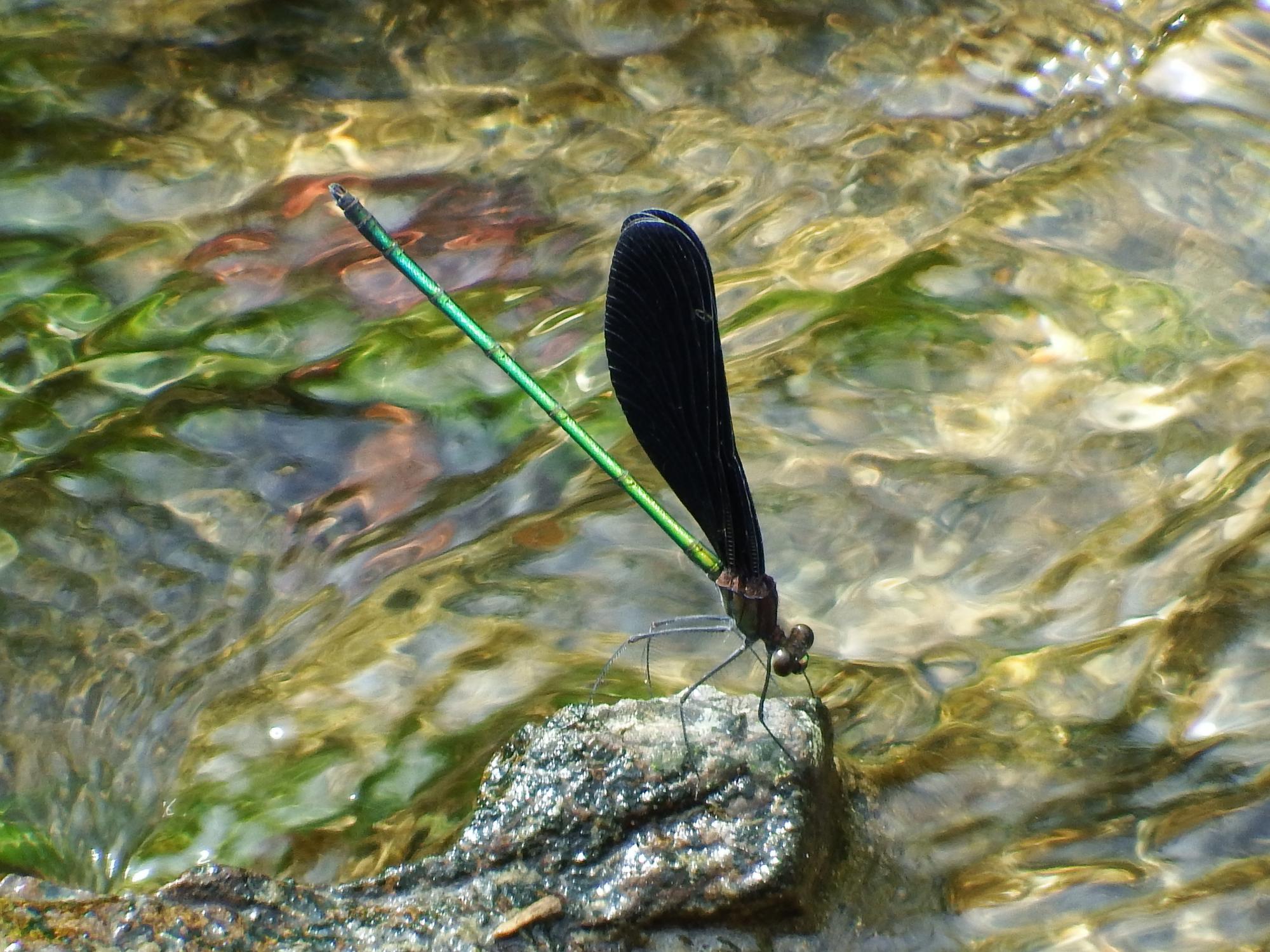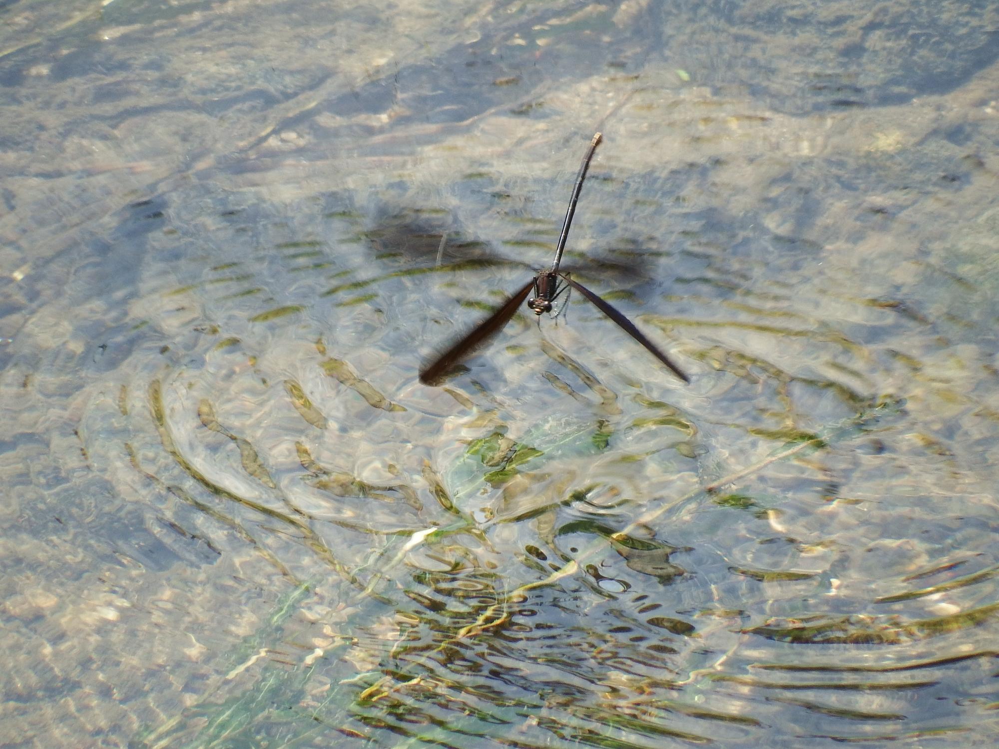 ん?ハグロトンボが頭を水の中につっこんでいました。