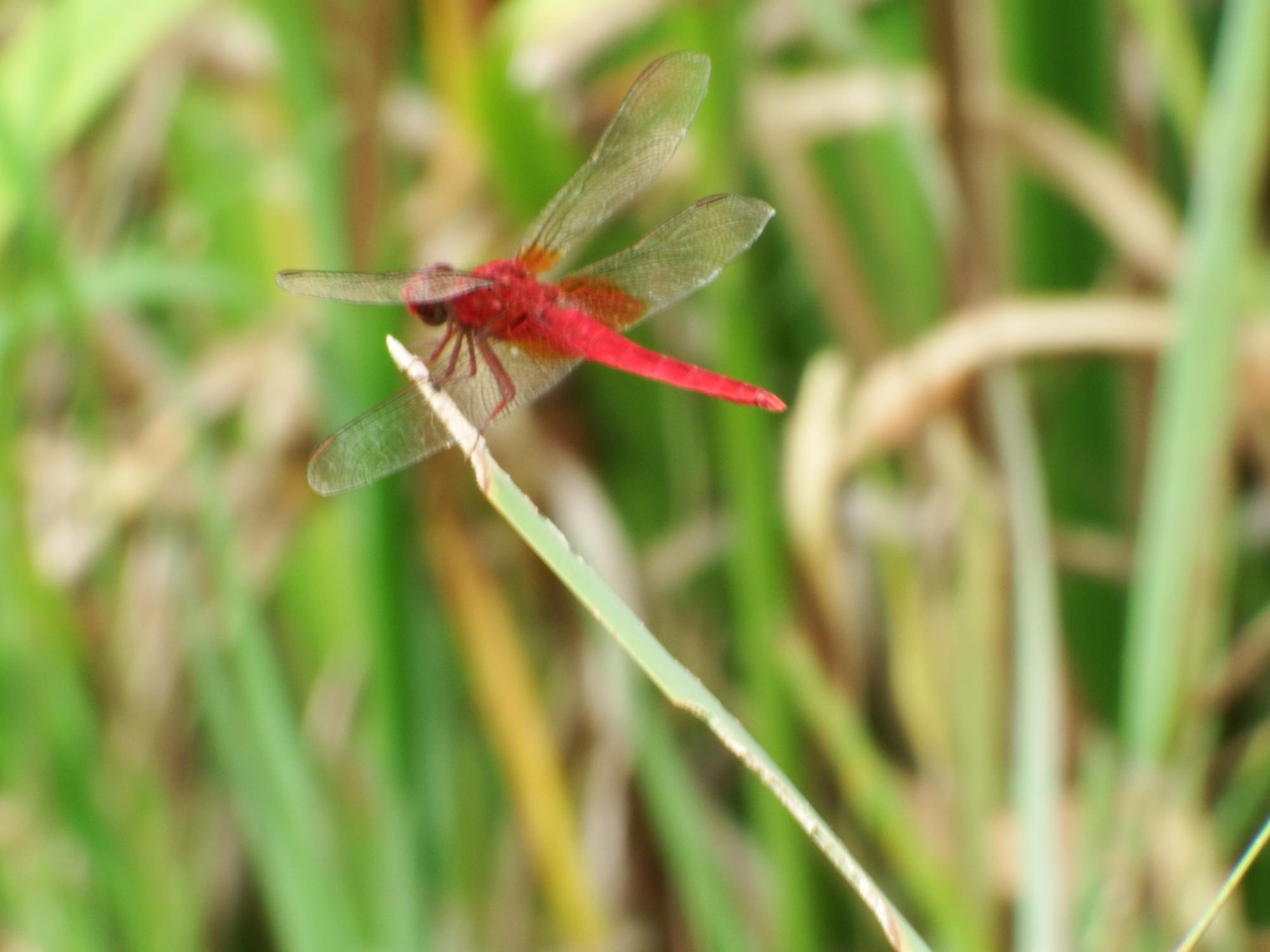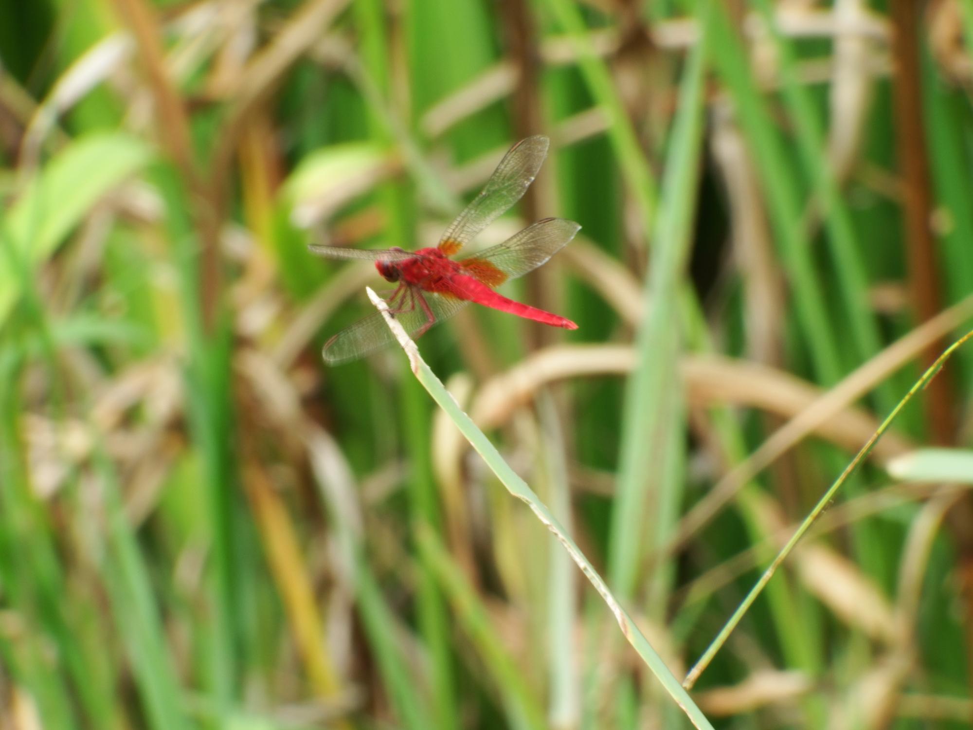 石川河川公園にある修景池の葦原にショウジョウトンボ発見。