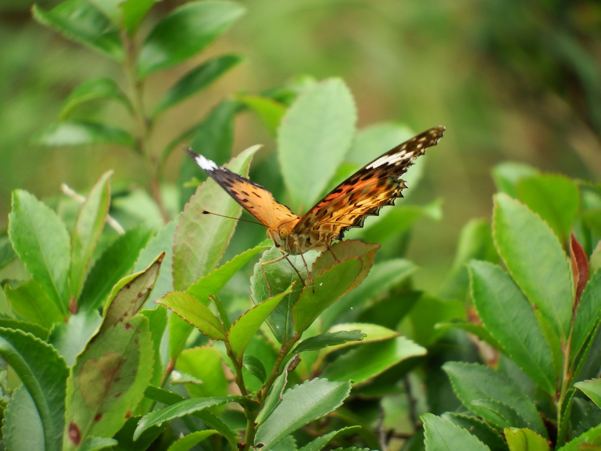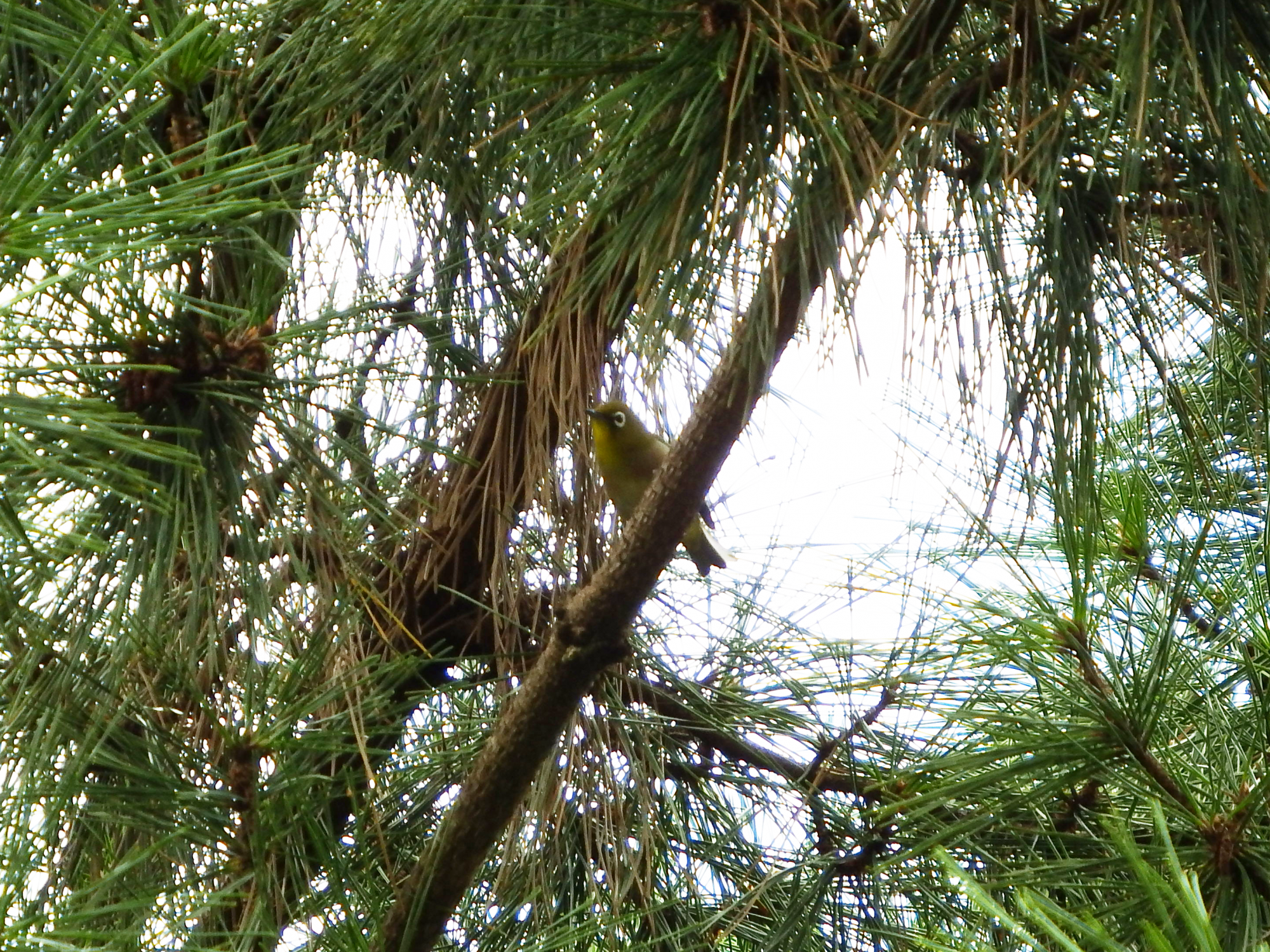 松の木にはメジロ(色補正済)、鳥さんたちが上手く撮らせてくれないので、ツマグロヒョウモン♀をじっくり撮影。