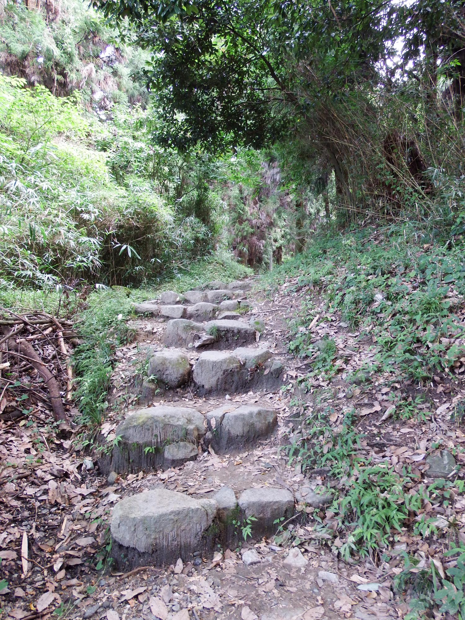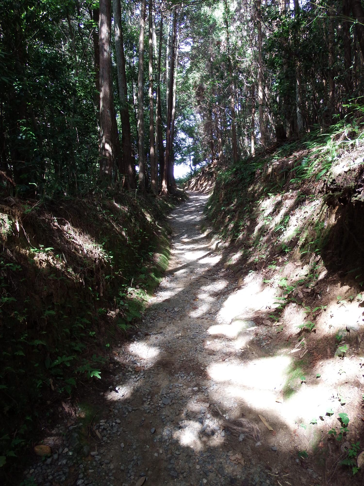 九十九折の道、石段、林の中の道、短い区間でさまざまに変化する道も山の辺の道の楽しさのひとつ。