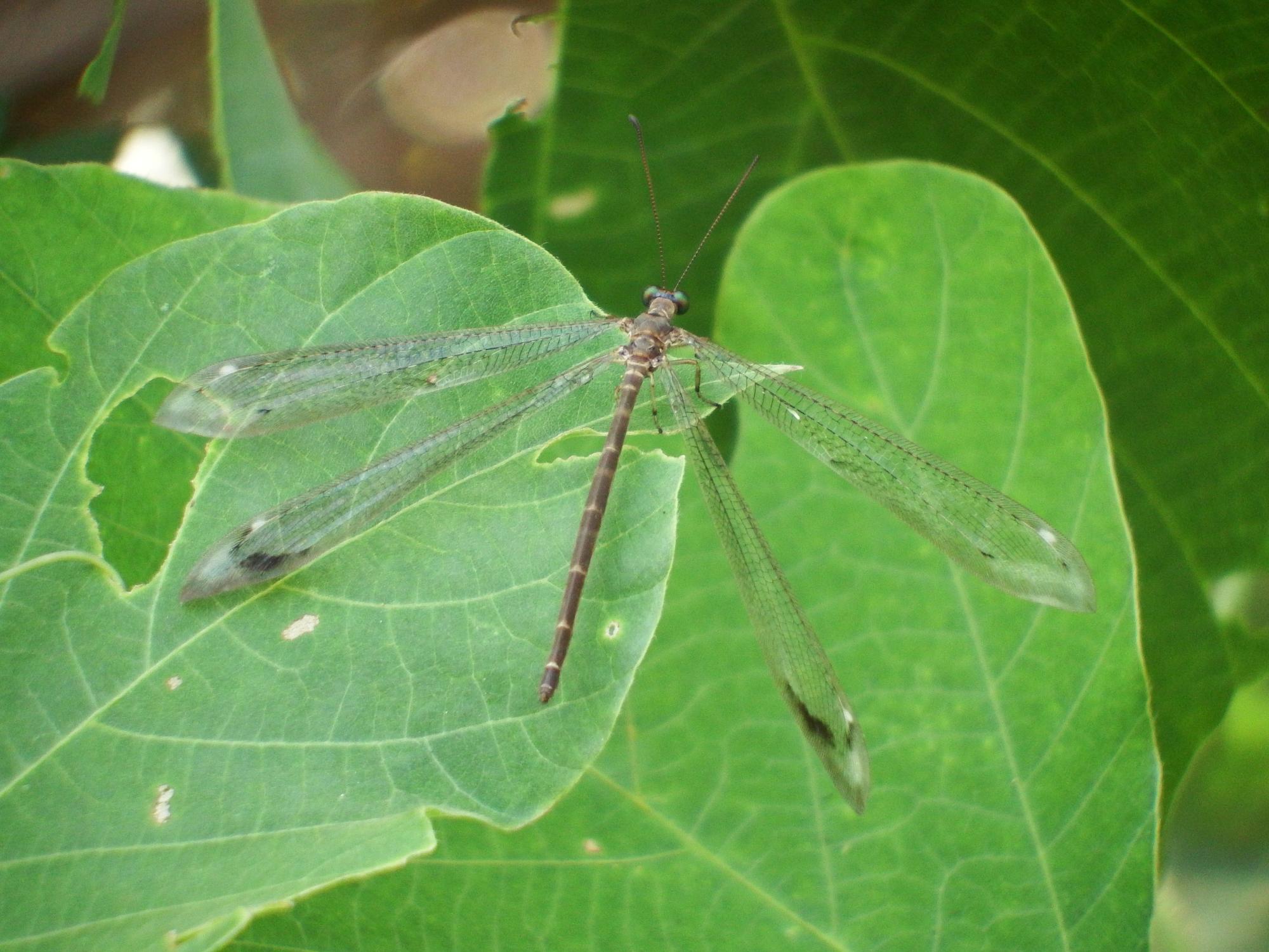 こんどはウスバカゲロウ、胴体より長い翅、小さな頭、長い触覚、トンボではなくアミメカゲロウ目という全く別の昆虫です。