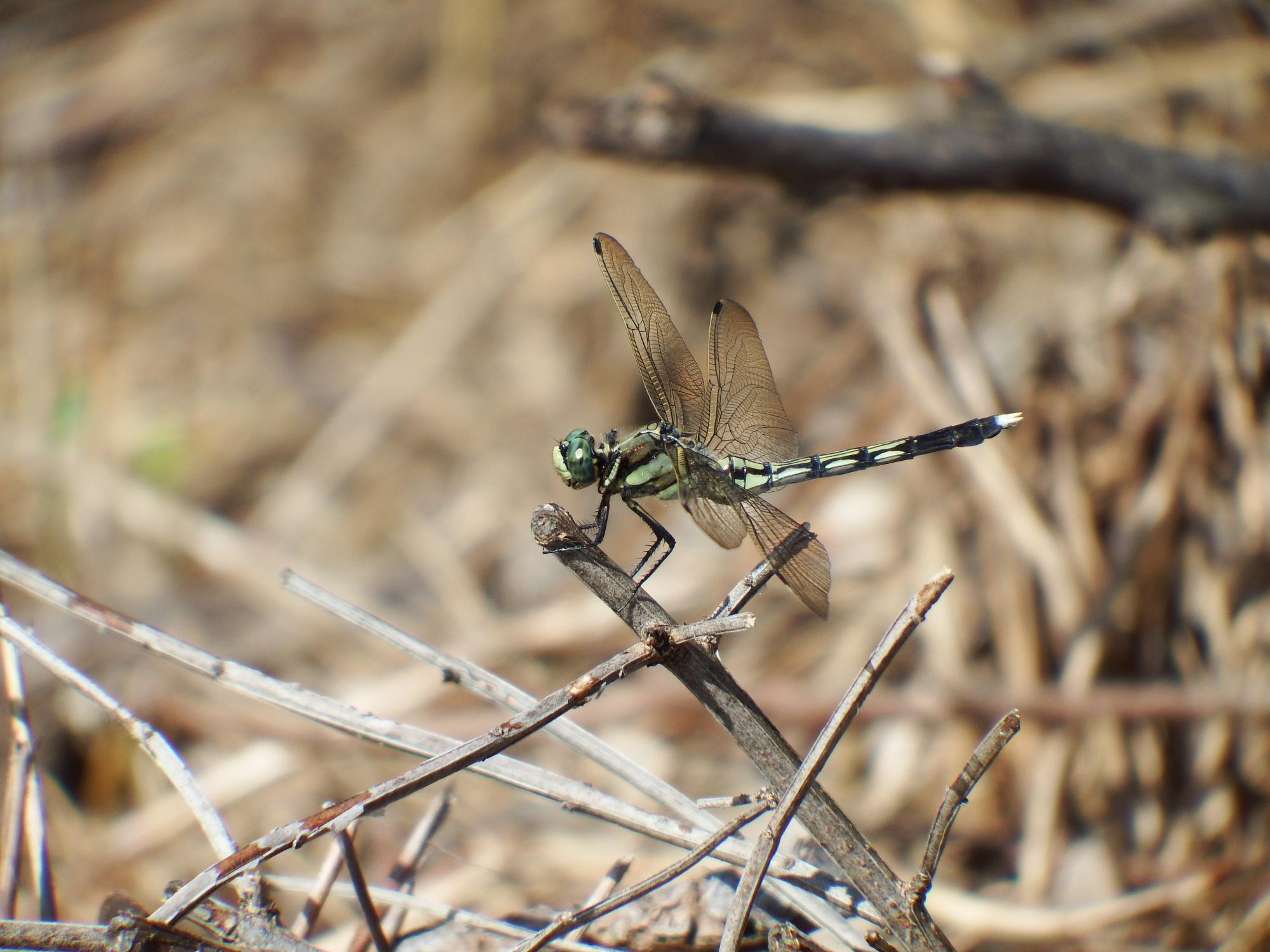 形はシオカラトンボですが、目もお腹も緑です。ムギワラトンボではないシオカラトンボ♀のようです。