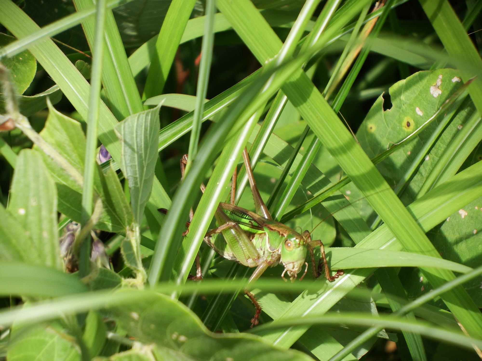 アオモンイトトンボ♀、その向こうの草むらにはトノサマバッタ(たぶん)が隠れていました。