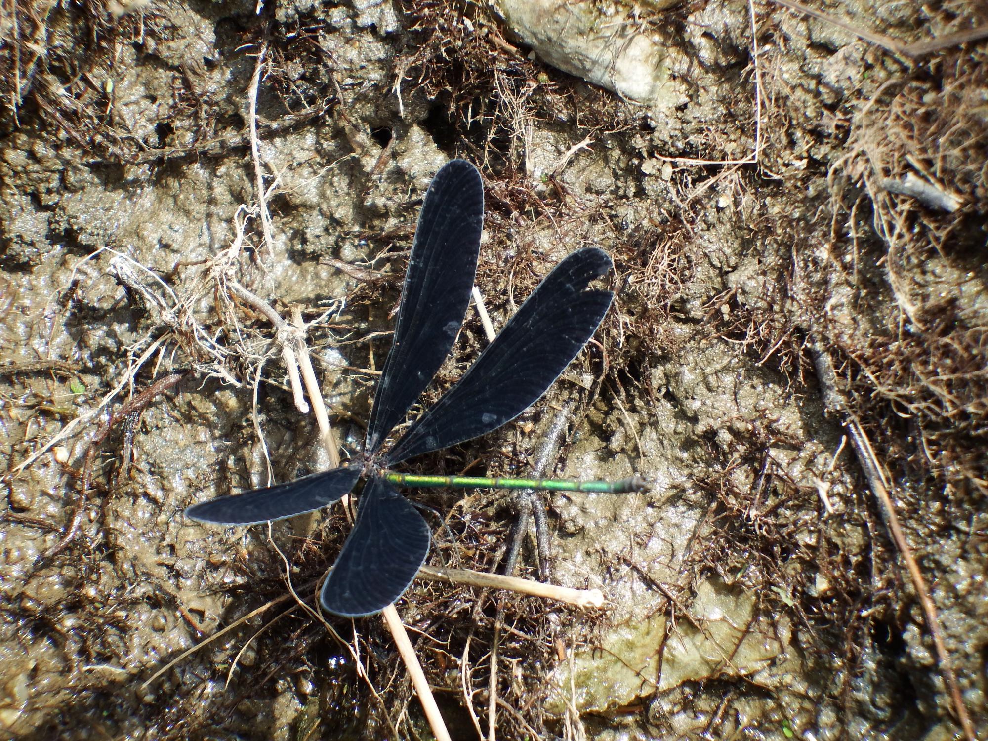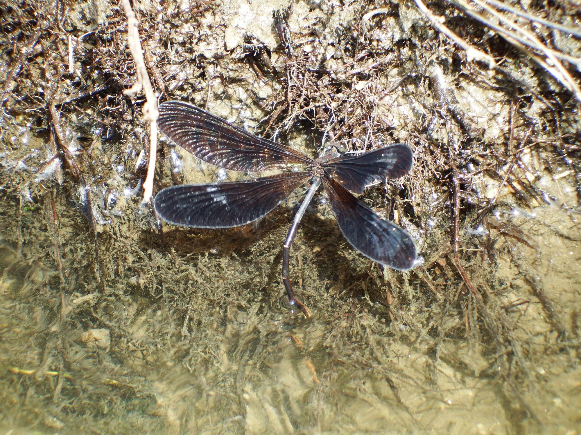 小さな水の流れをのぞき込むとハグロトンボの♀と♂