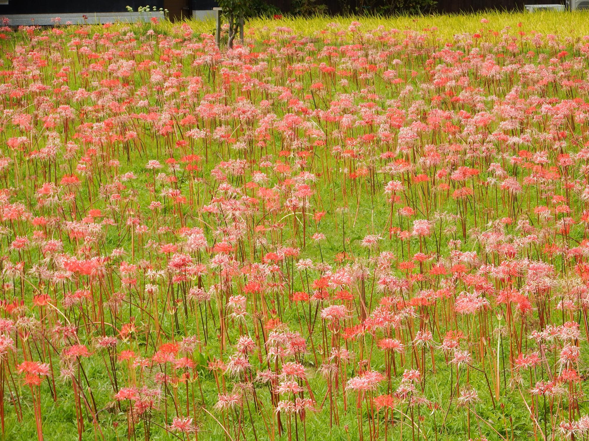 倭建命のお父さん景行天皇陵、その先に見事なヒガンバナの群生。