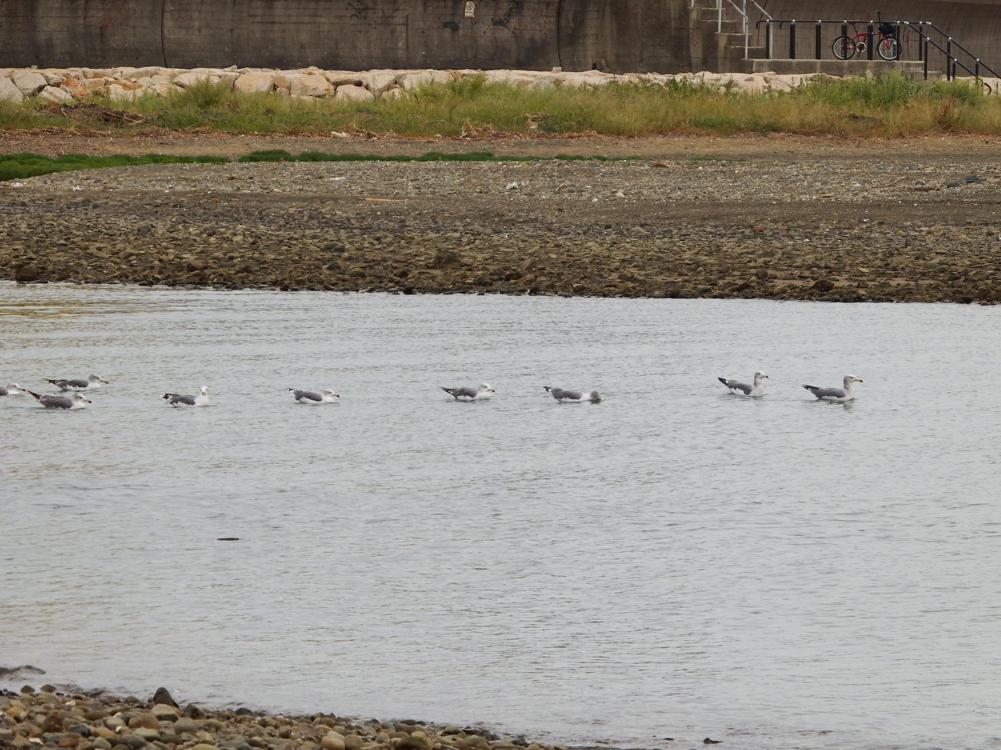 泉南市の友人宅への途中、男里川河口に寄り道、期待していたシギたちは見当たらなかったものの、ウミネコたちがたくさん。