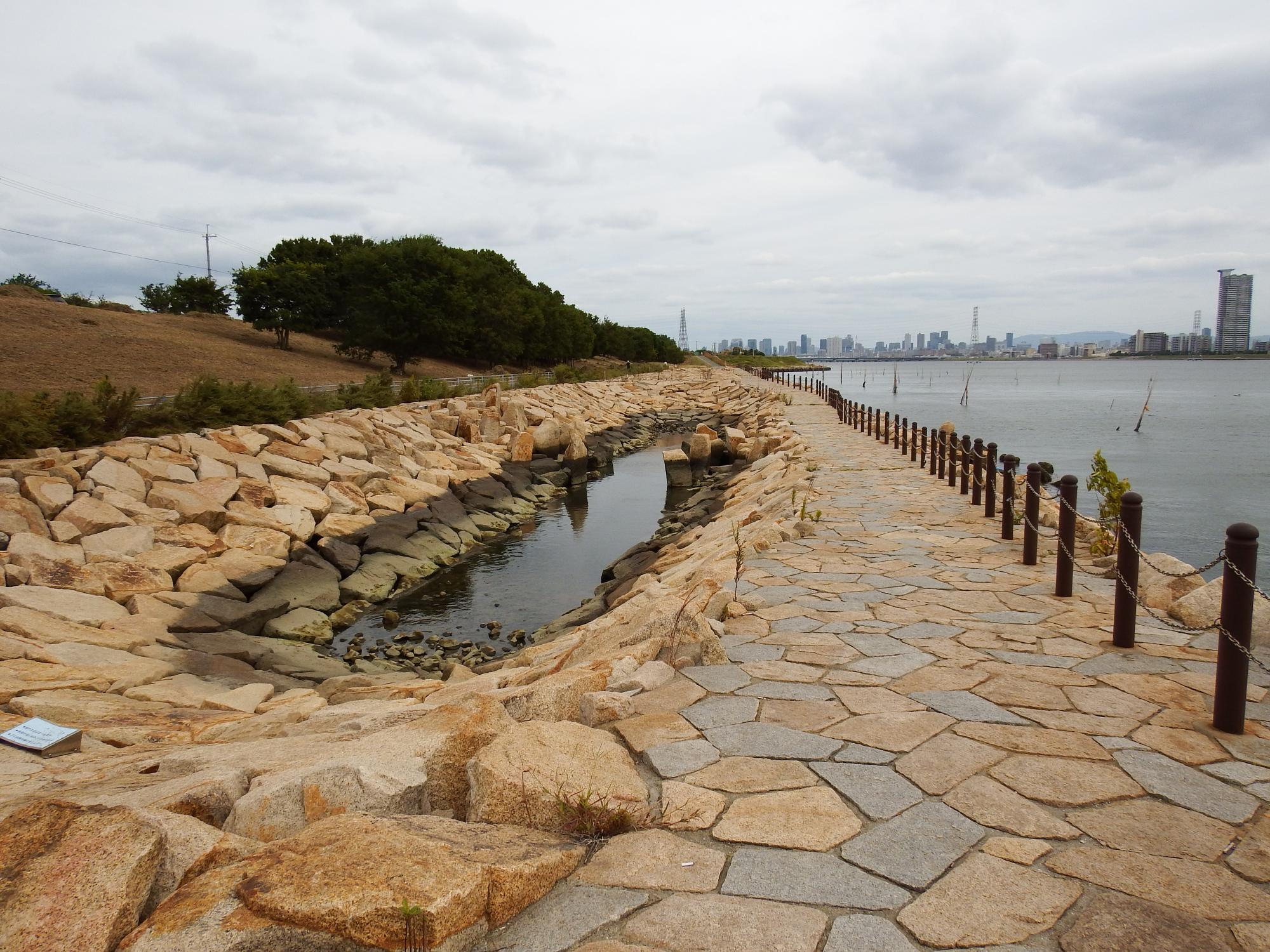 やってきました、淀川の河口です。この淀川と神崎川の河口に囲まれた部分は矢倉緑地という小さな公園になっています。