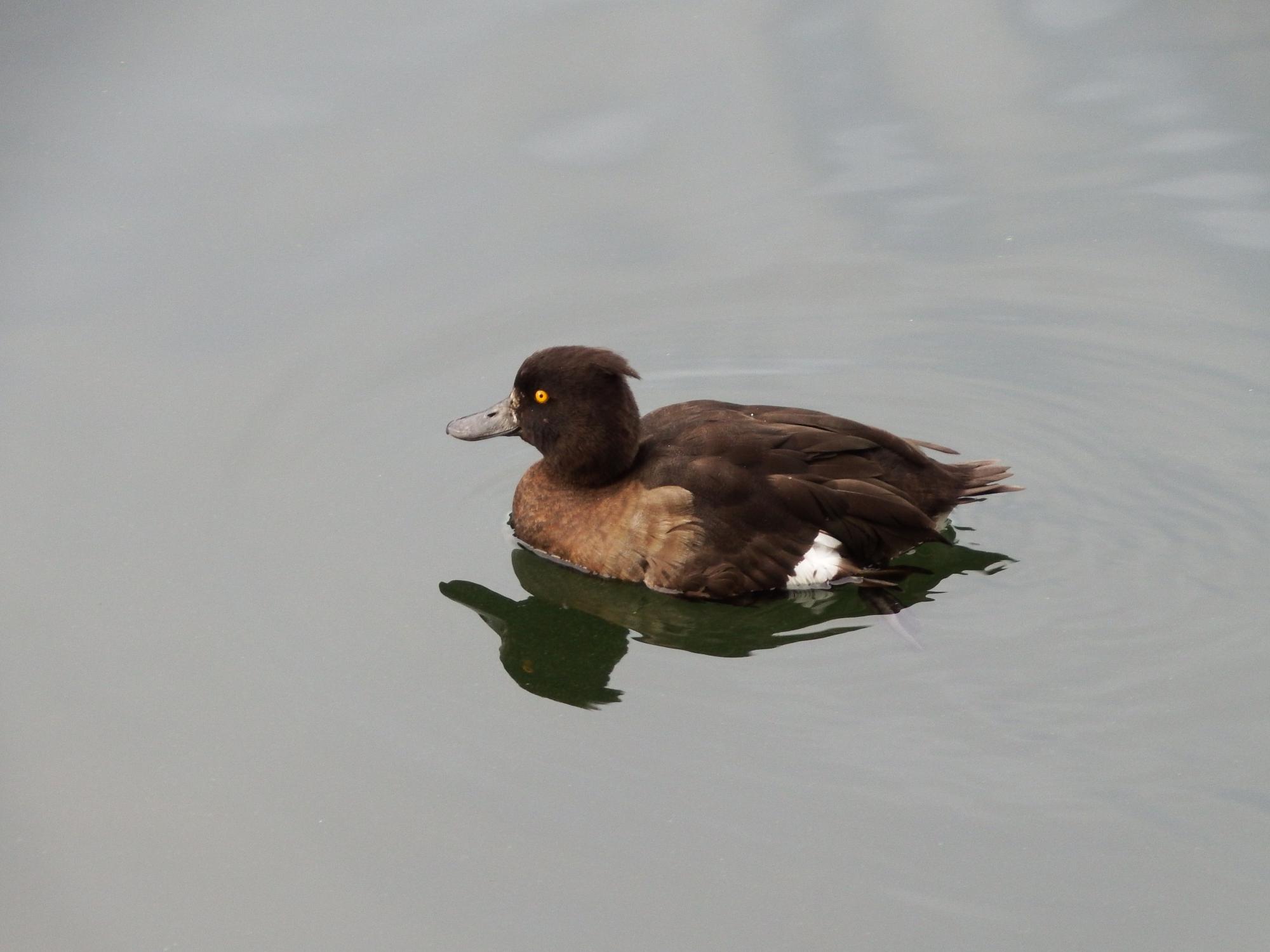 愛の森北側の石垣から外堀に増えてきたカモさんたちを観察、キンクロハジロ♀です。