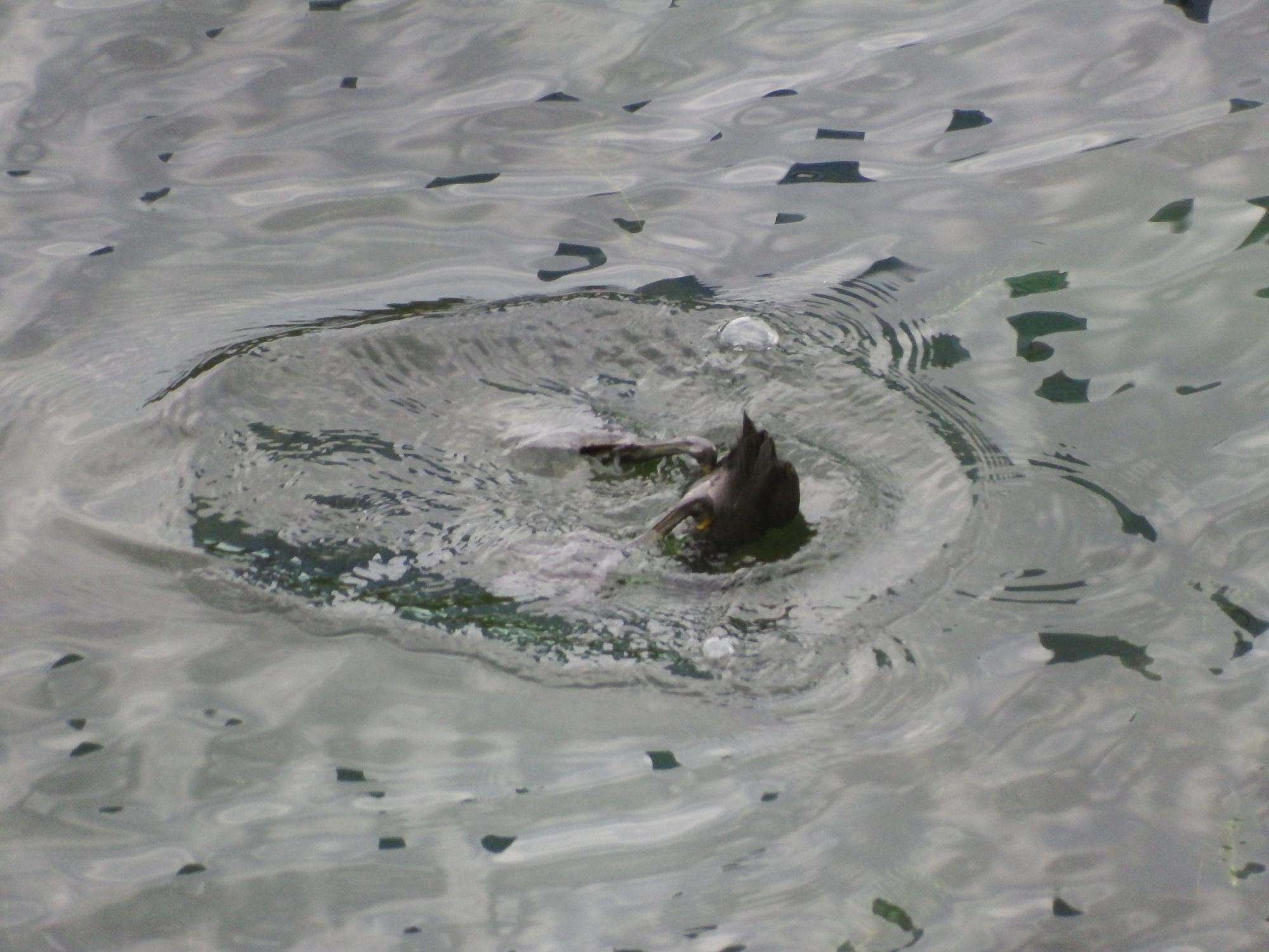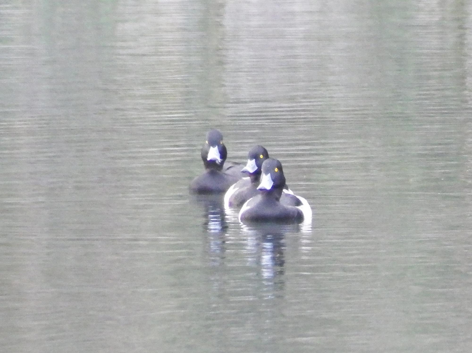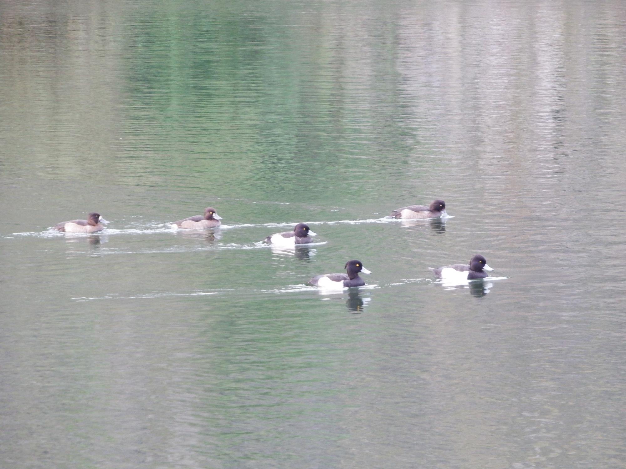 もちろん、もうカワセミは見つけられませんでしたが、キンクロハジロ軍団を横から撮影。