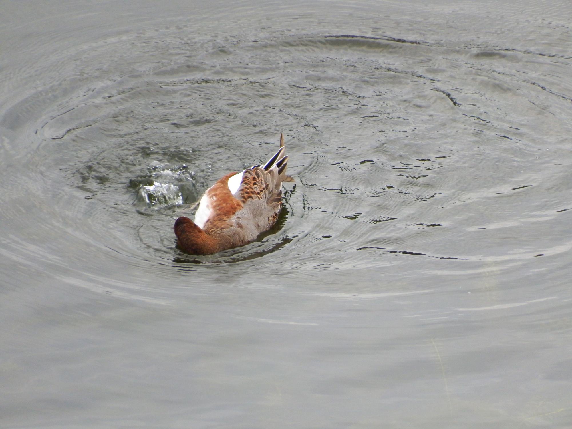 変なポーズのヒドリガモ♀とヒドリガモ艦隊