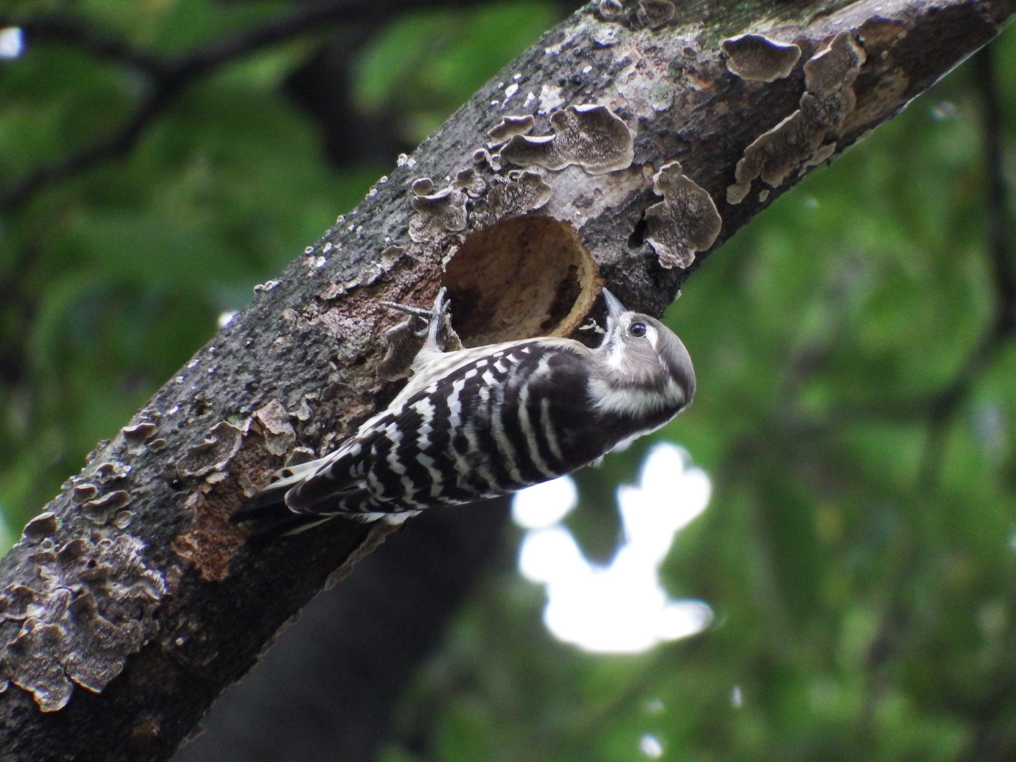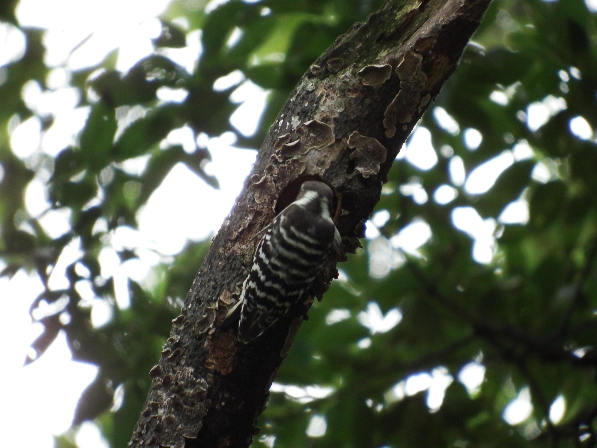 今日はカモさんたちで満足して帰るかと思ったその時、木の上からコンコンコンコンという音が!