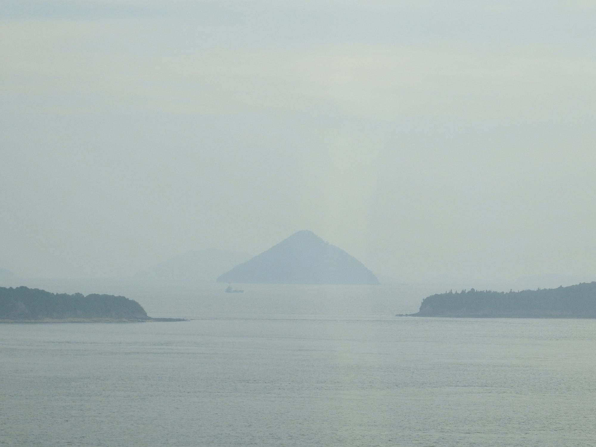 瀬戸大橋で見つけたきれいな二等辺三角形の島、調べてみたら大槌島という無人島です。この島の真ん中を岡山県と香川県の県境が走っています。島フェチもやってみたいな、と思います。