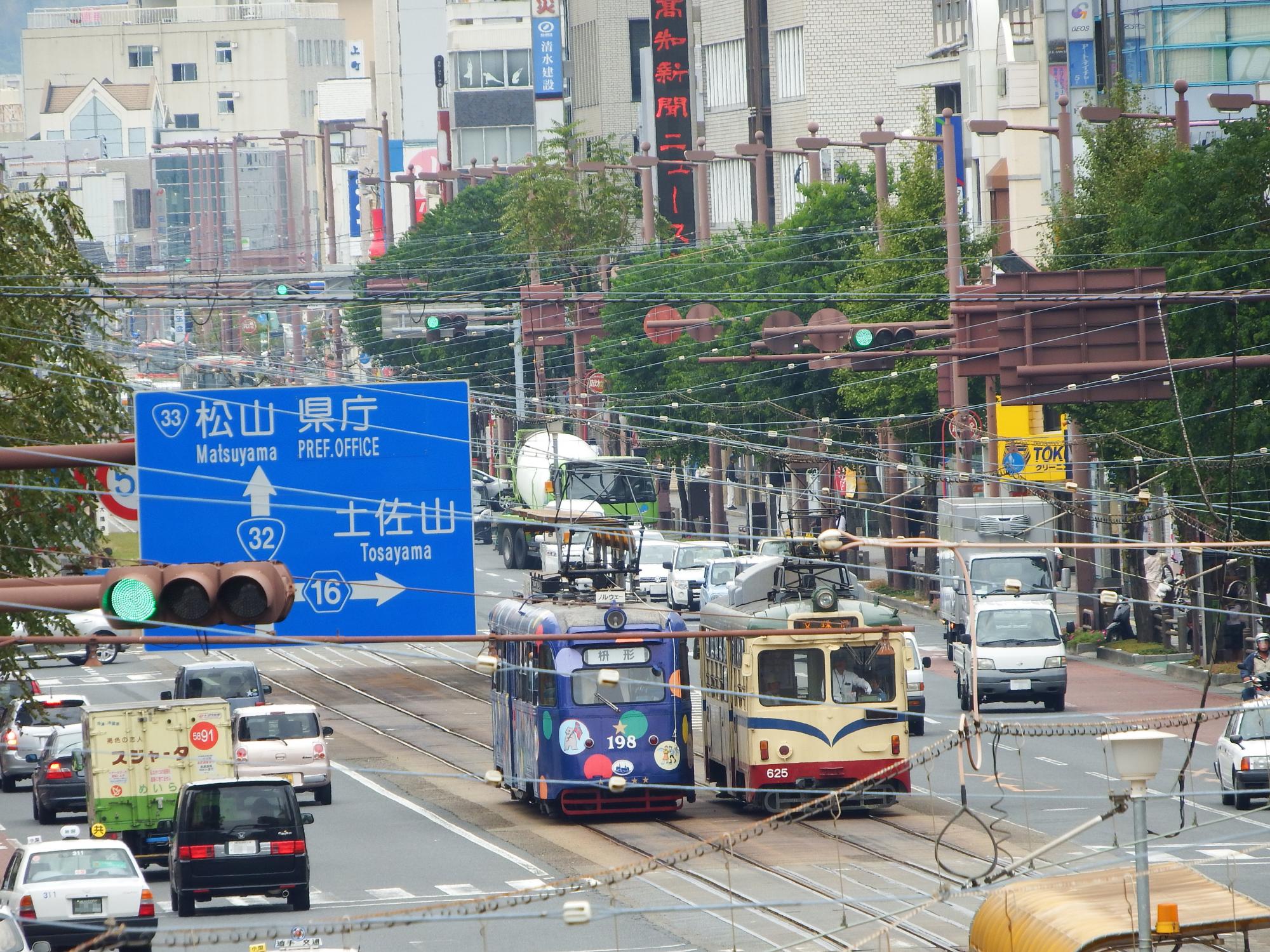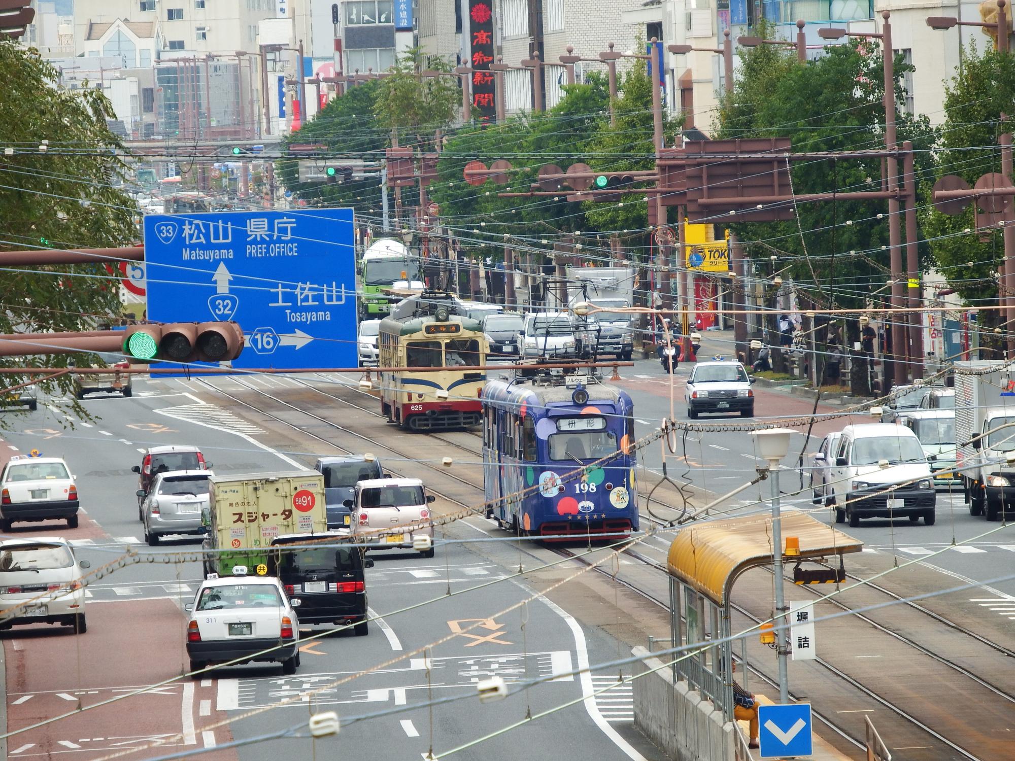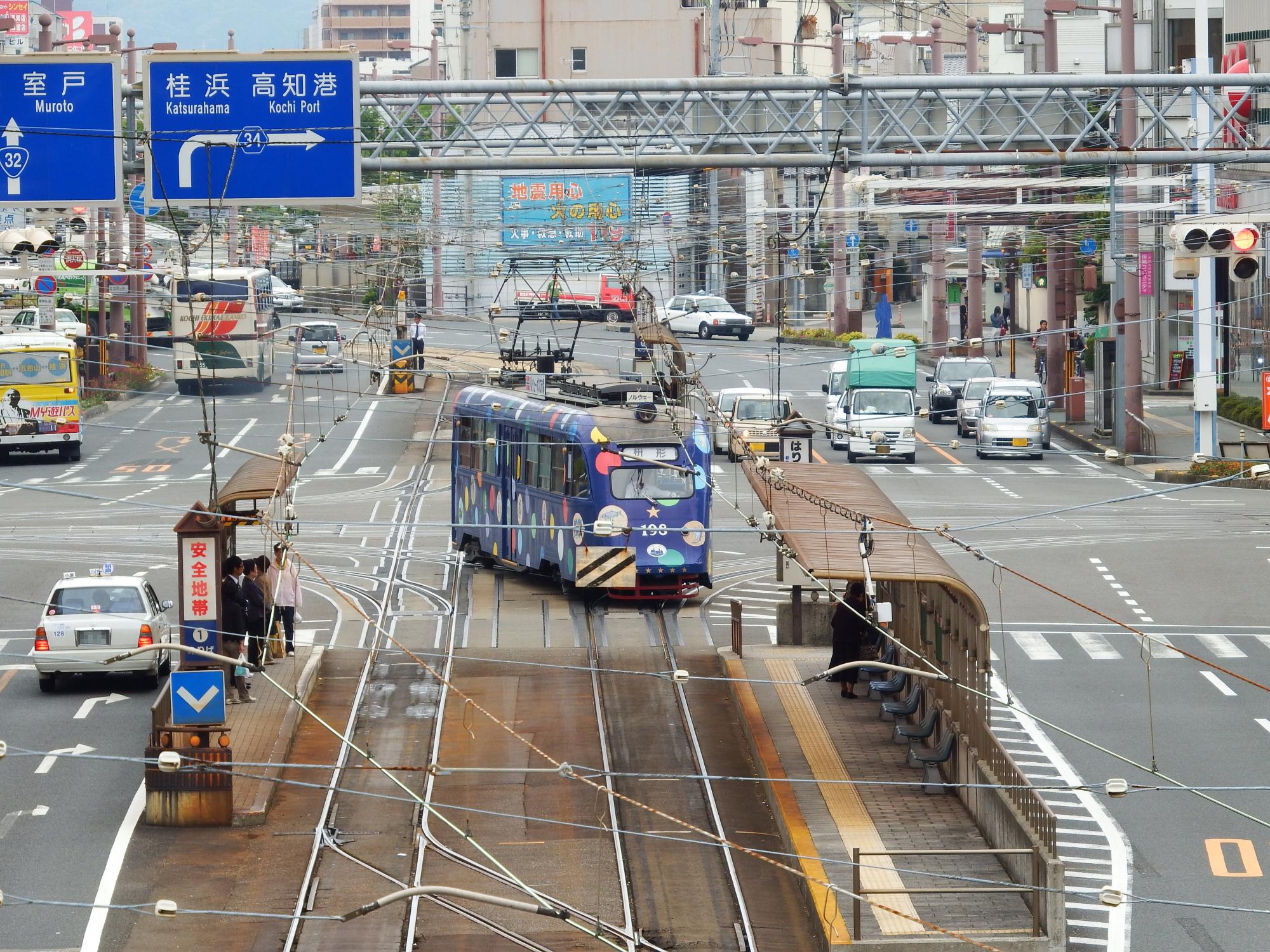 運行時刻表をチェックすると高知駅前に行けば198形がいるはずなので、戻ります。