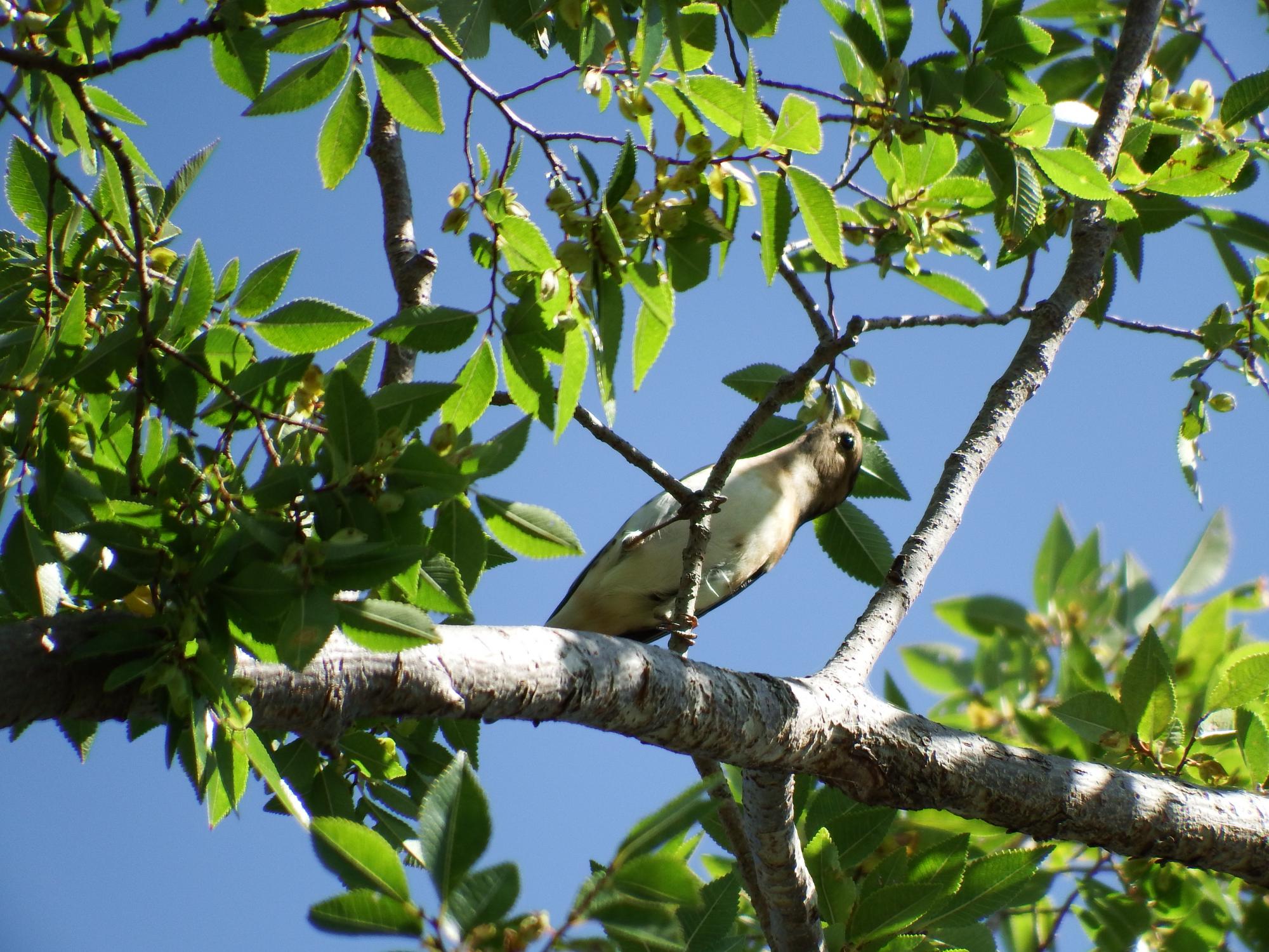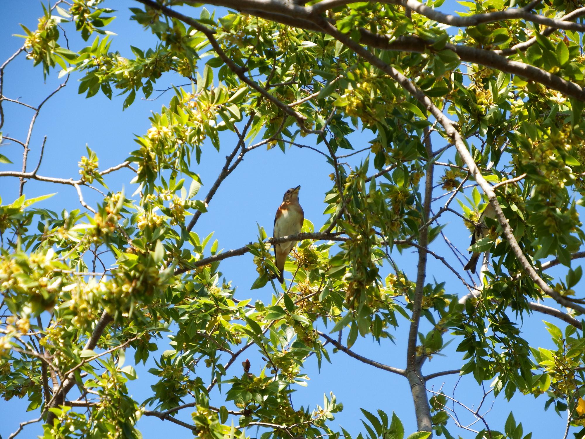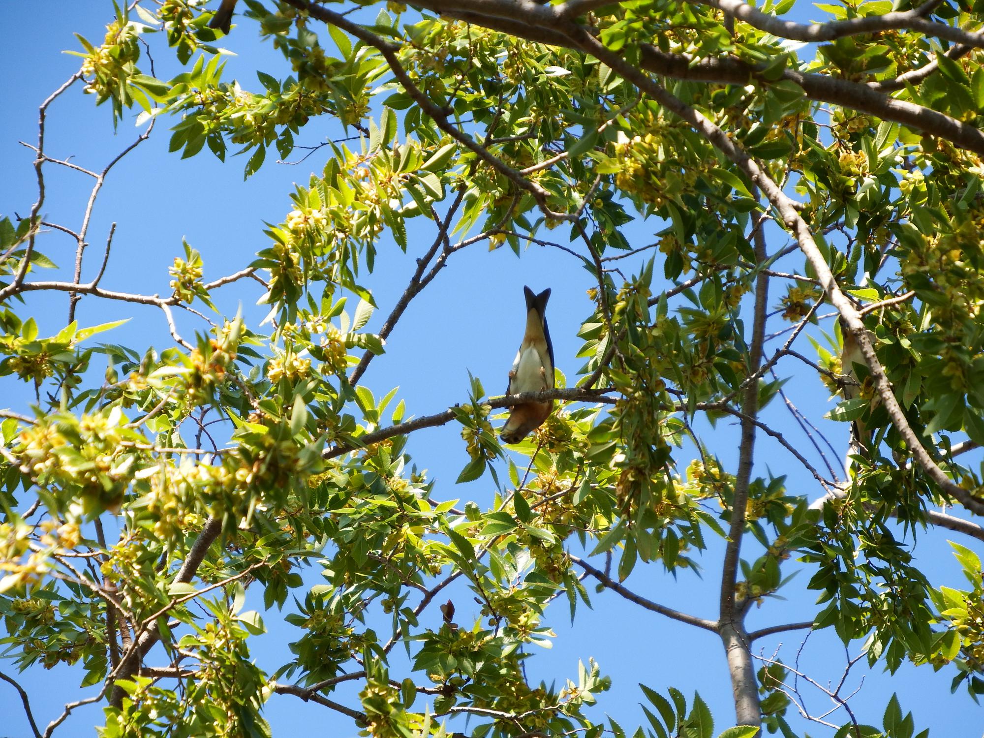 初めてお目にかかるもののアトリで間違いないかと思います。5羽くらいいるのですが、みんな木の高い所にいるので、あまり上手く撮れません。
