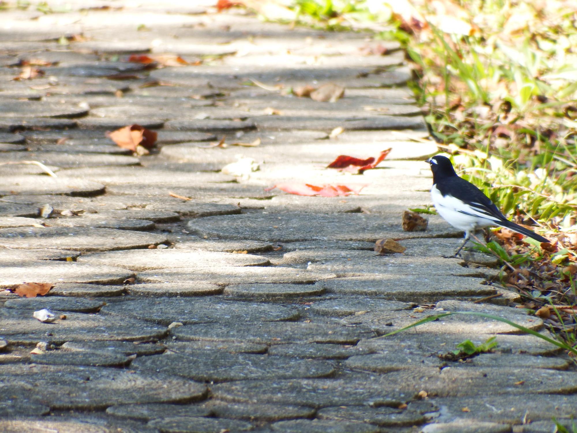 湖の方に目を移すとセグロセキレイ、公園の中に入ってきました。