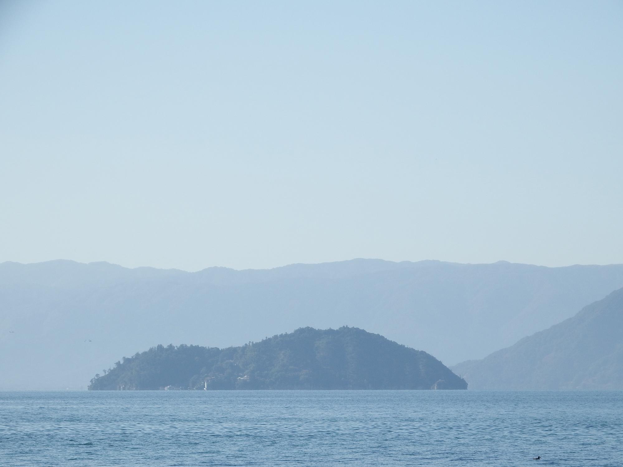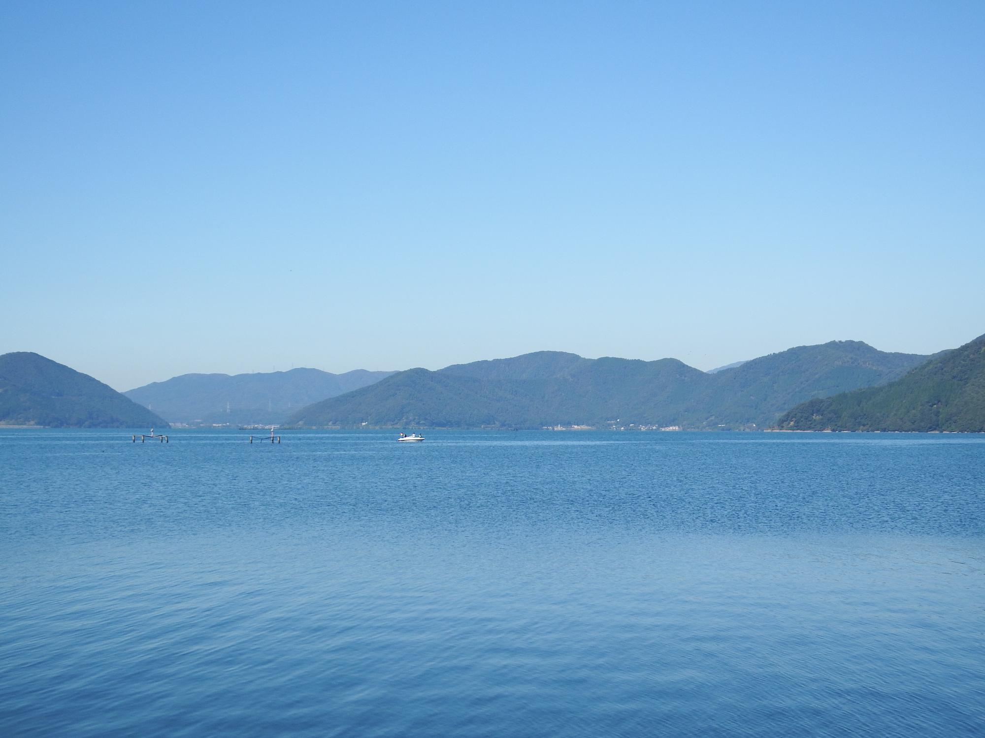 もうちょっと先、尾上港という岬の先端あたりから琵琶湖の一番奥の方を望み、引き返します。