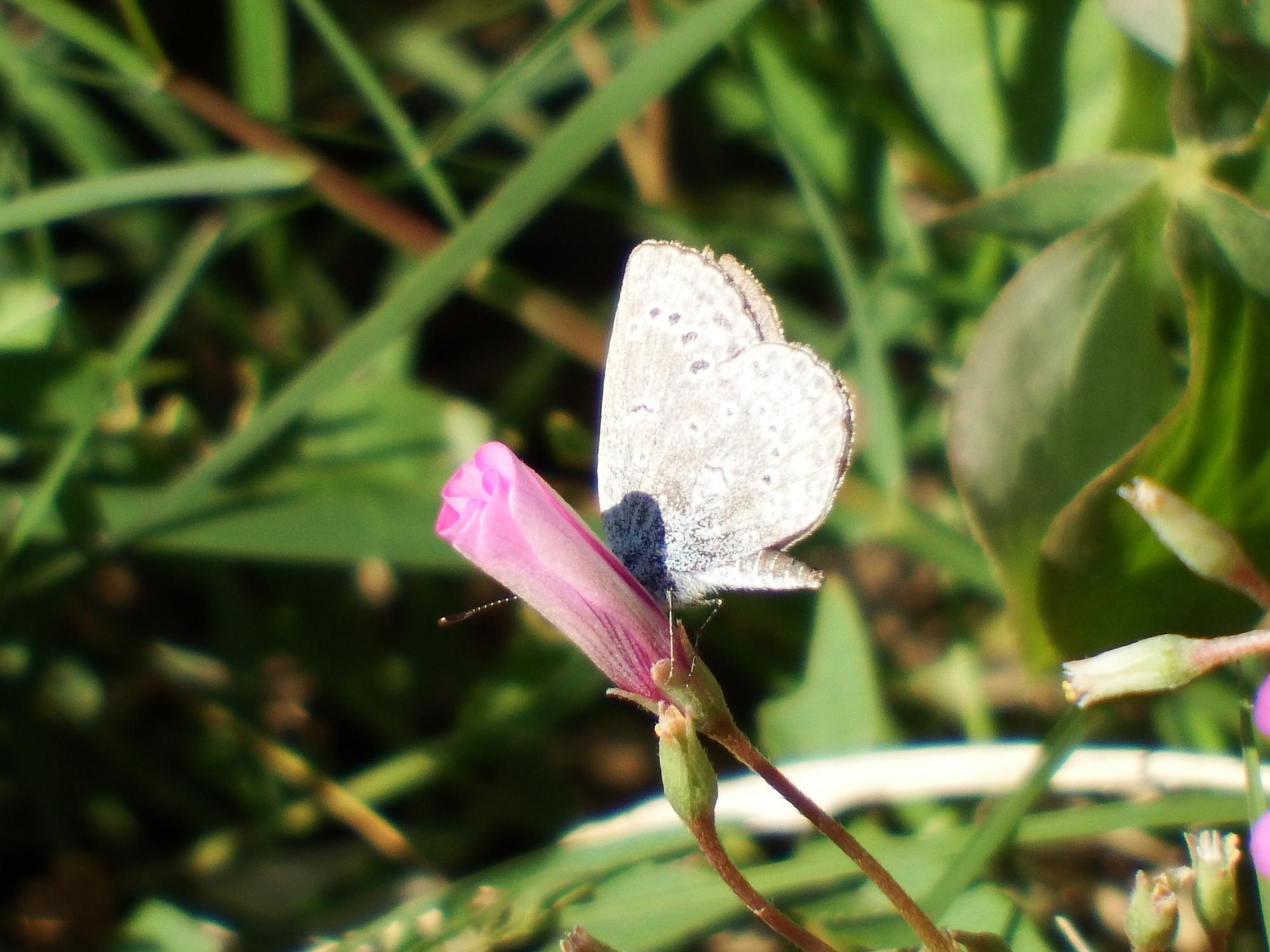 帰りは湖岸ではなくて、田んぼの中を走ってみることにします。ハナカタバミとベニシジミ。