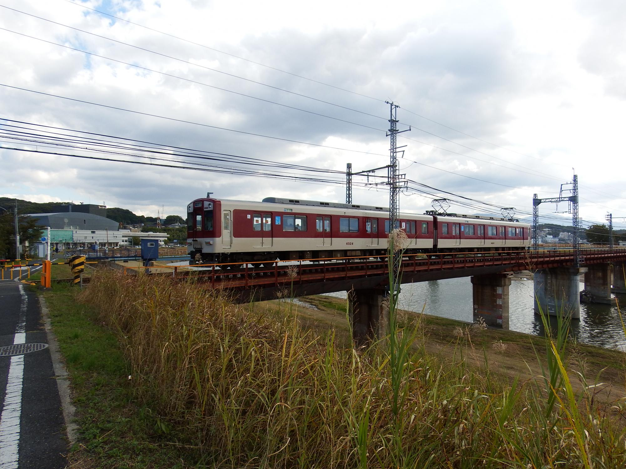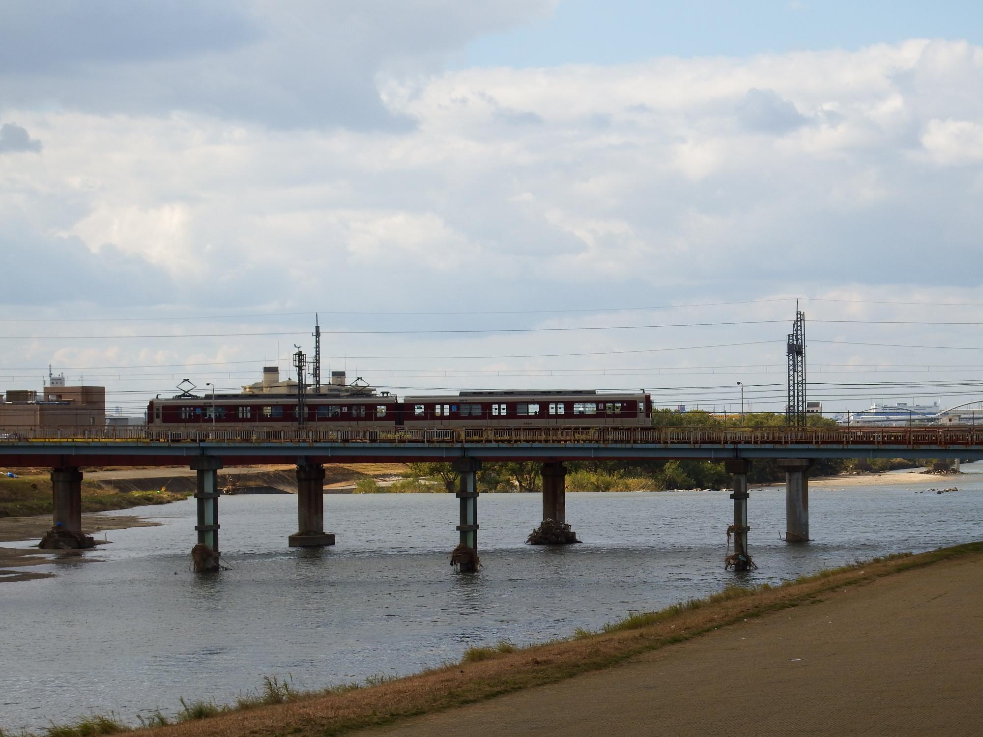 大和川の土手にある近鉄道明寺線柏原南口駅。