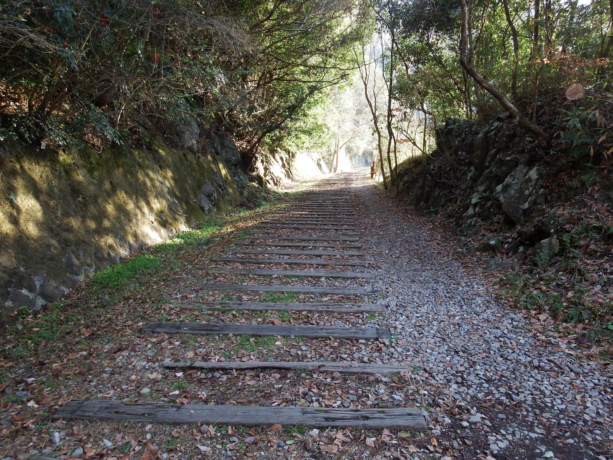 森の中の緩やかな坂道を登って行きます。エナガがいました。