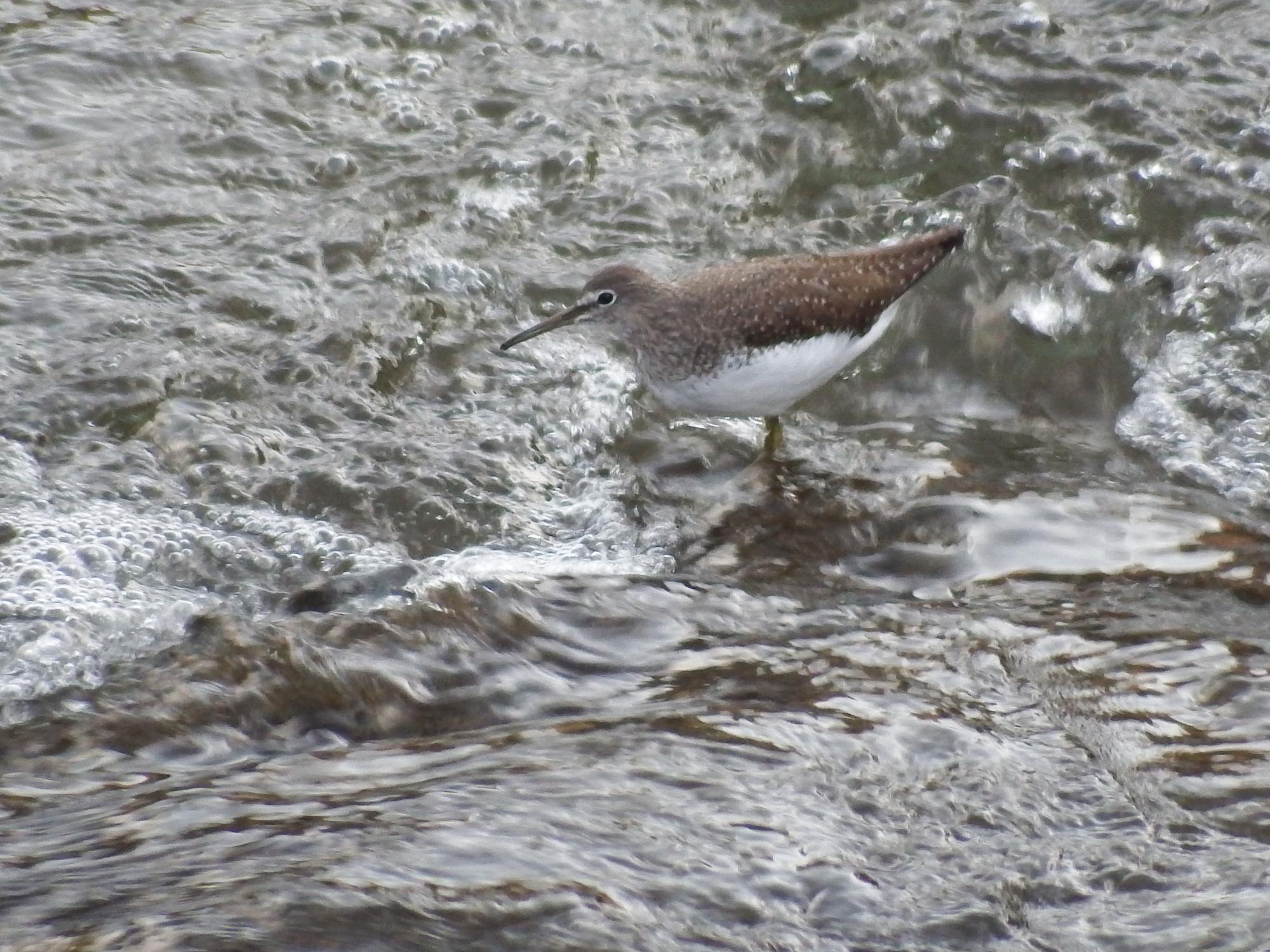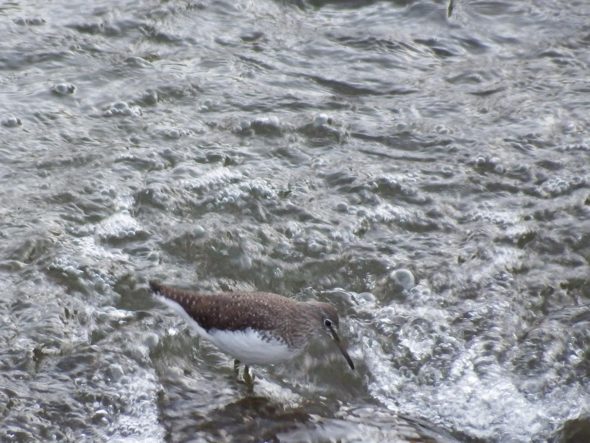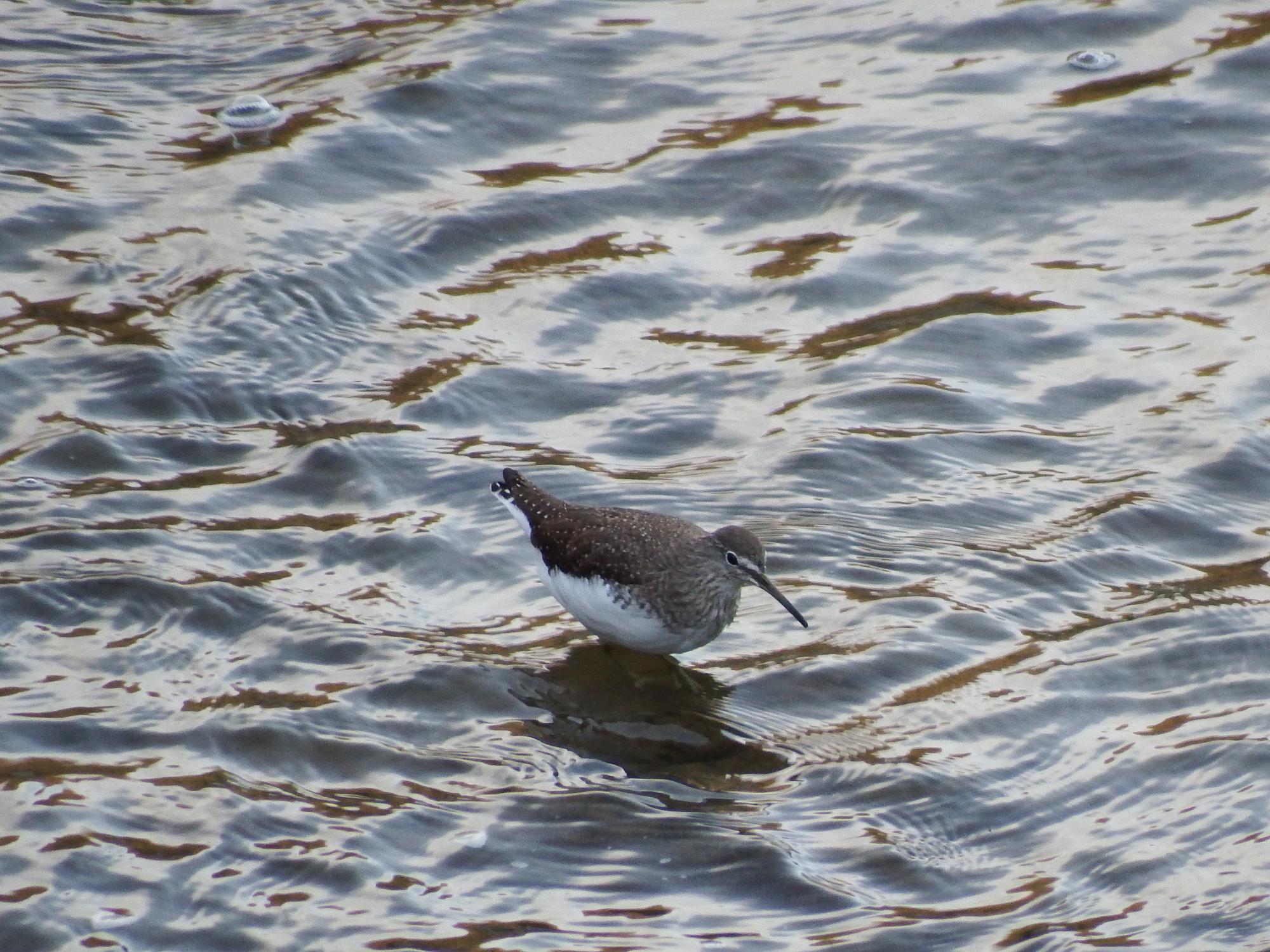 シギチ(シギ・チドリ類)の判別はなかなか難しいのですが、クサシギのようです。イソシギとすごく似てるのですが、ひとまわり大きめで、おなかの白い部分が切れ上がっていません。