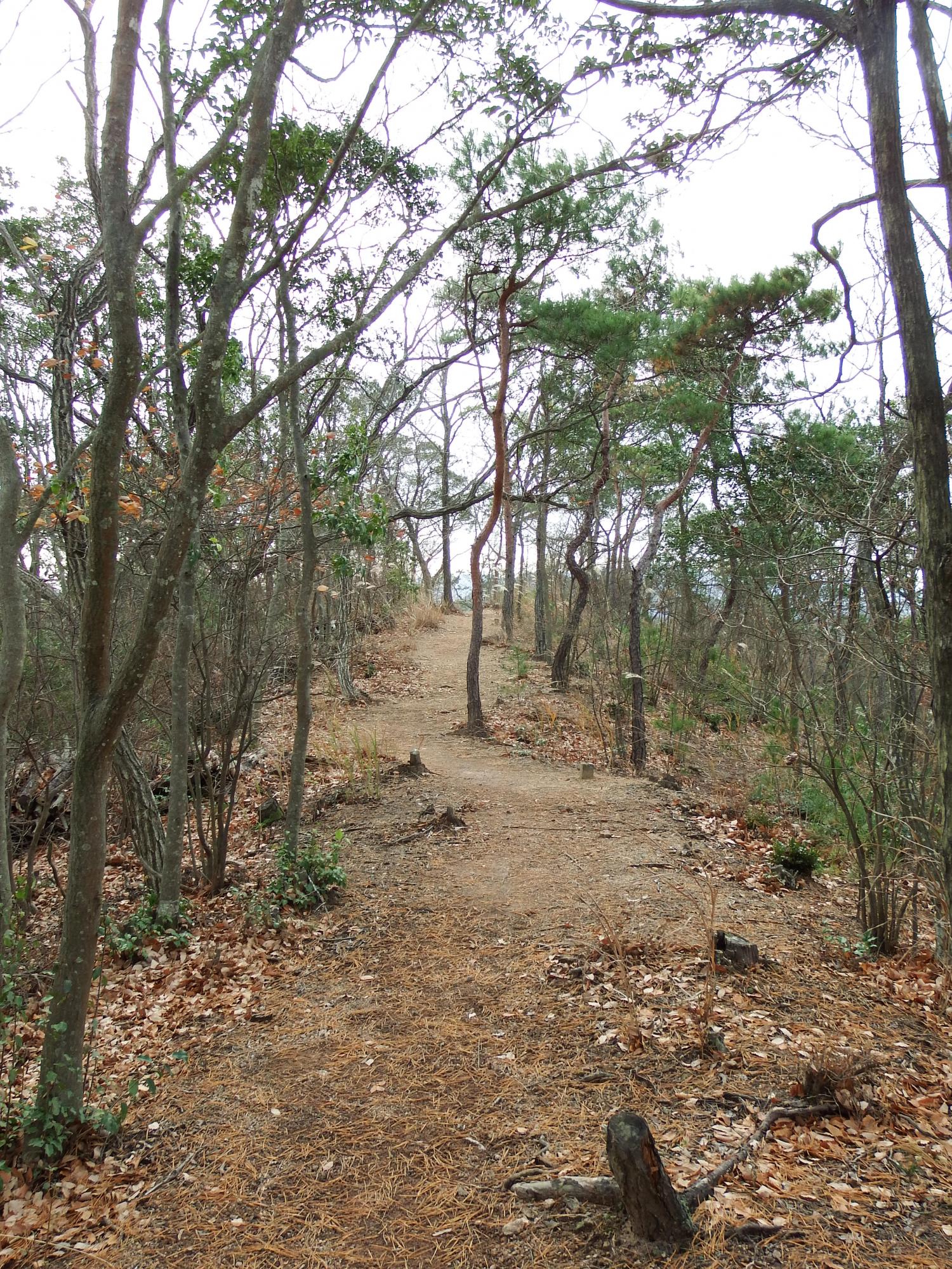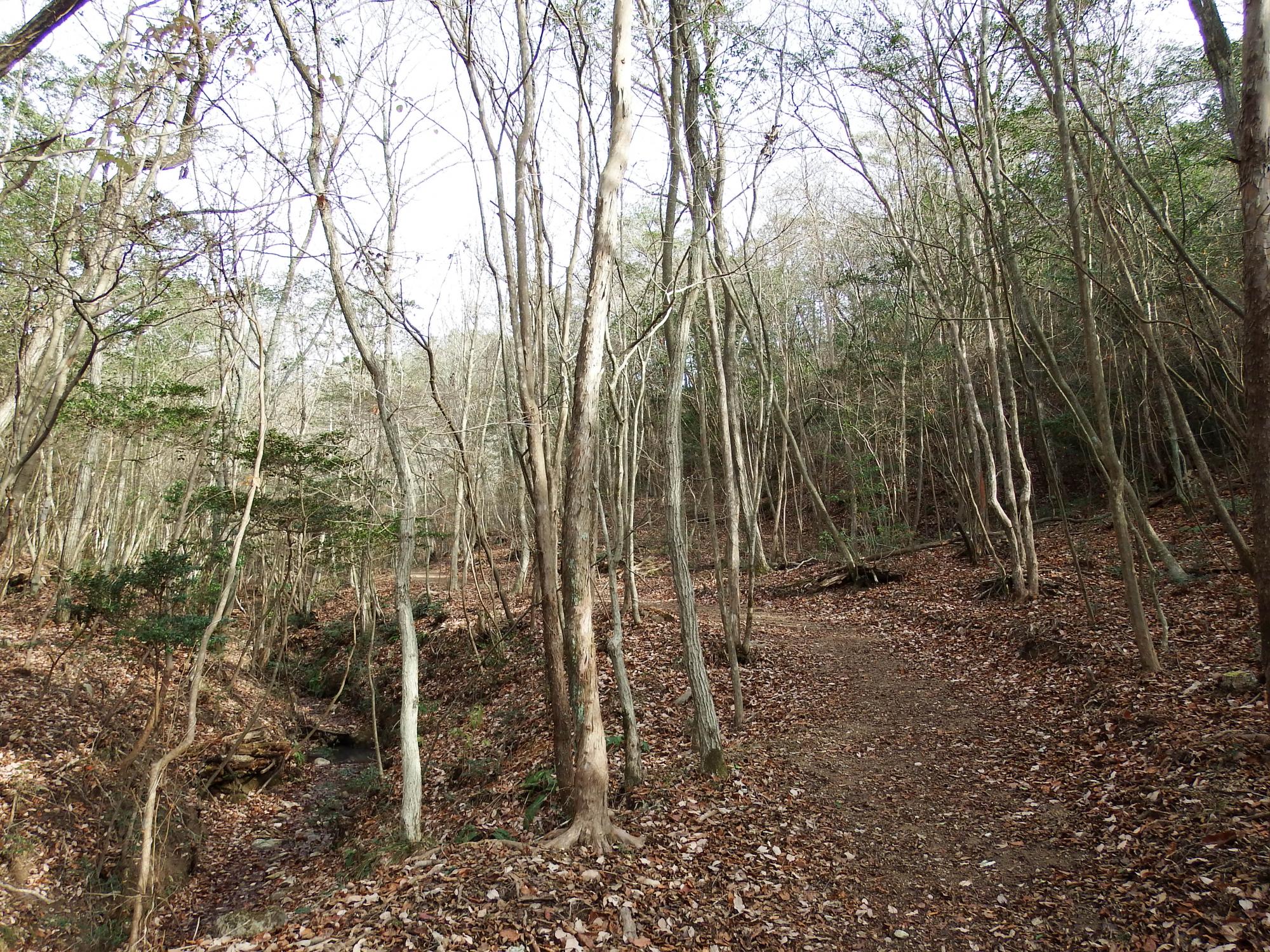 東の谷はがけ崩れで通行止めになっていたので、東の尾根道を通って下りることにします。西の谷とは樹木の植生が全然違い、鳥も全然いませんでした。