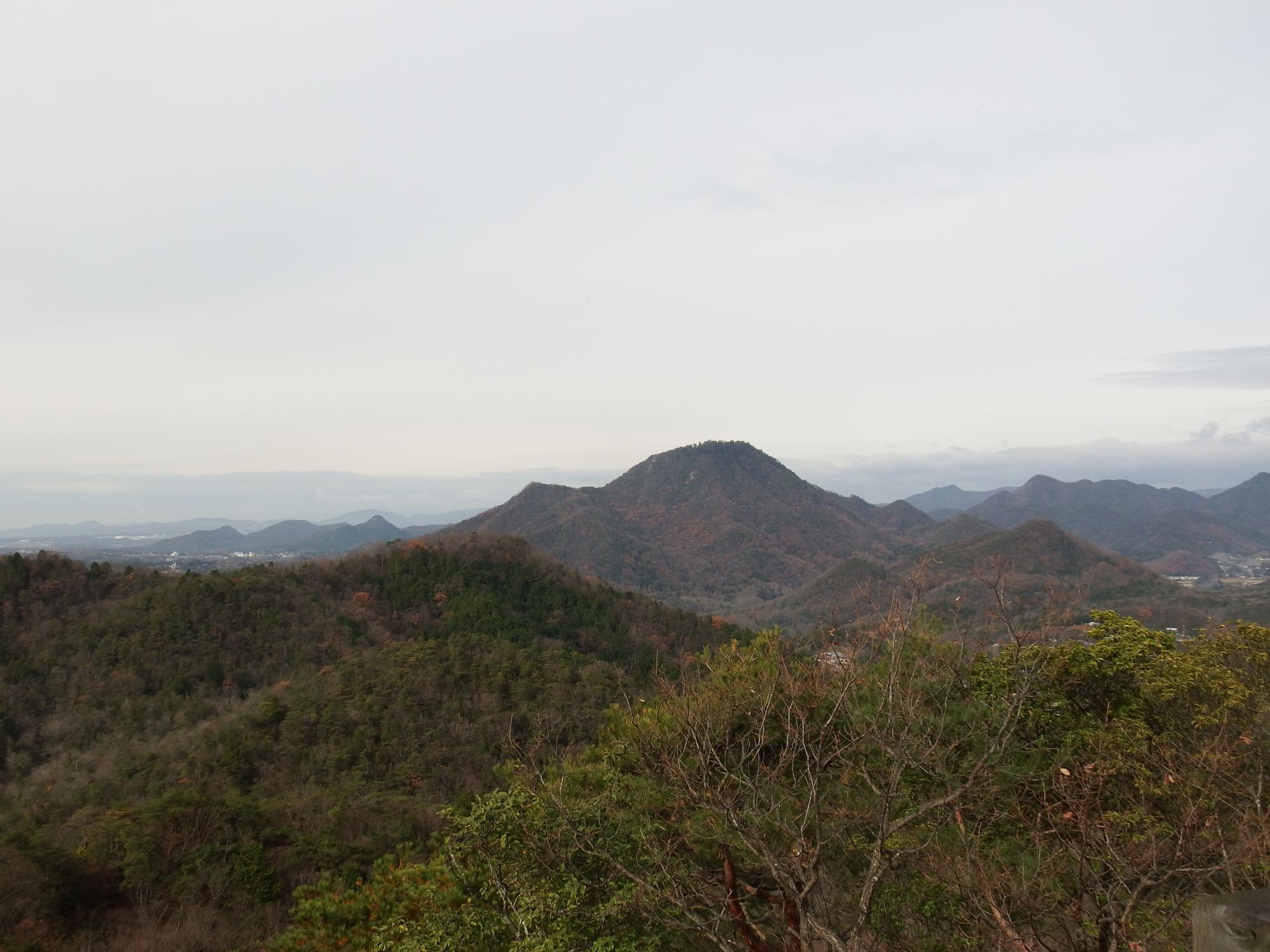 小一時間歩いて三角点の展望台に到着、展望台からの有馬富士です。茅葺きの家からここまで誰一人いませんでした。