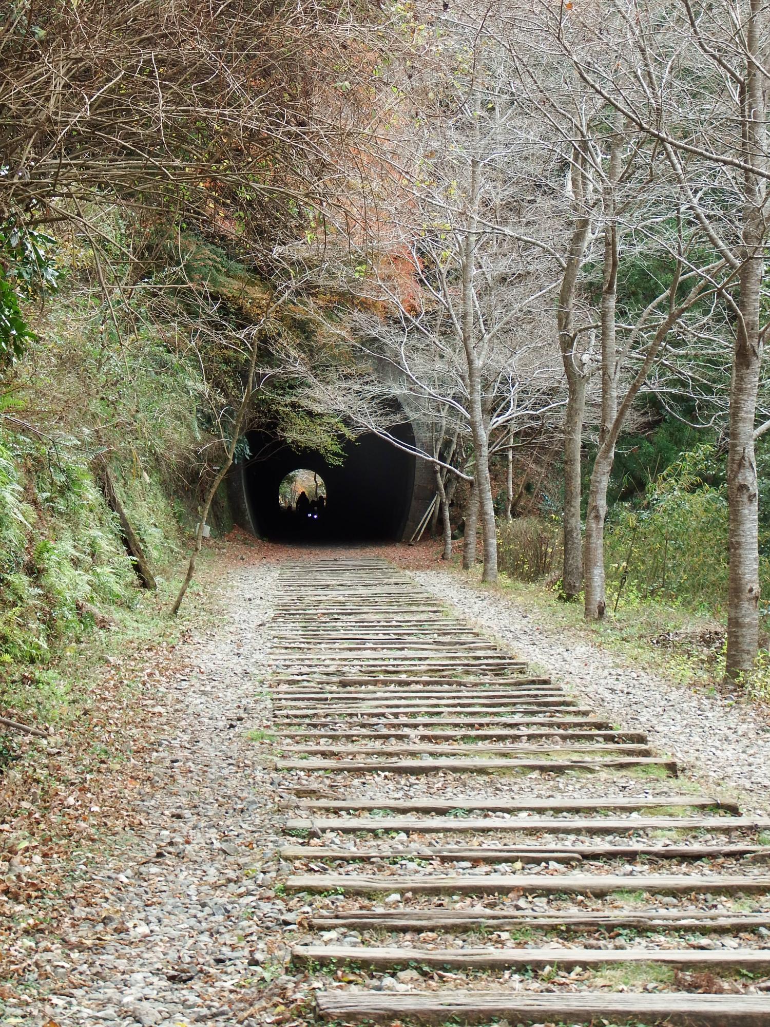 枕木がずーっと続いていて、トンネルの中も歩けるようになっています。枕木の上をステップしながら歩きます。かつてここを走っていたDF50やキハ82系に自分がなったキブンです。