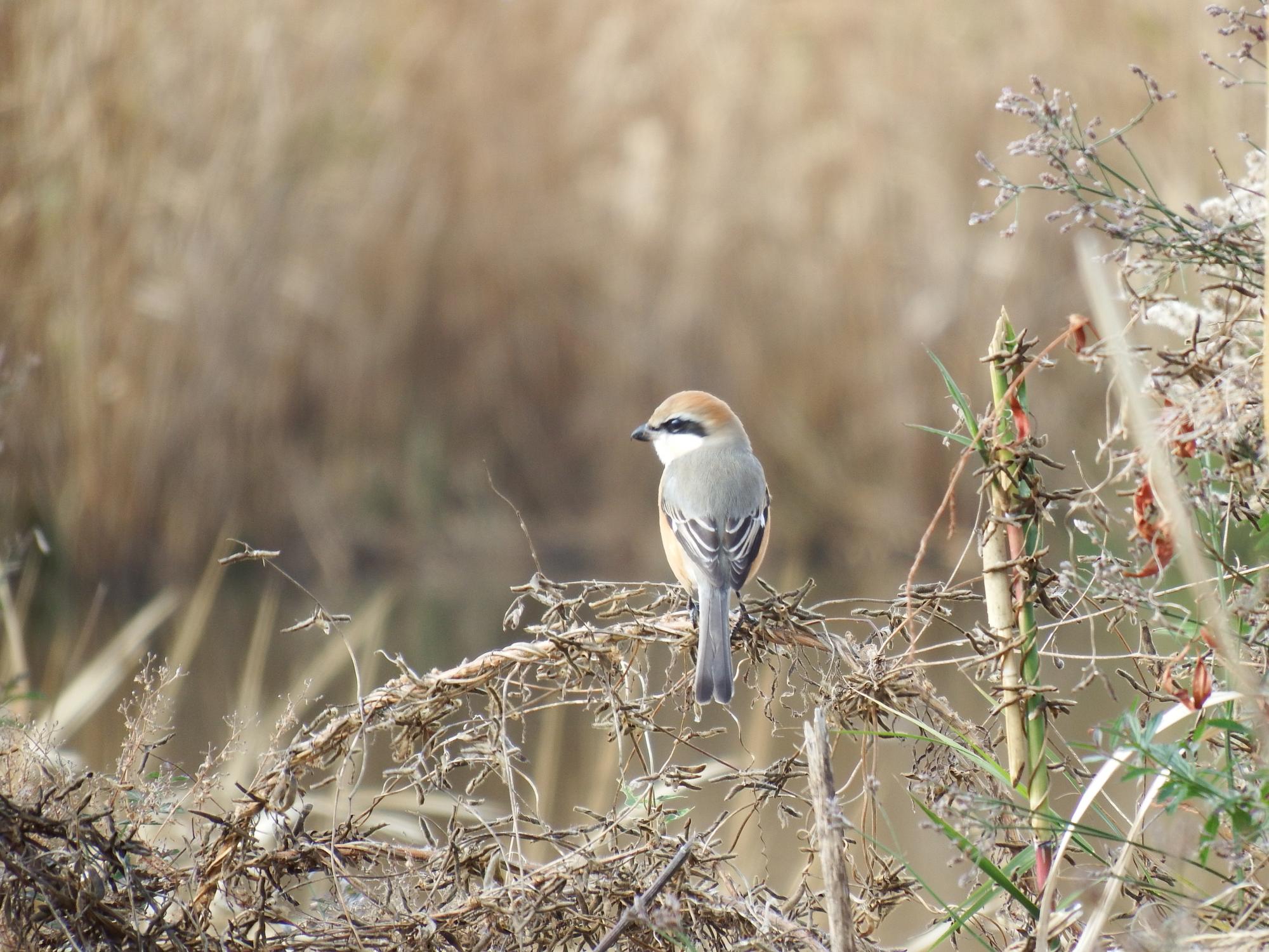 久々にモズ、こんな低い場所で見るのは珍しく、モズの背中を撮ったのは初めてです。