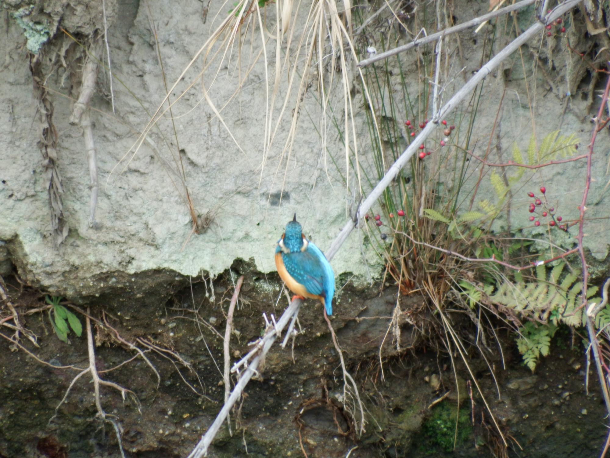 ふと気づいたら横で自転車のおじいさんが自分の様子を見ていました。ほら、あそこに青いのが見えるでしょう?どこどこ、ワシには見えへんけど、ほら、あそこ、あ~なるほど、という話をしているウチに飛んでいってしまったのですが、自分の興奮を聞いてもらえて嬉しかったです。