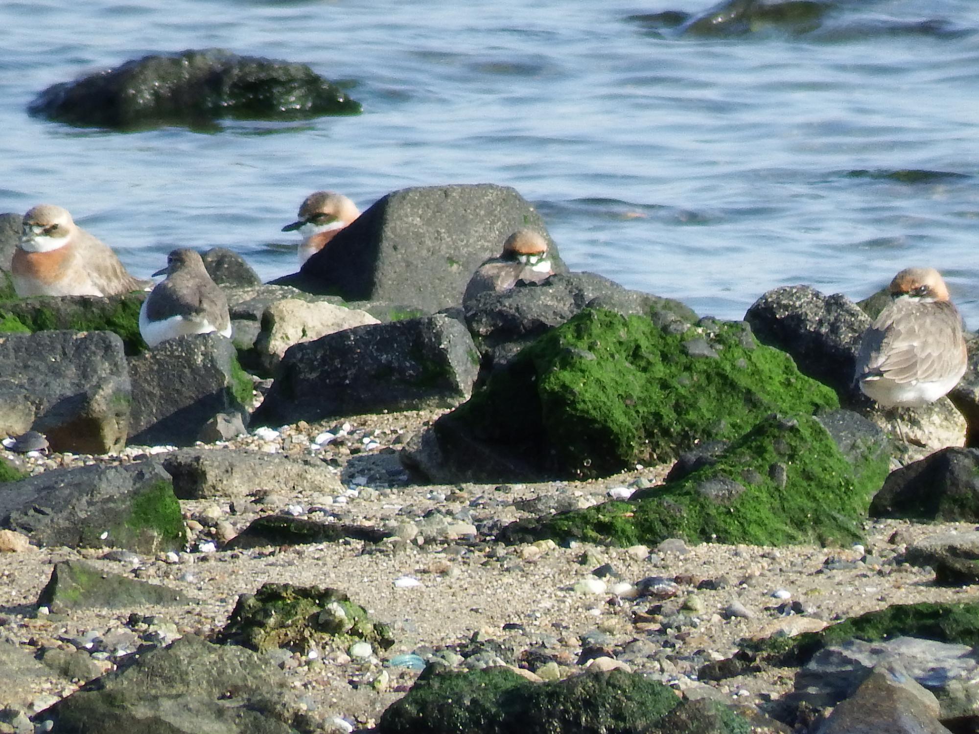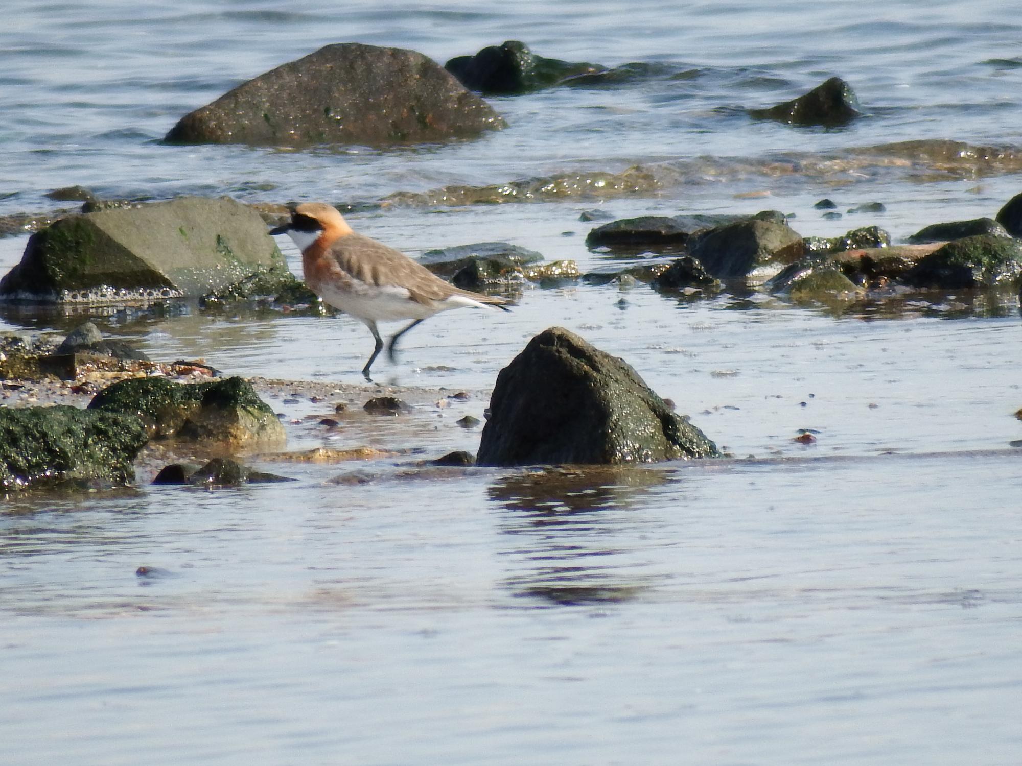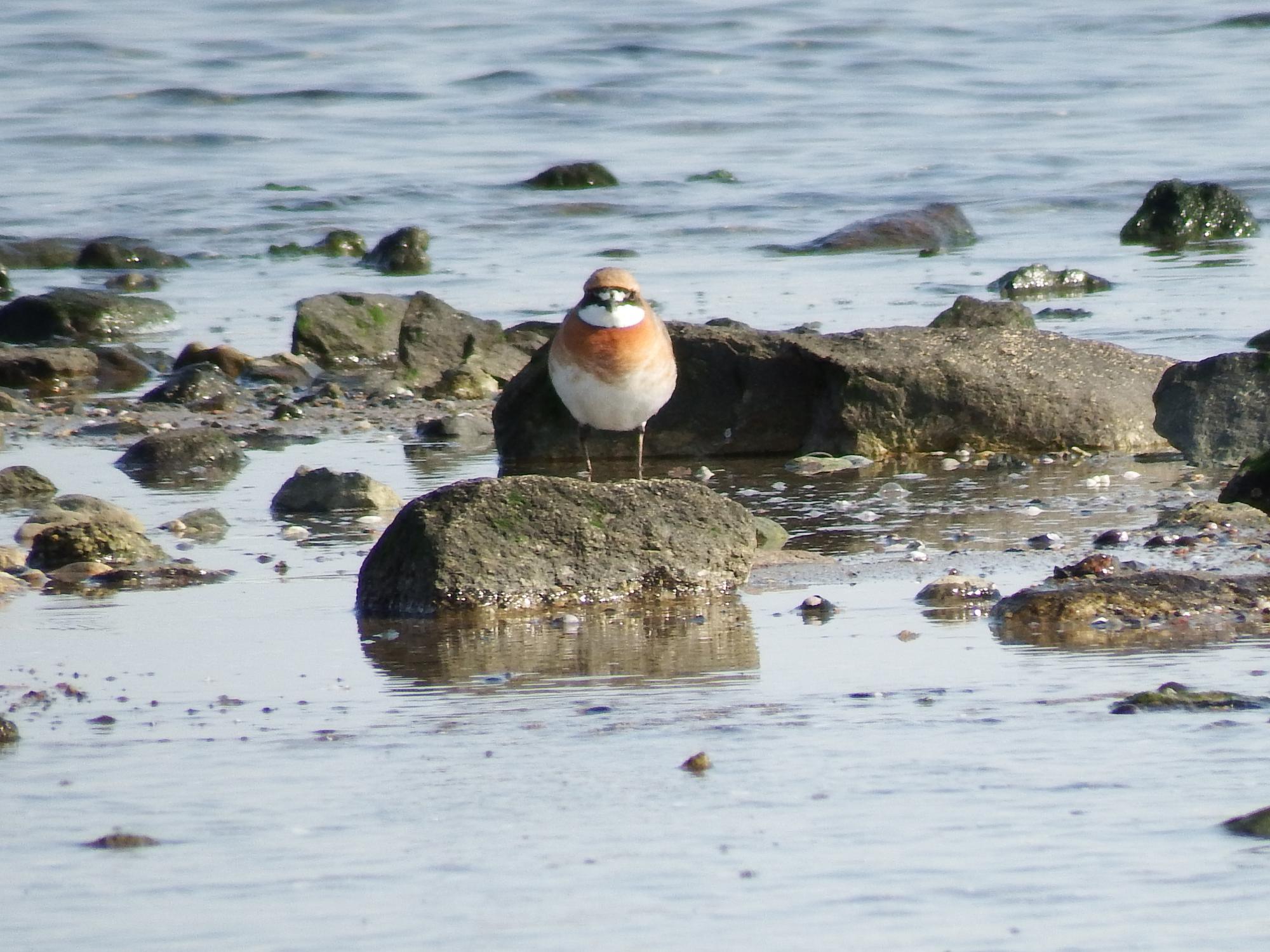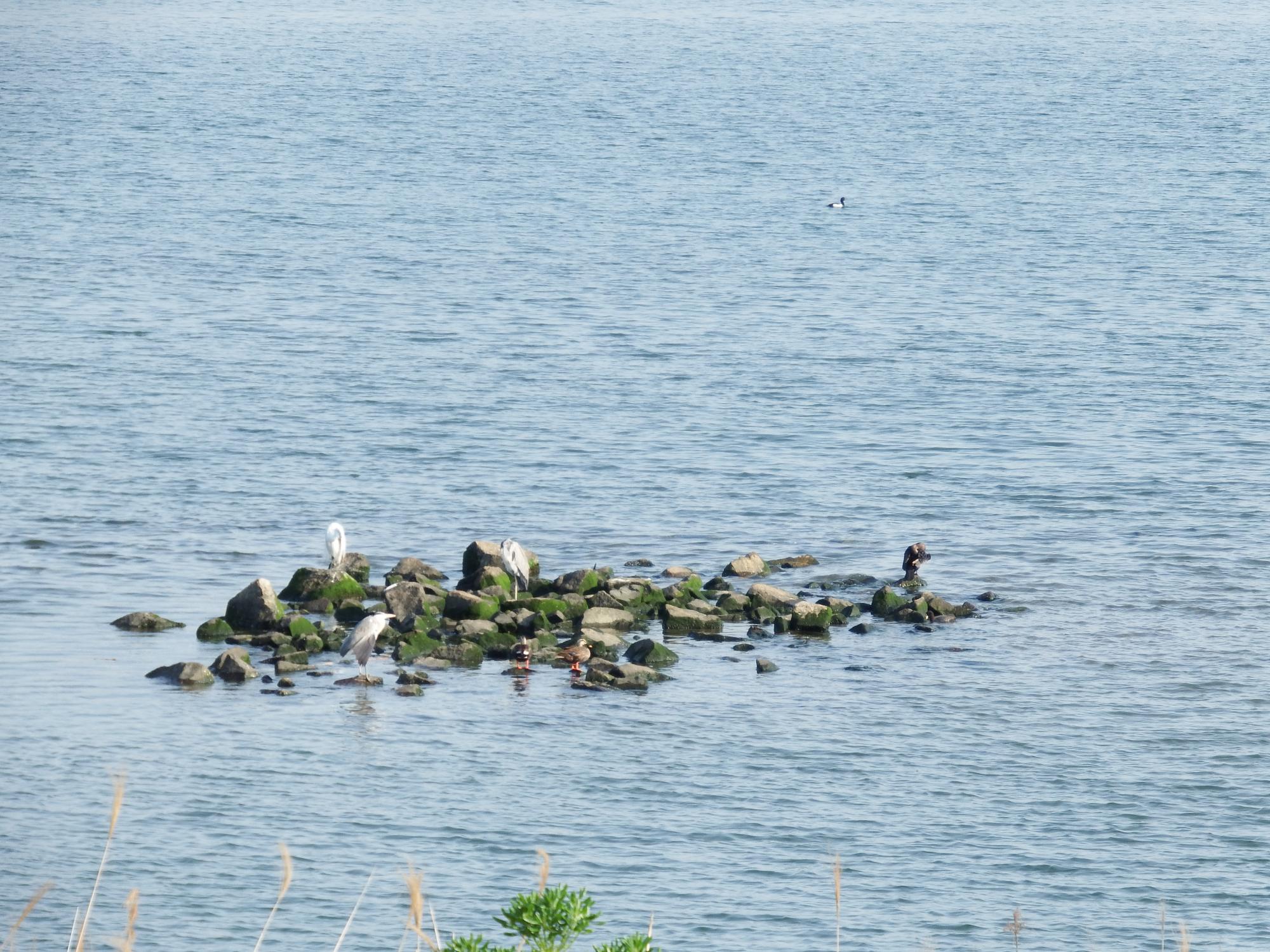 ユリカモメは行ってしまったようです。先週来た時より水位が高く、中洲東側の岩場は水没しています。