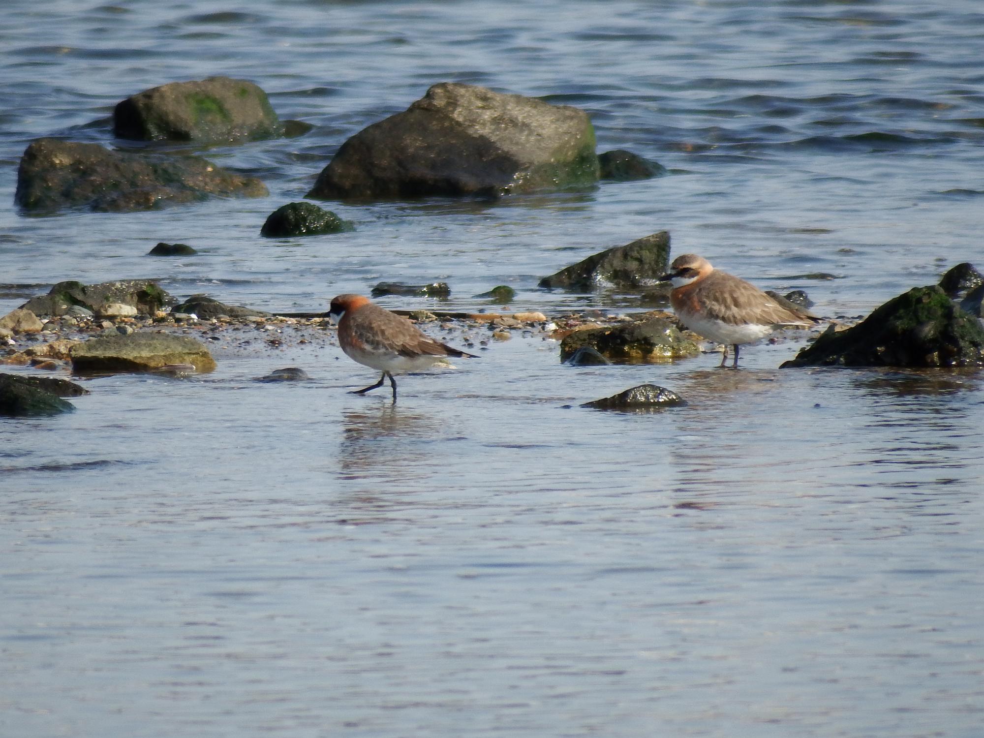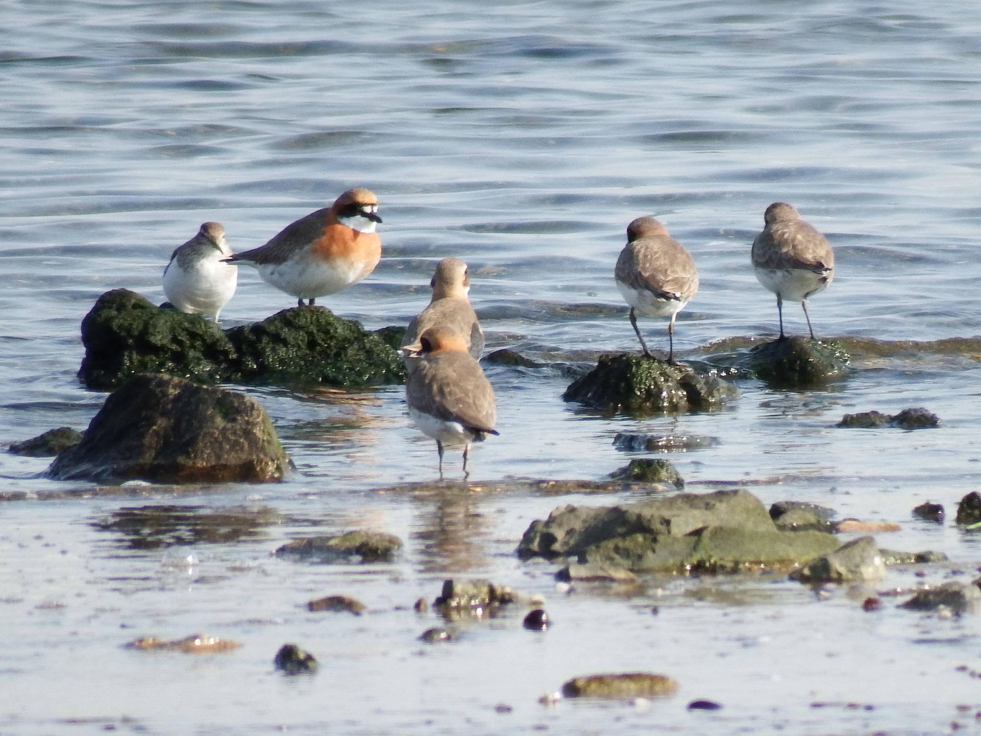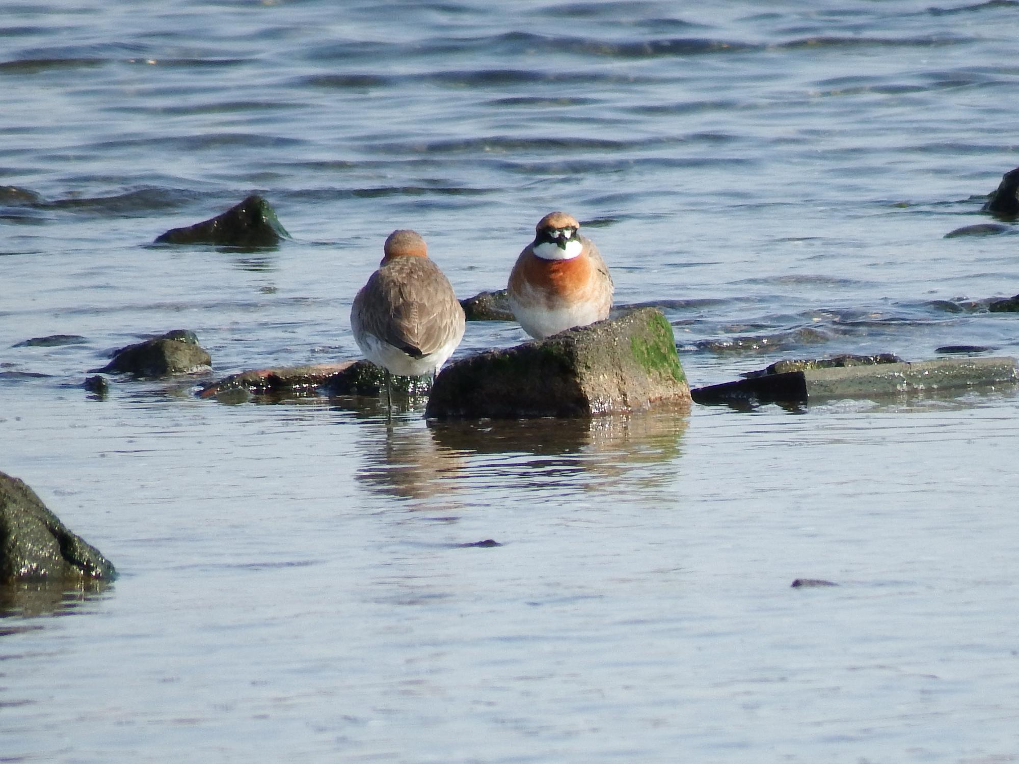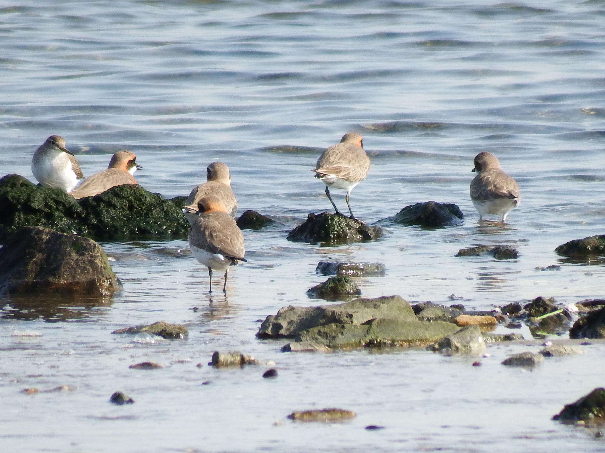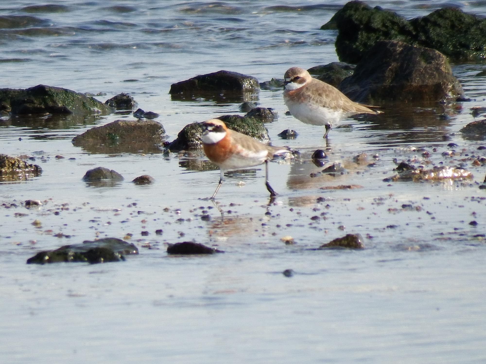 数えた限りではメダイチドリが9羽、イソシギが2羽です。