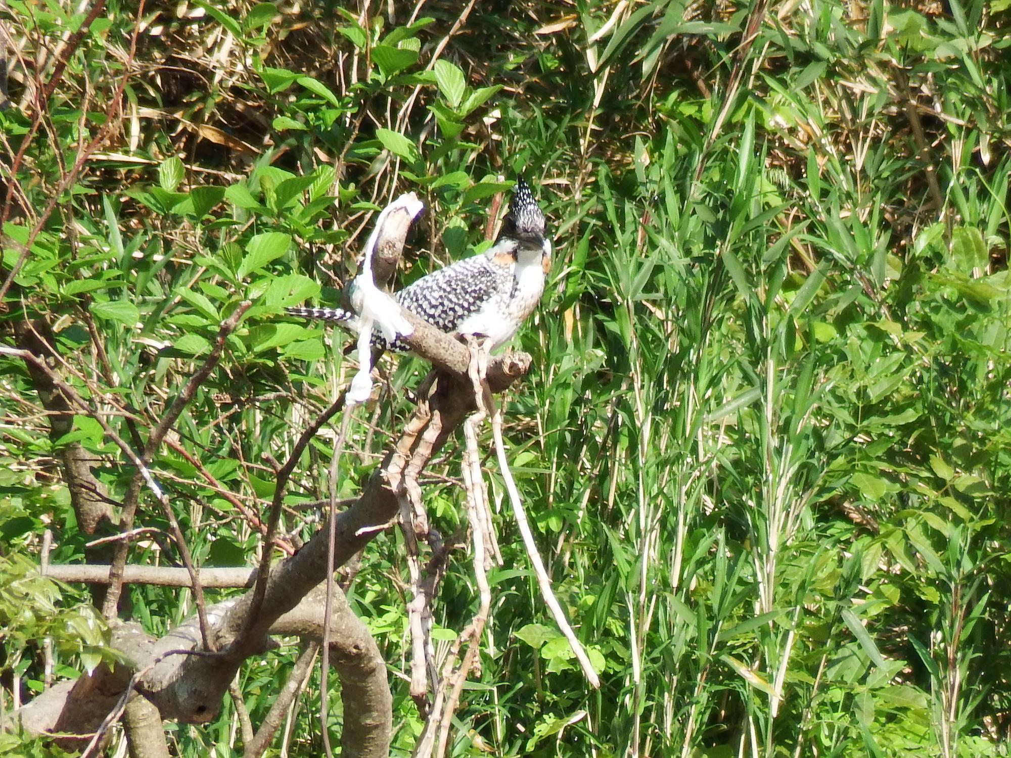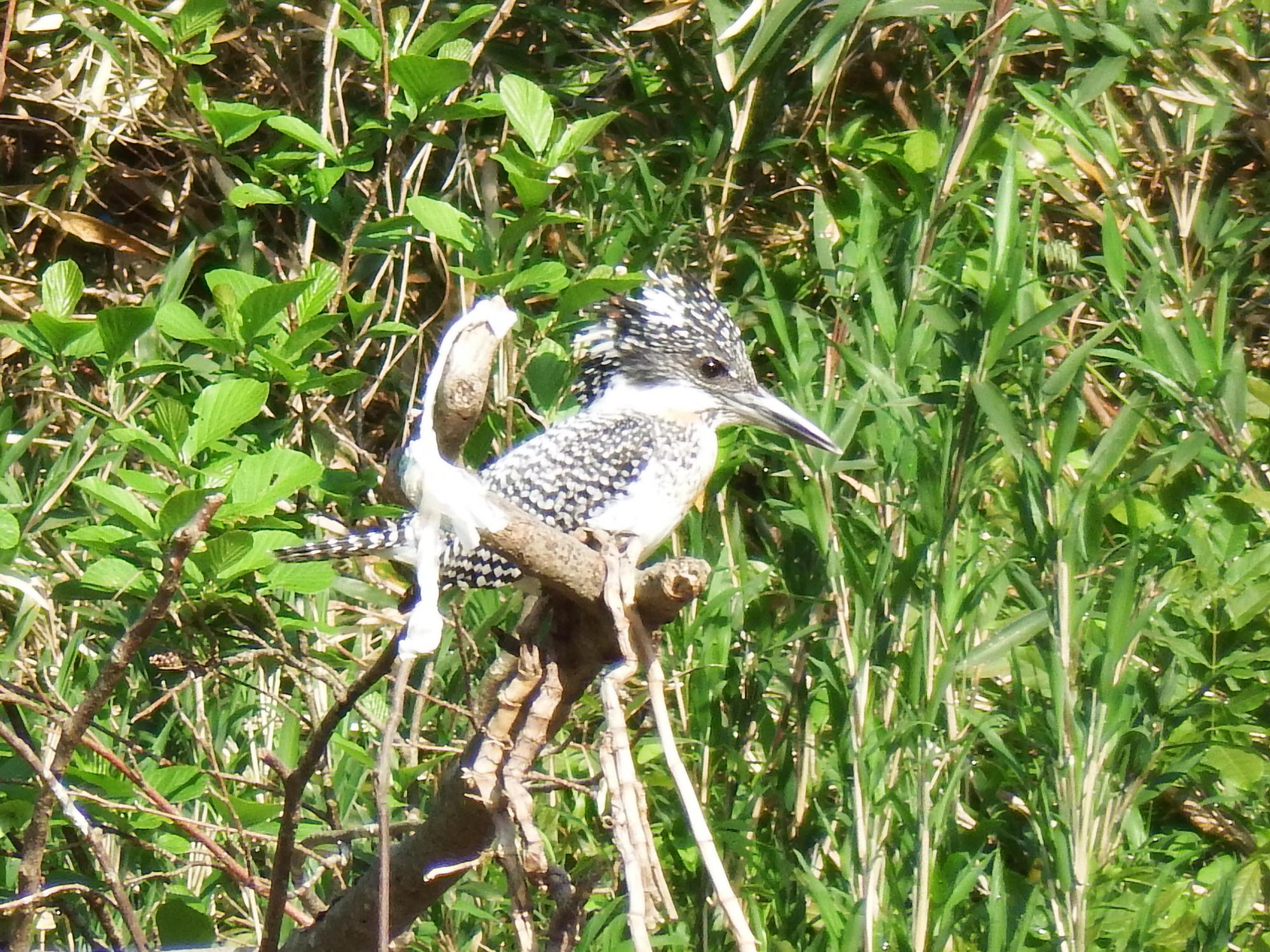 廃線跡のトンネルをふたつ抜けたところの河原でヤマセミ。河原で双眼鏡を覗いていた方が教えてくれました。
