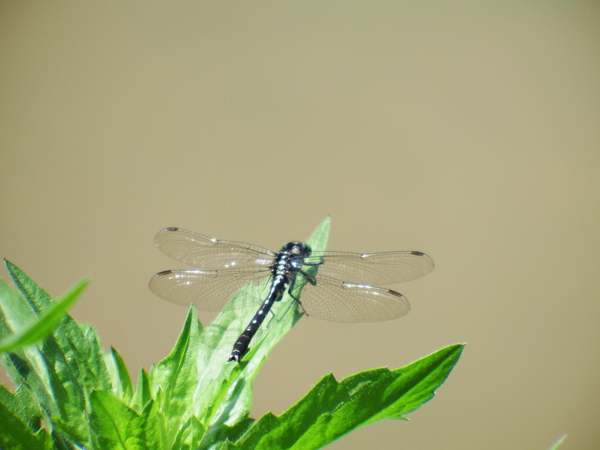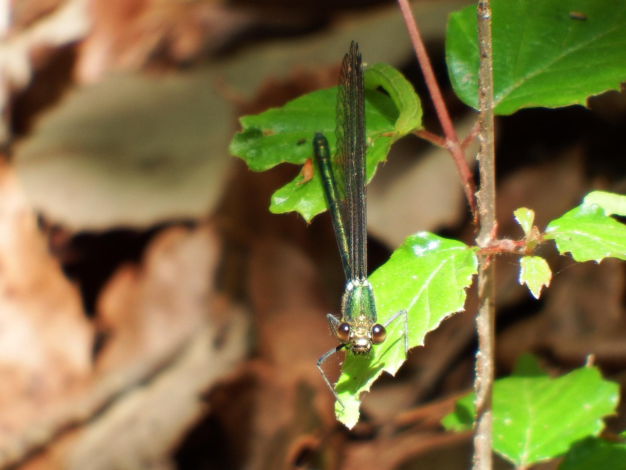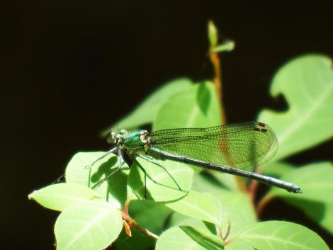 こちらも初見、アオイトトンボあるいはオオアオイトトンボではないかと思うのですが、アオイトトンボやオオアオイトトンボの写真をググってみるとどれもイトトンボにも関わらず翅を広げて止まっていてそれが特徴のようです。とするとこのトンボは違うみたいです。