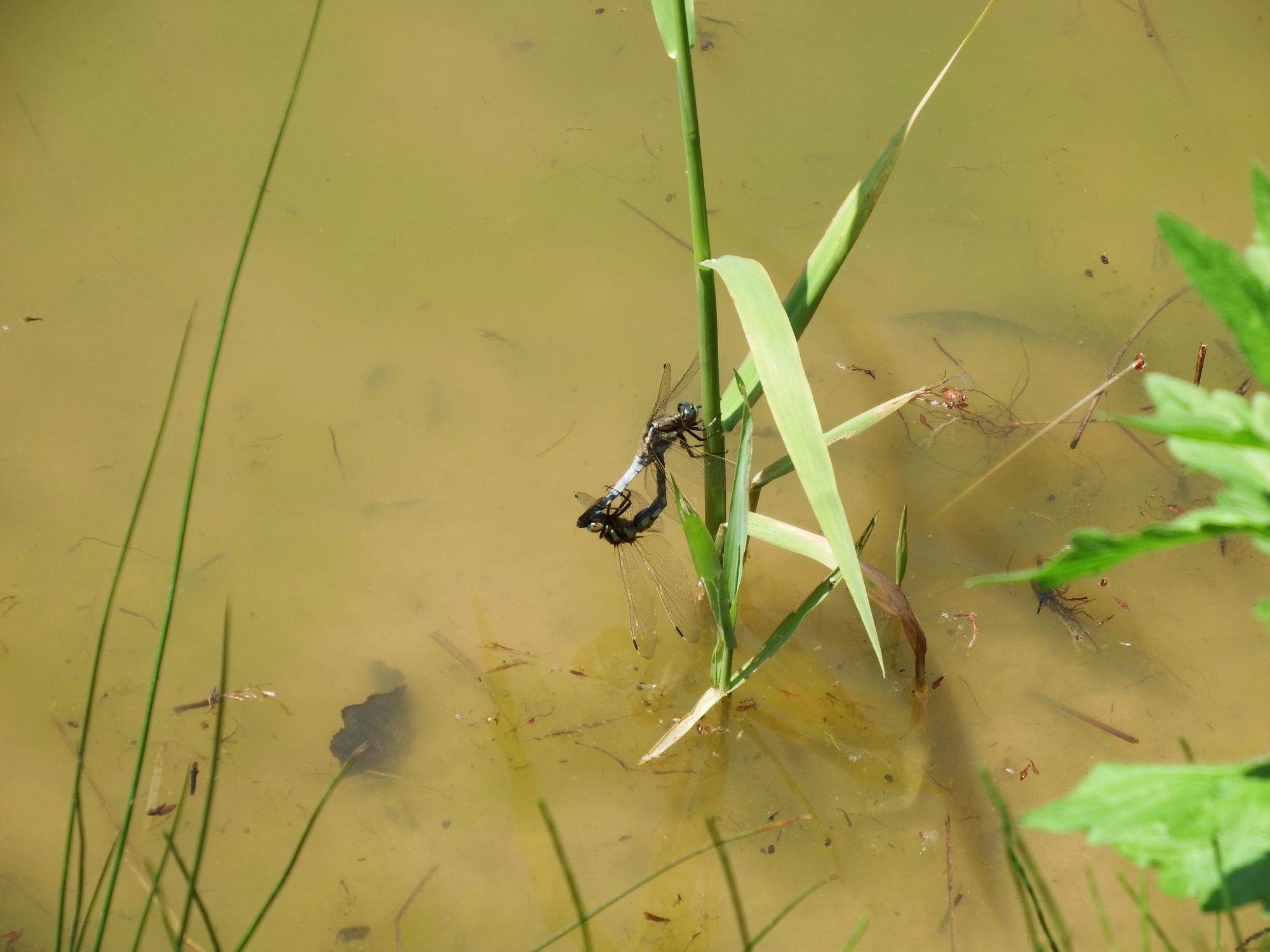 シオカラトンボの交尾、ムギワラトンボがシオカラトンボの♀ということ再確認しました。