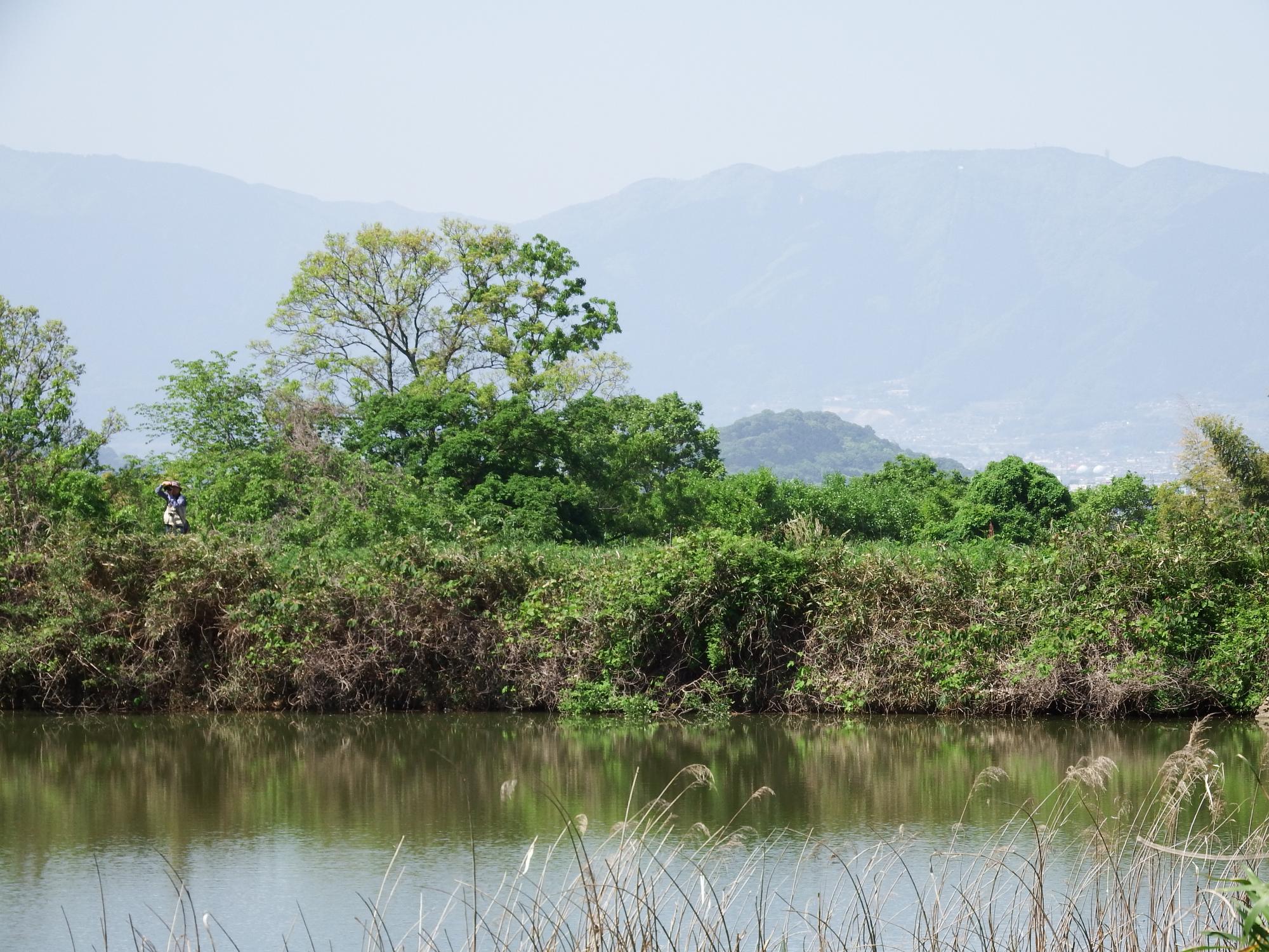 川端康成揮毫による「大和は國のまほろば」の歌碑がある井寺池。