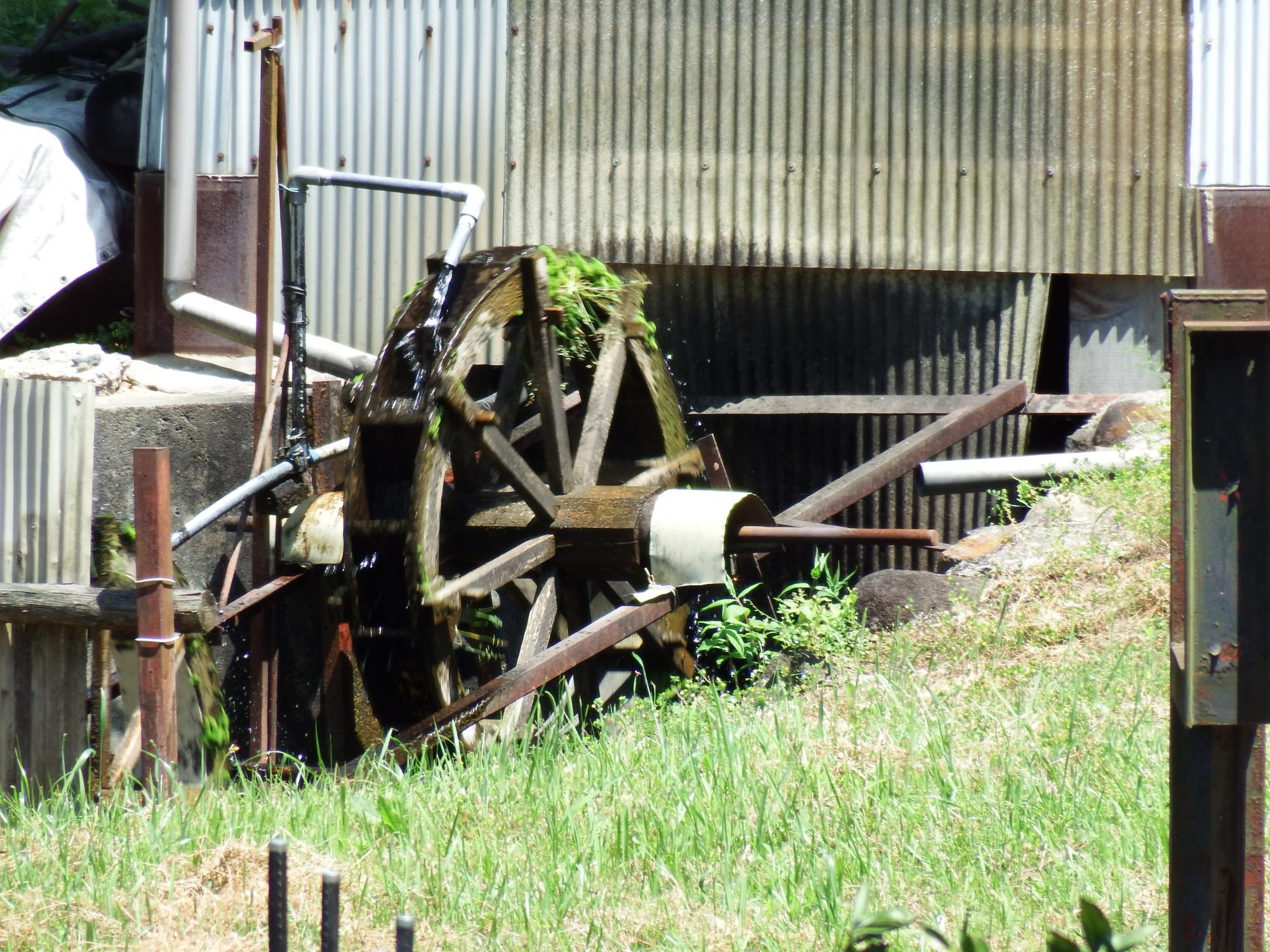 道端にさくらんぼ。現役の水車。