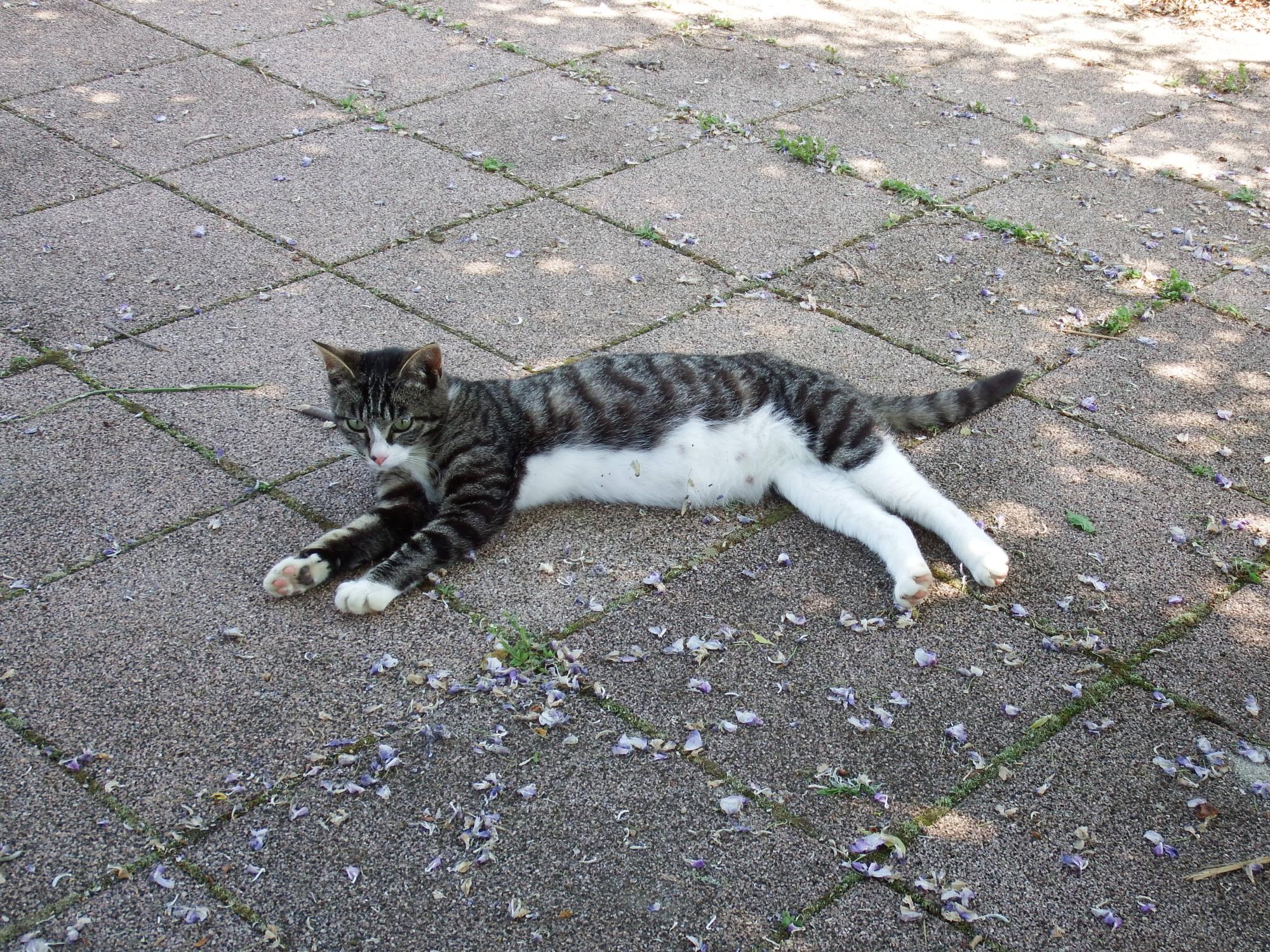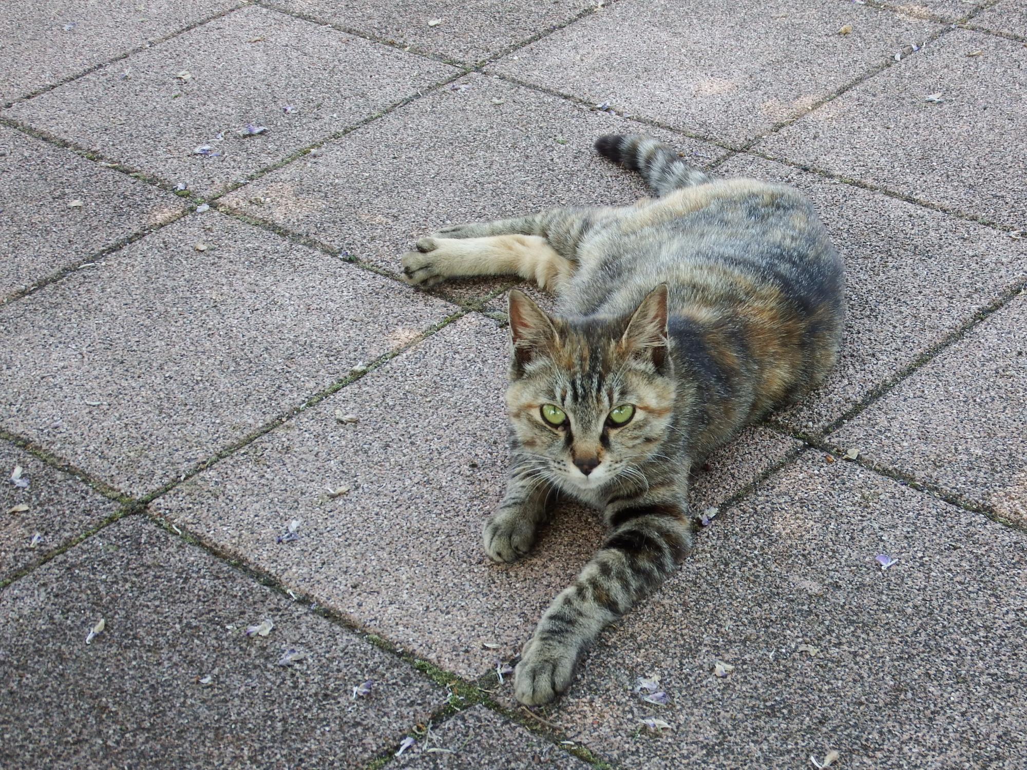 田んぼの中の休憩所のネコ。