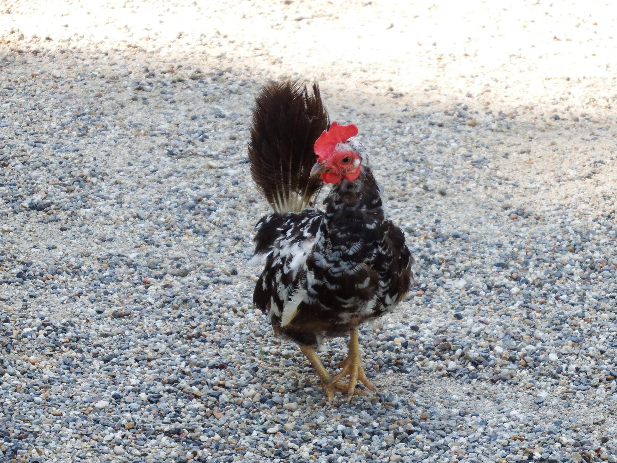 小国鶏と、この前来た時にはいなかったずいぶん可愛い小さなニワトリ。碁石チャボで間違いないかと思うのですが、尾羽がググって出てくる碁石チャボとはちょっと違っています。