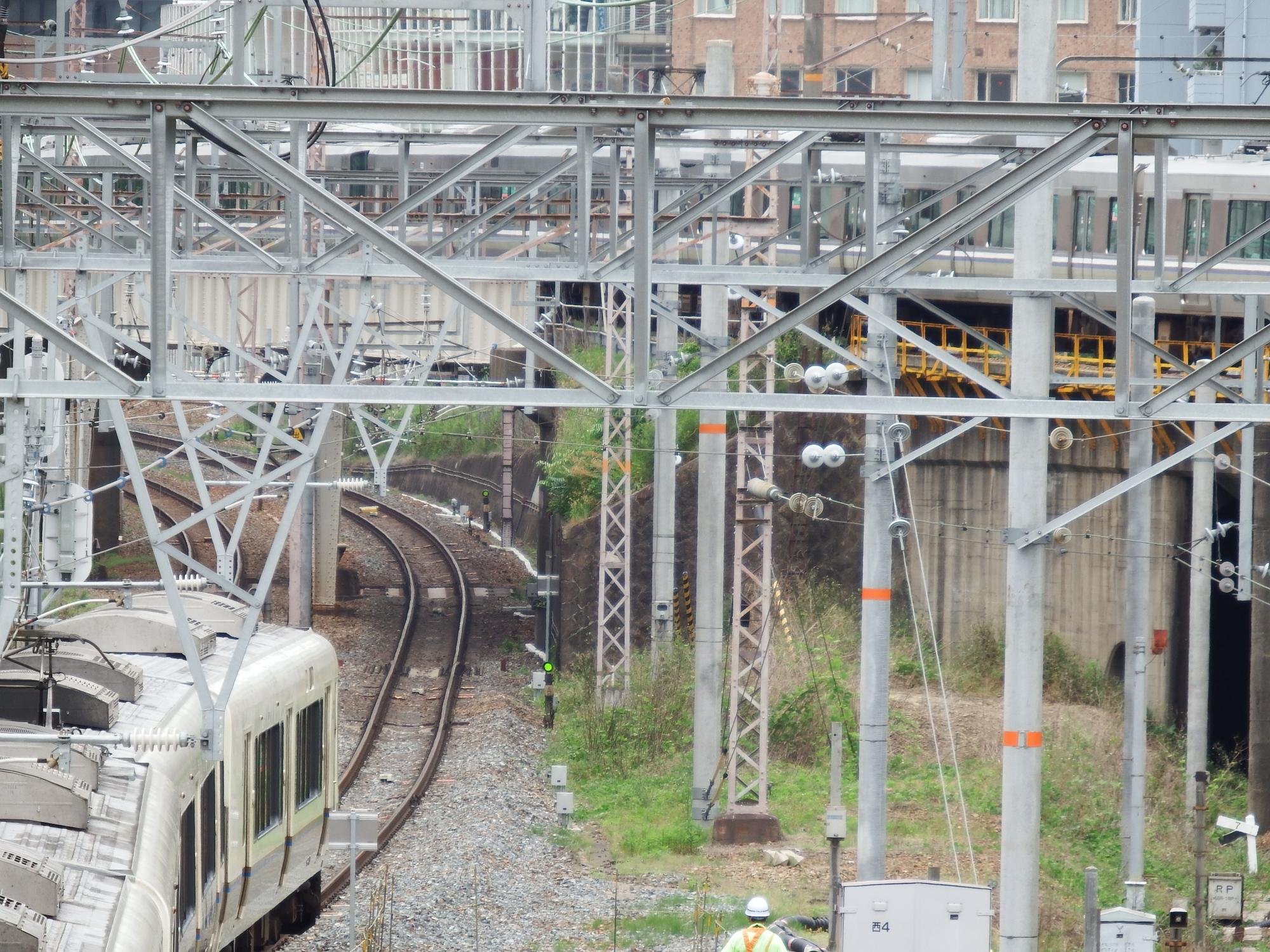 おおさか東線乗り入れ用ホームの工事がたけなわ、プラットフォームの中に土がビッシリ詰まっているとは知りませんでした。