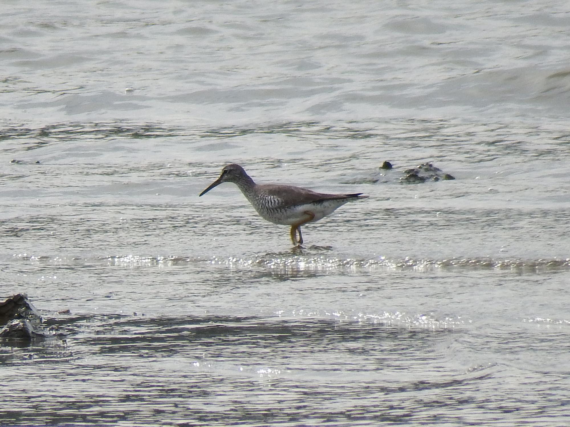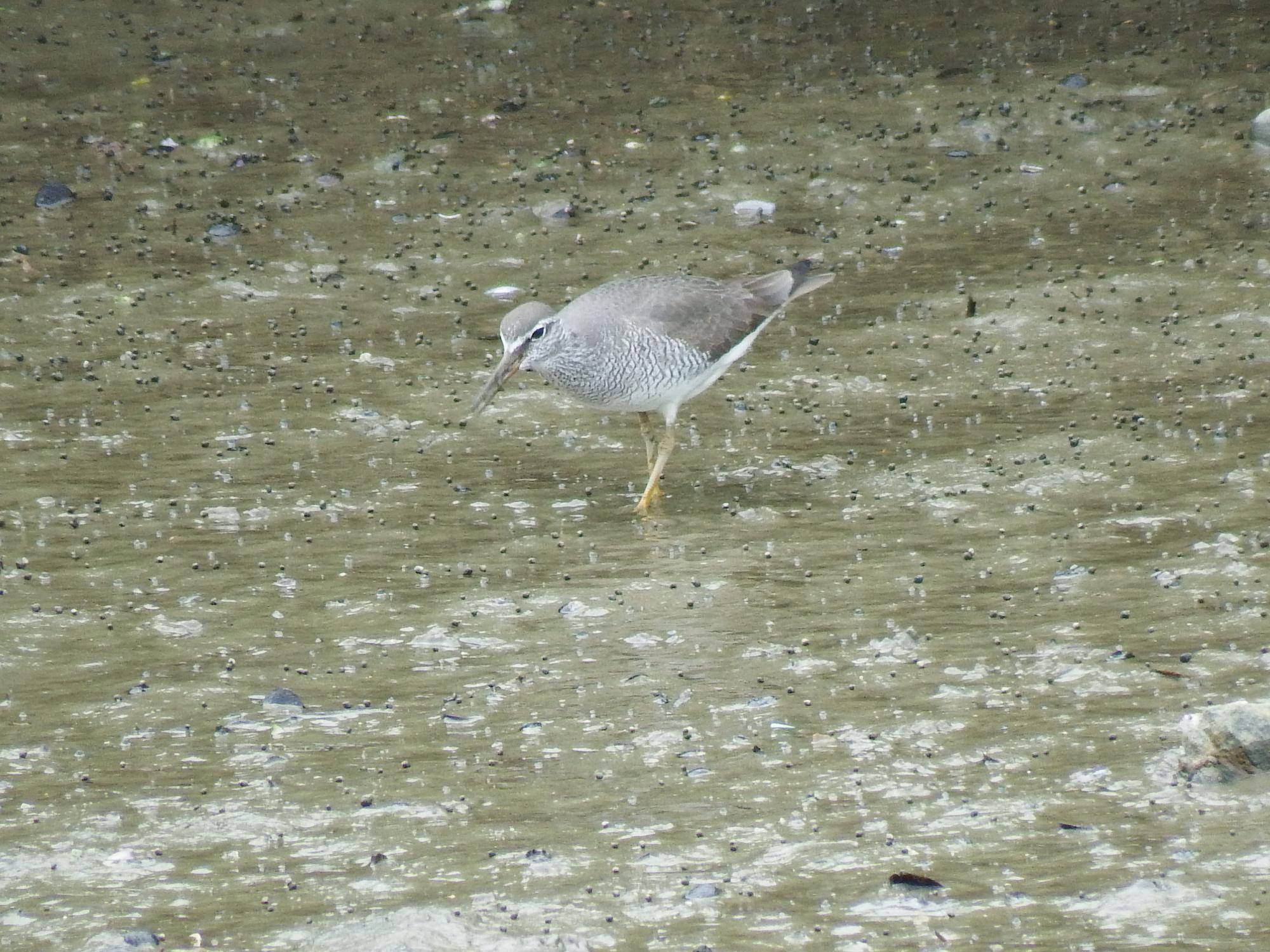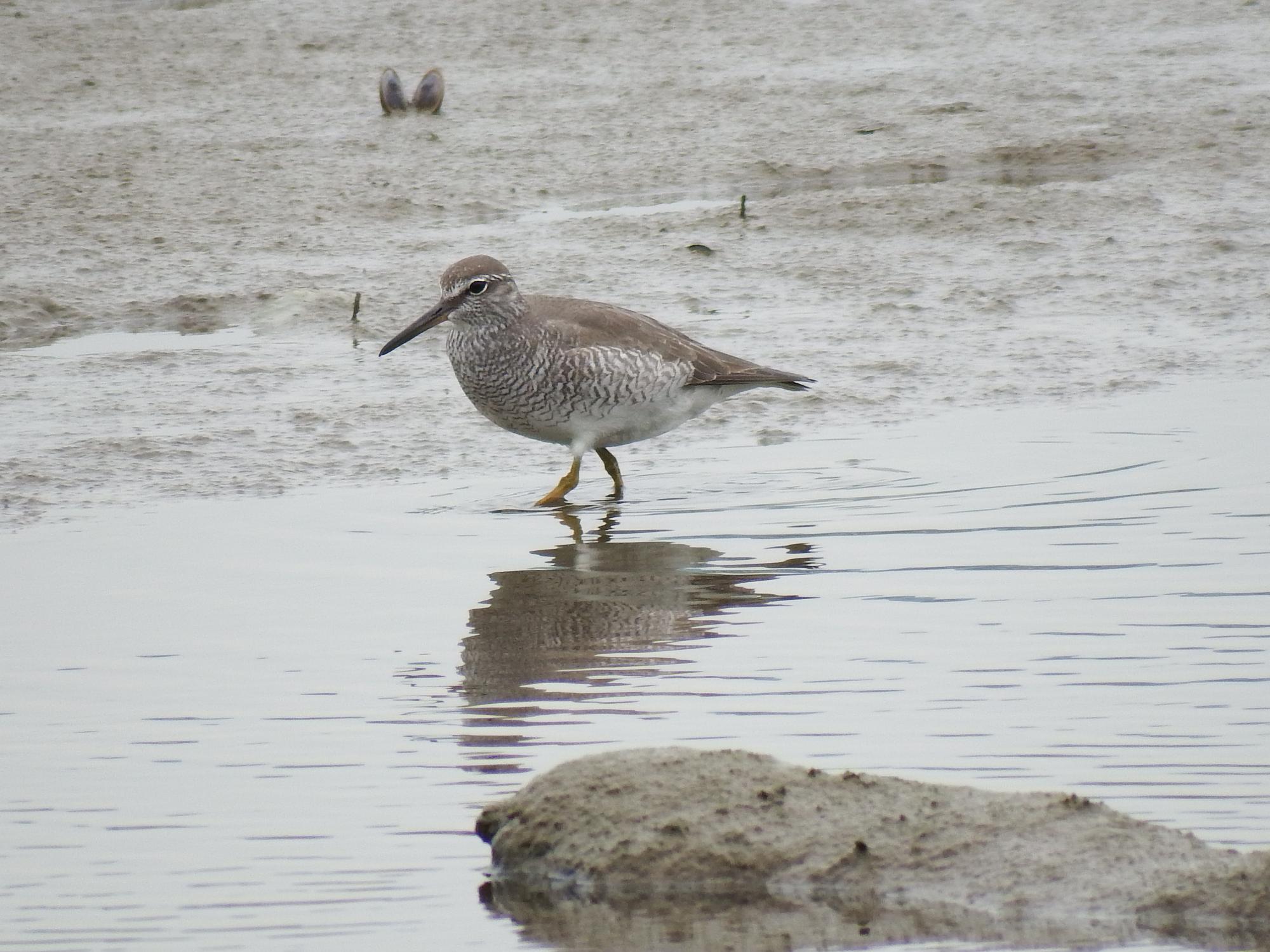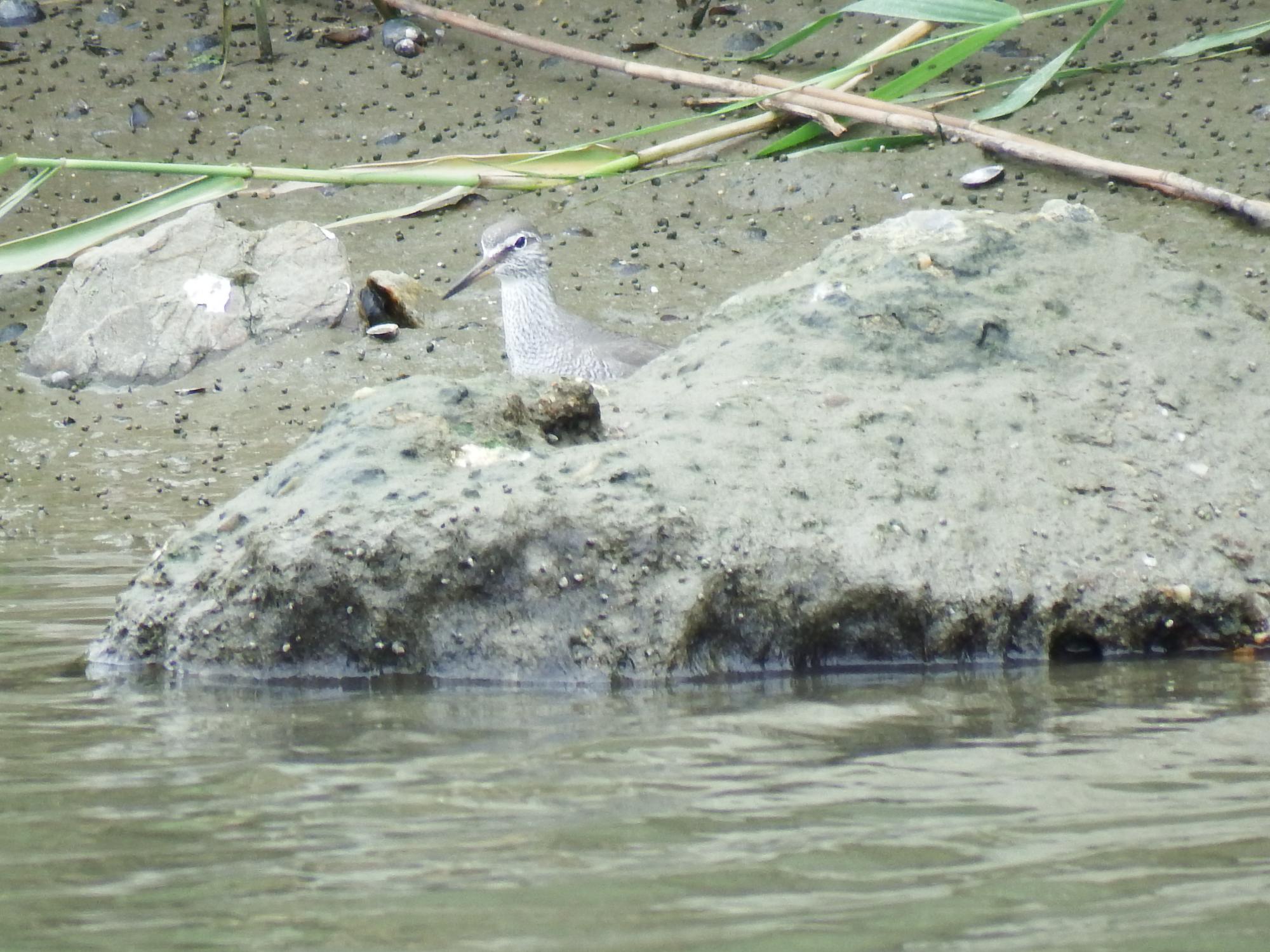 草むらを掻き分け柴島干潟、最近すっかりお馴染みになったキアシシギ。