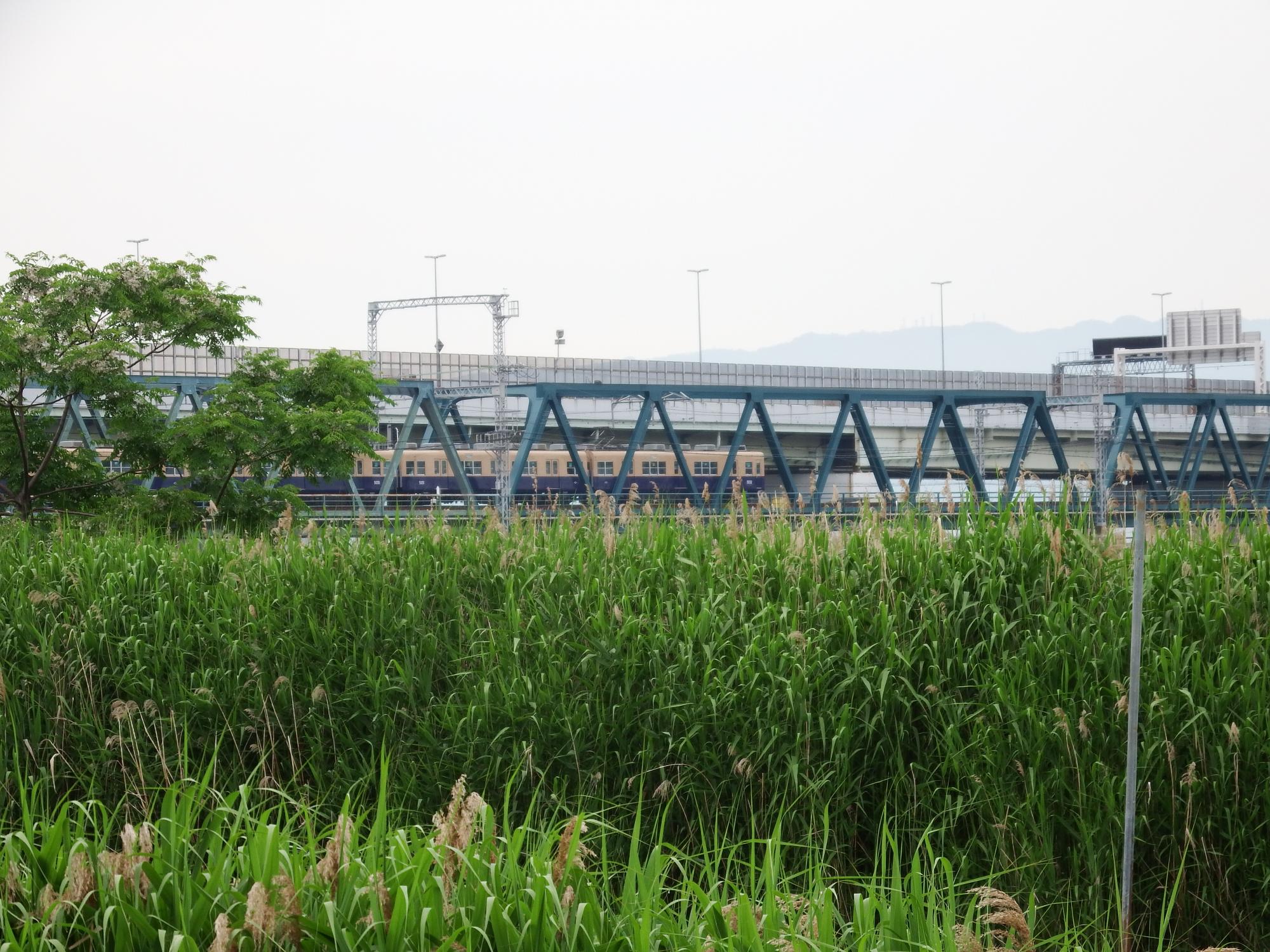 十三付近を飛行中のコアジサシと京都線特急。いずれ一枚に収めてみたいです。