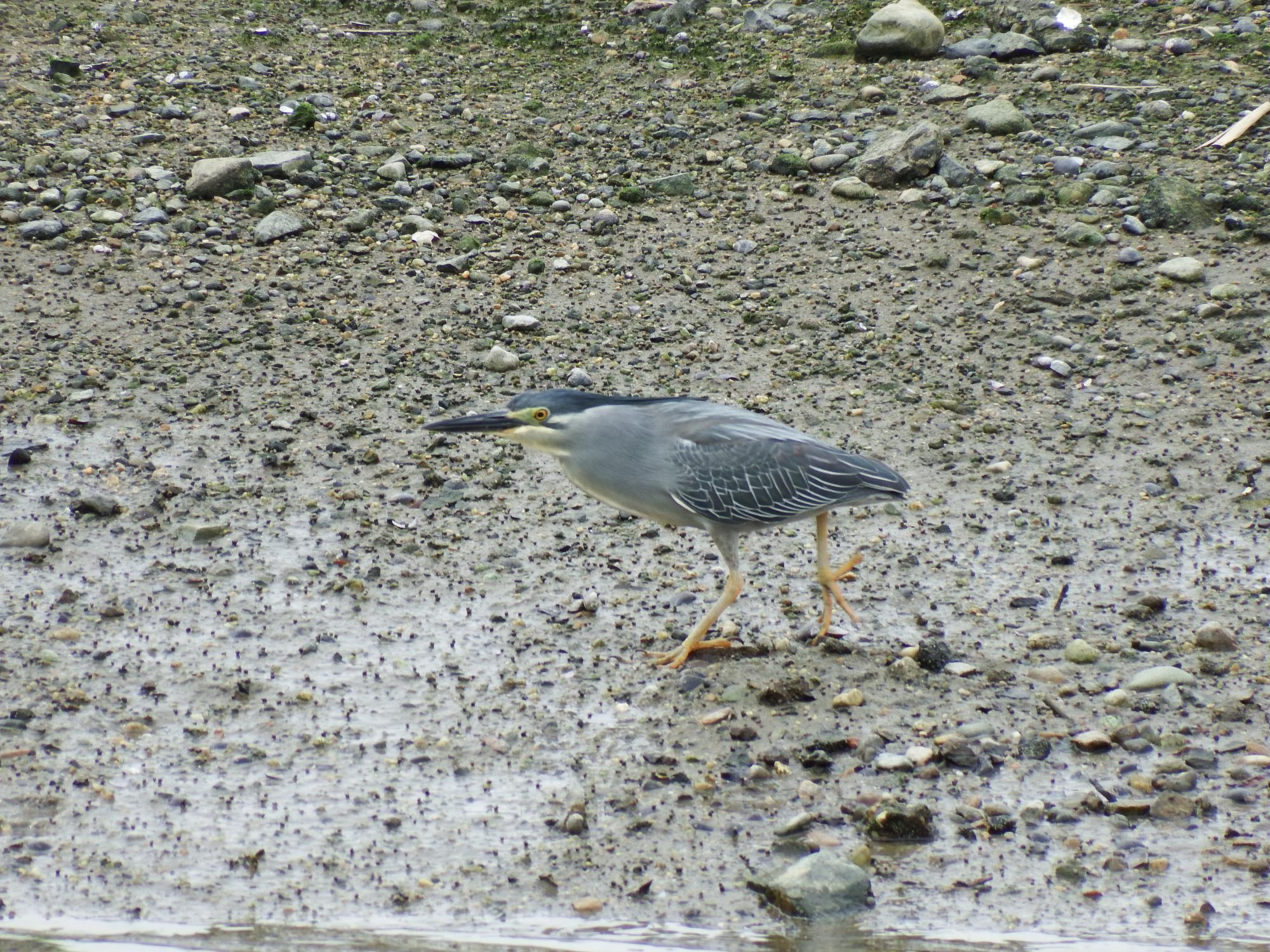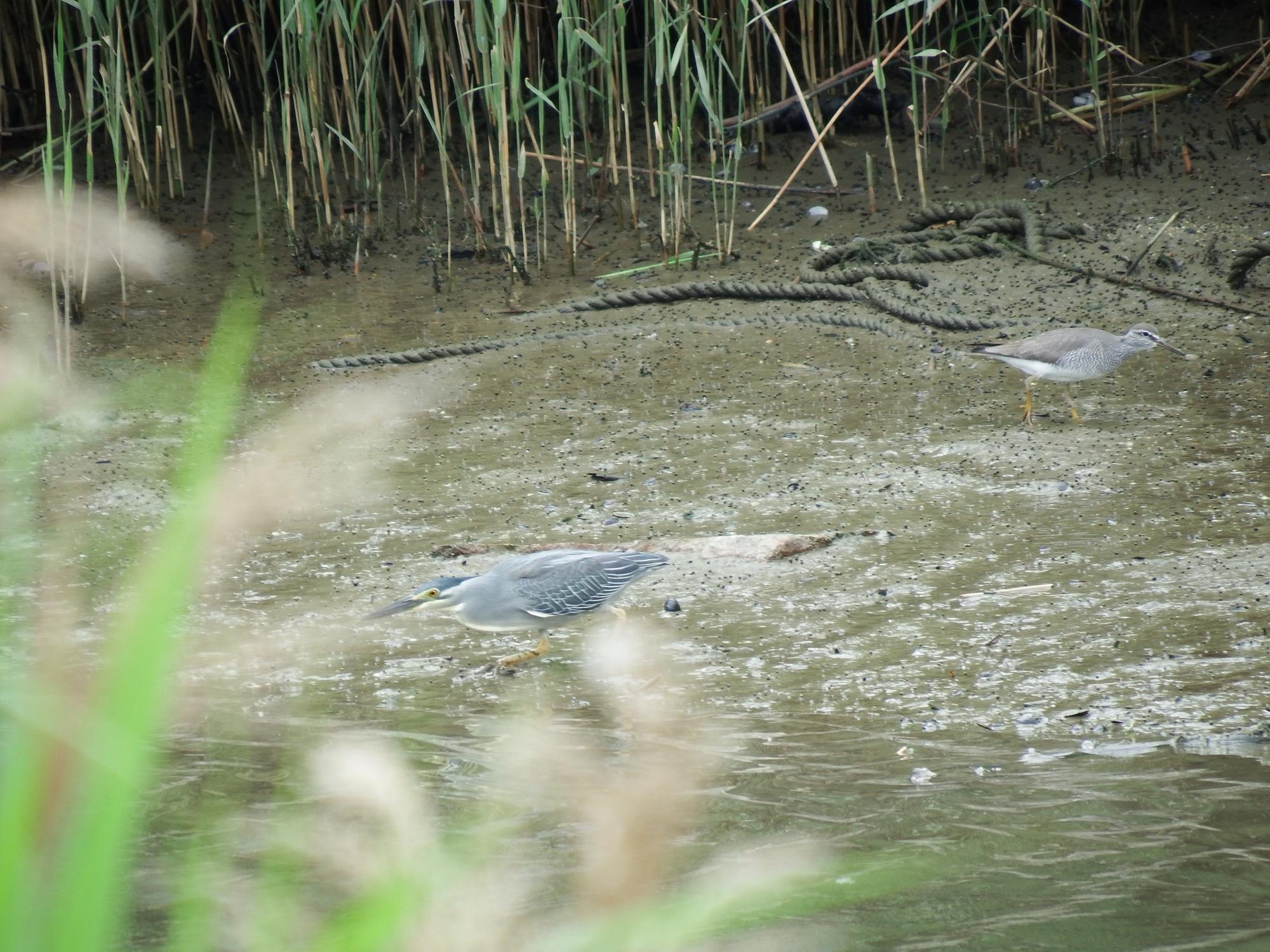 ササゴイがまだ行ったり来たりしています。ササゴイとキアシシギのサイズ比較を載っけておきます。